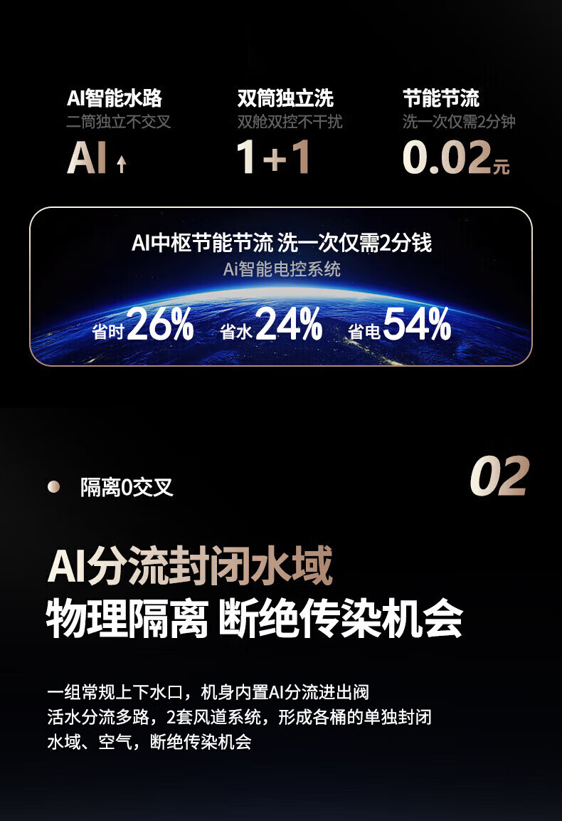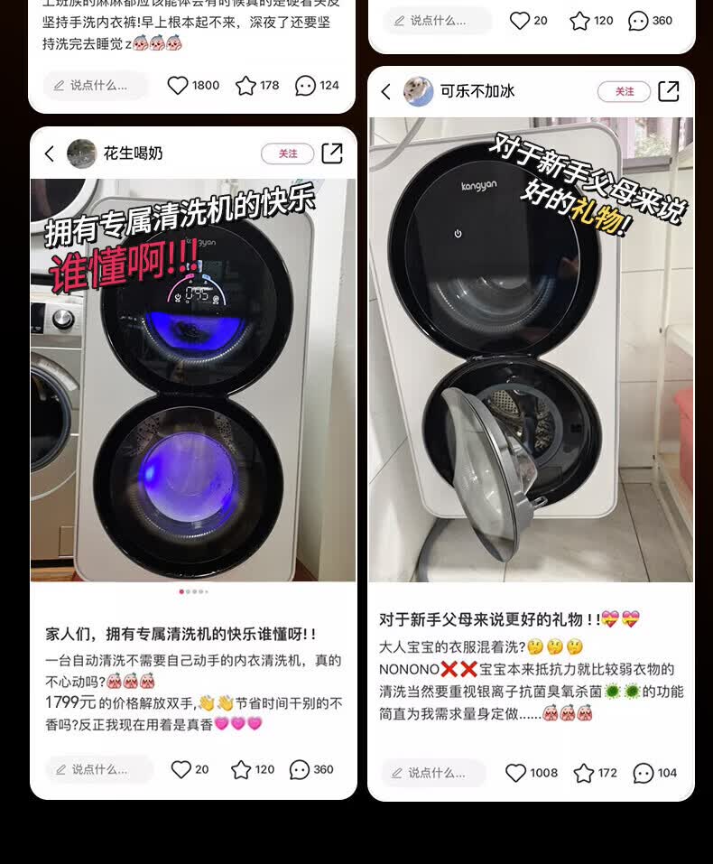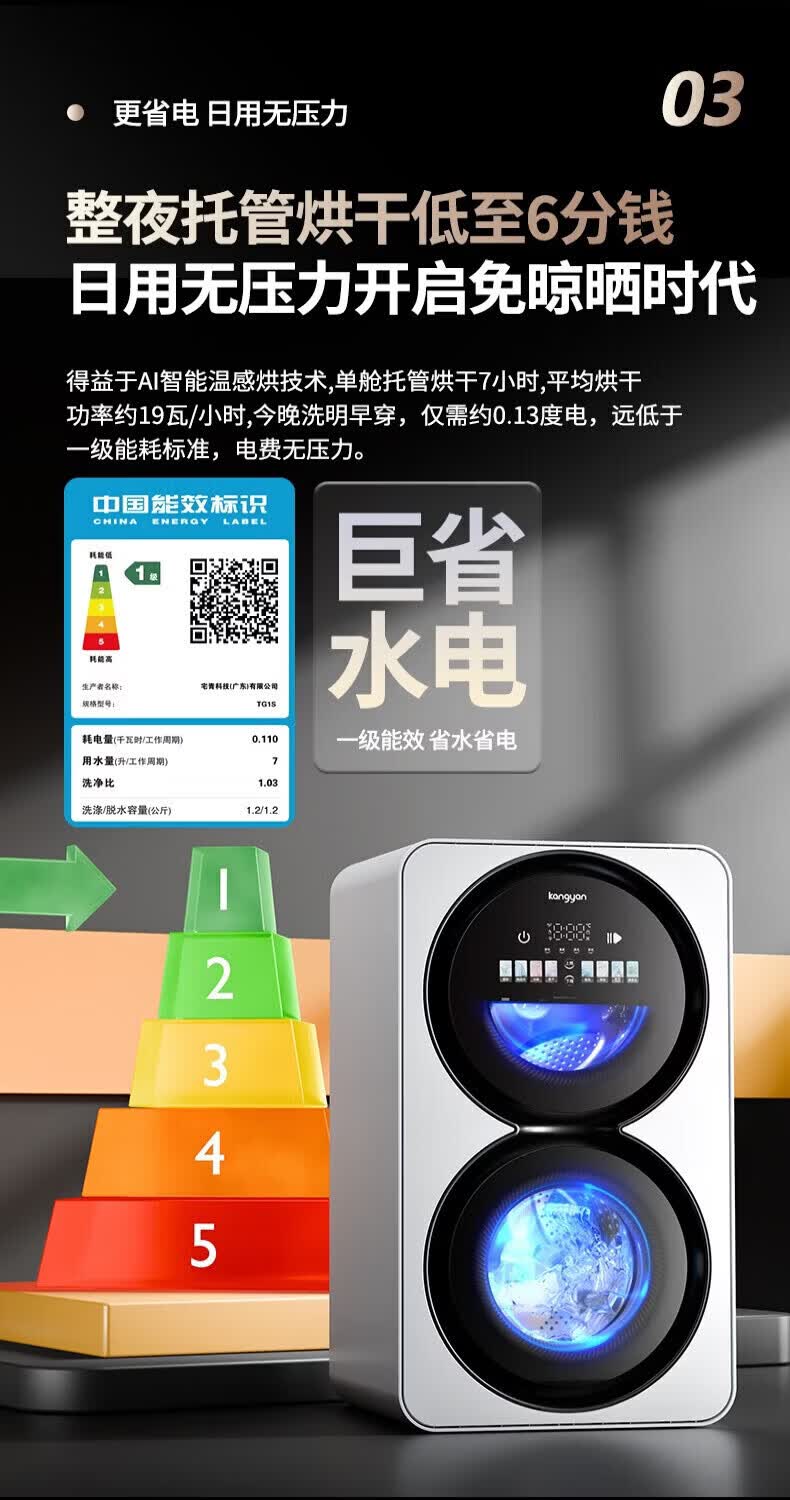 KANGYAN双桶分区洗护洗衣机 无刷电机静音 除菌除螨 99.99% 全自动小型洗脱一体机 【桌面款】洗烘一体机IAI自动投液I新风系统 一级能效IAI智能洗烘