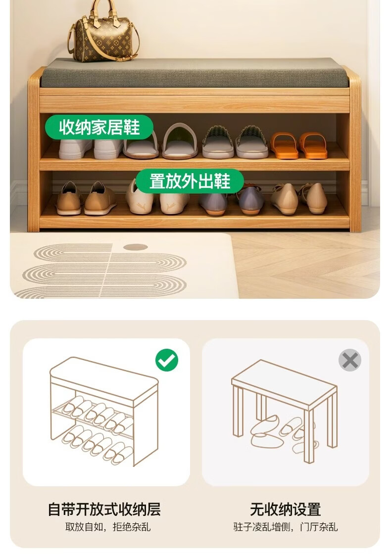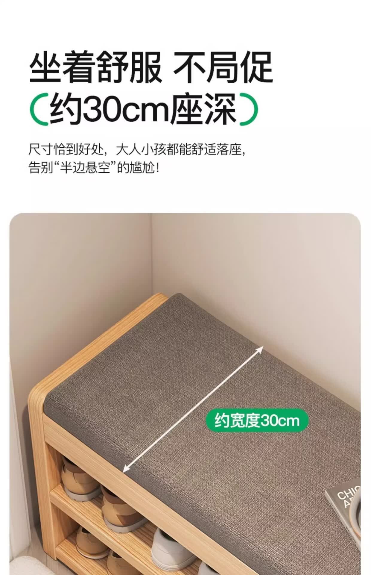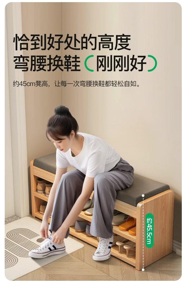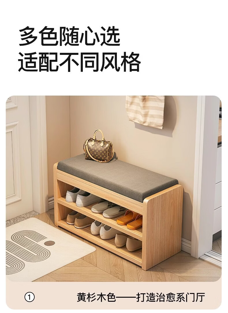 暖堂 WARM HALL入户换鞋凳进门口家用鞋架可坐一体实木长条穿鞋极窄 黄杉木色80x24x45.5cm双层款 实木生态板(自己组装)