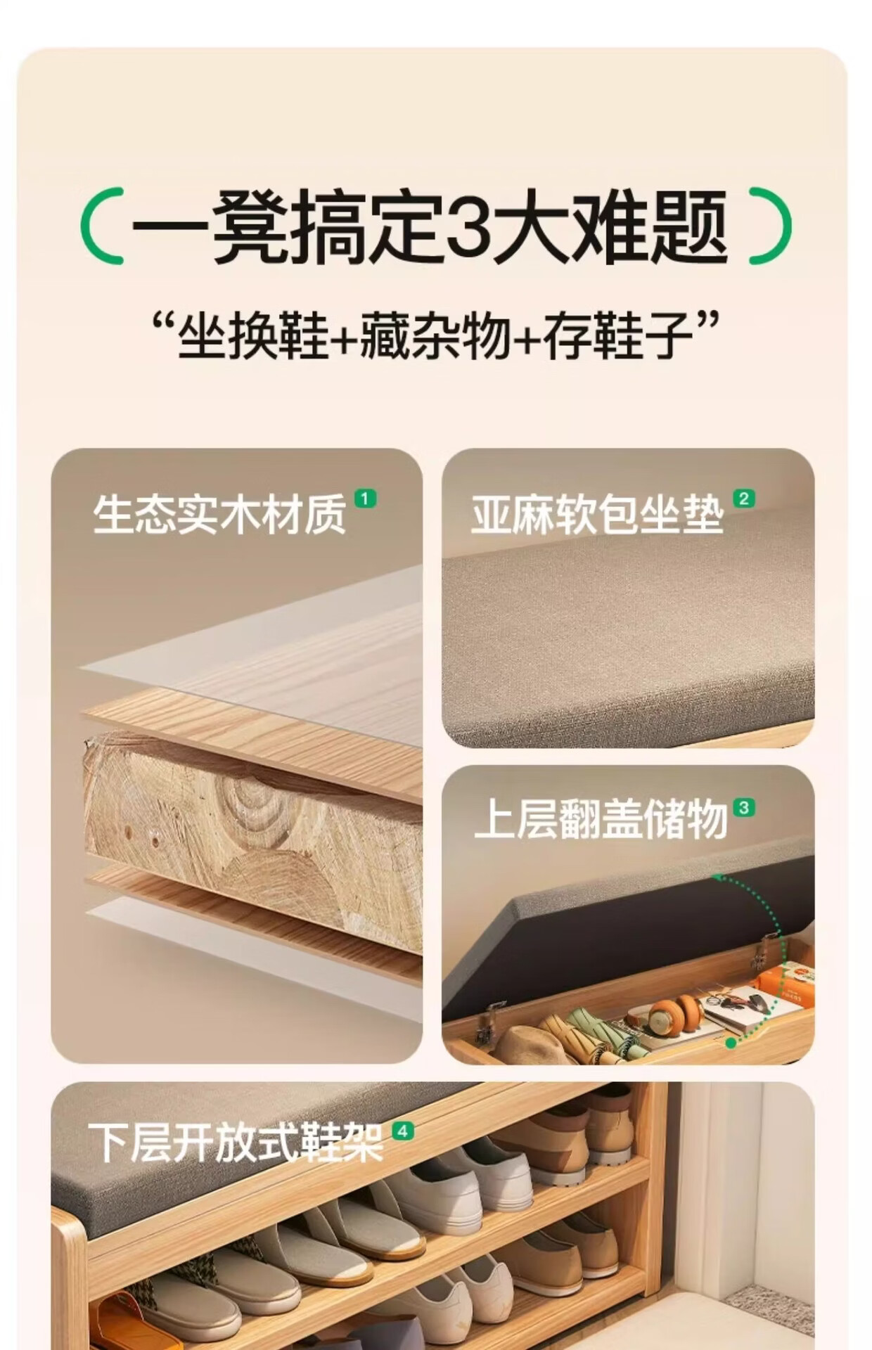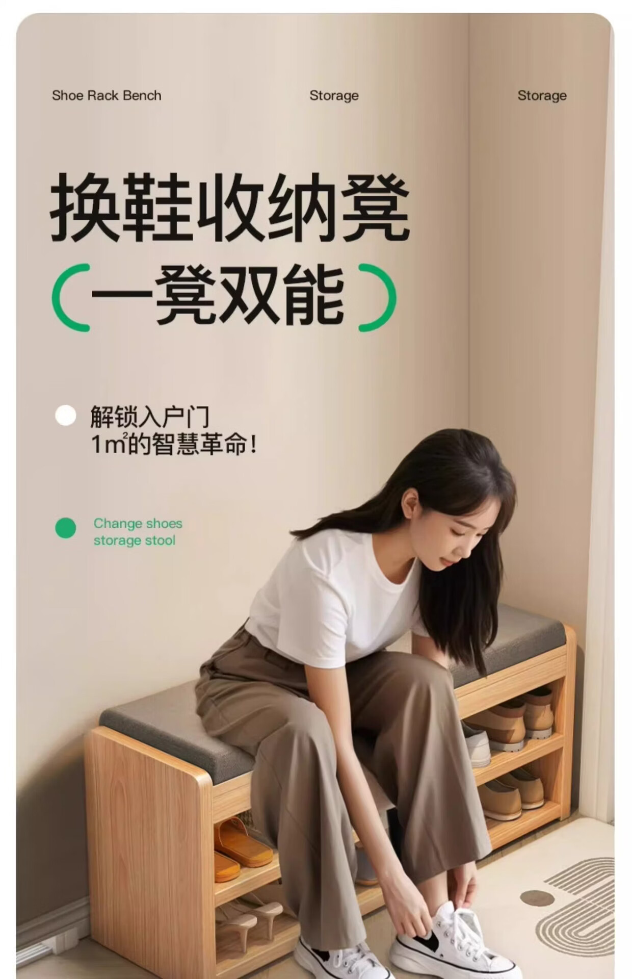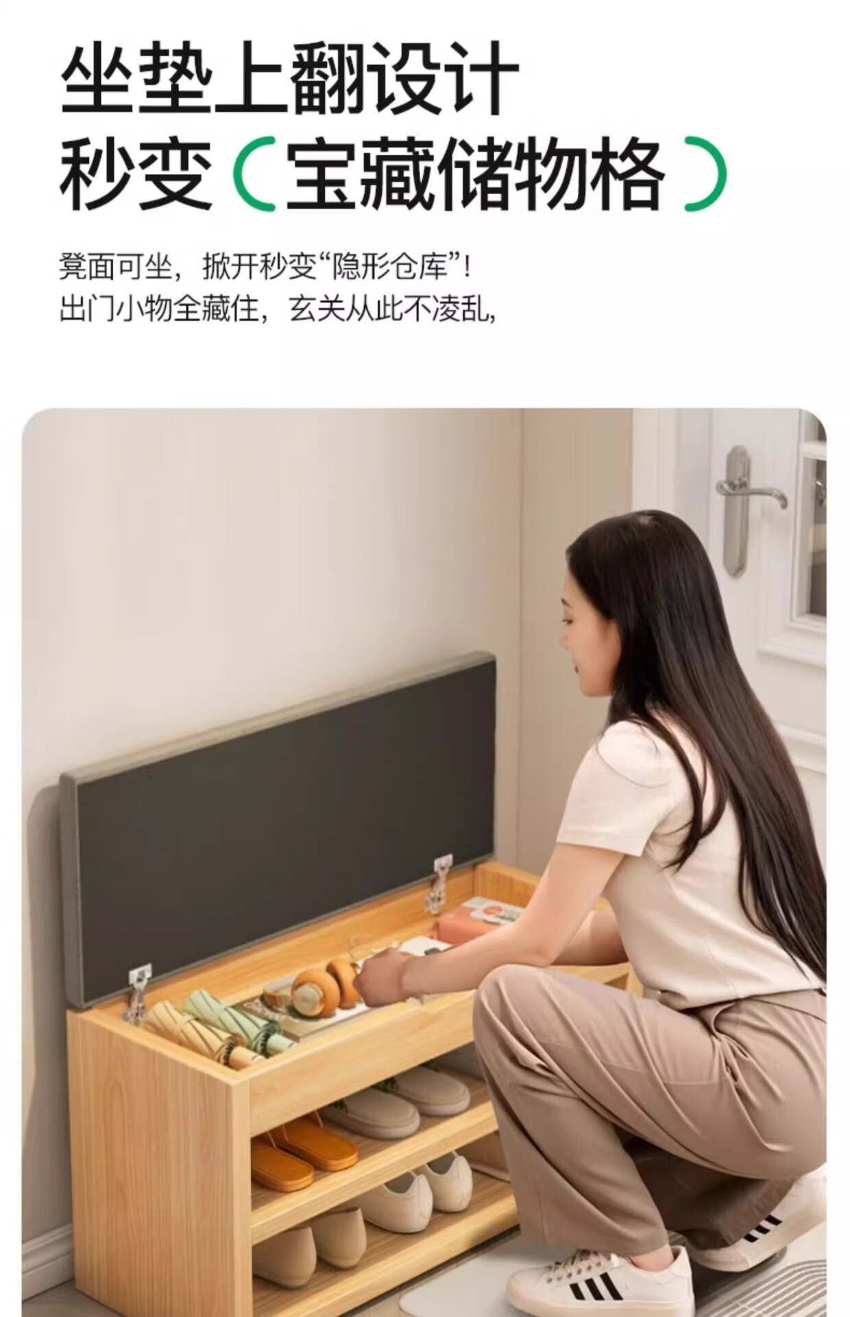 暖堂 WARM HALL入户换鞋凳进门口家用鞋架可坐一体实木长条穿鞋极窄 黄杉木色80x24x45.5cm双层款 实木生态板(自己组装)