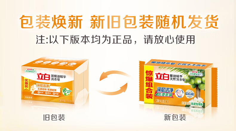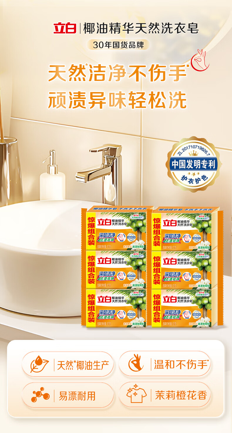 立白椰油精华洗衣皂肥皂透明皂去渍亮丽不伤手家用实惠装 椰油皂205g*4块