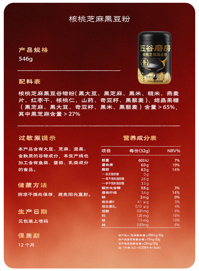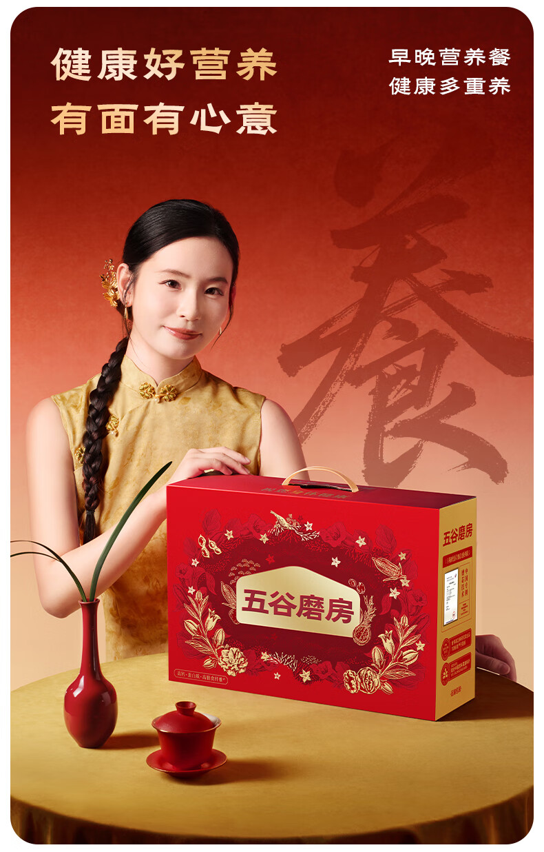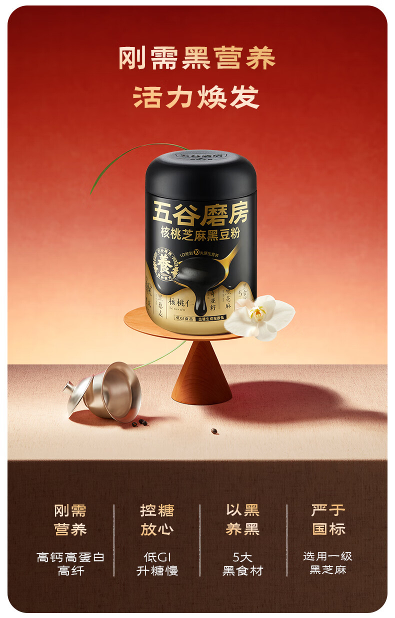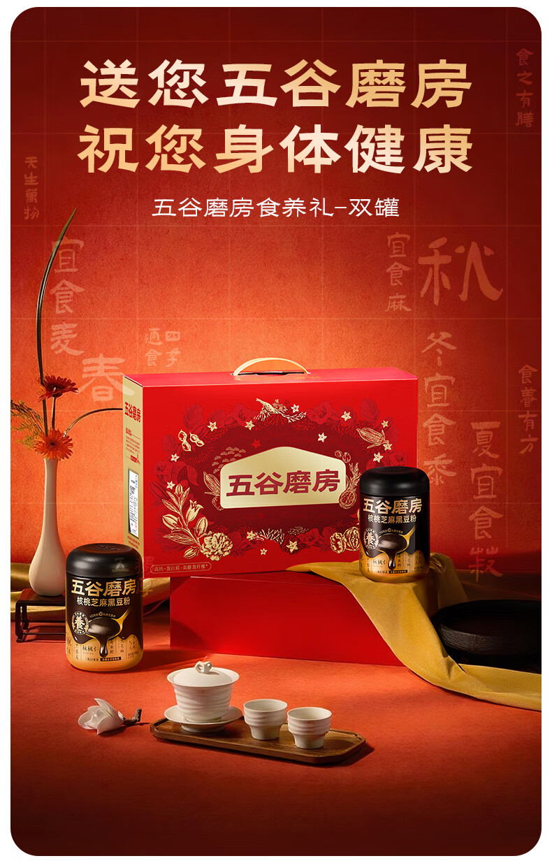 五谷磨房食养礼低GI黑芝麻糊核桃芝麻粉送长辈礼品年货礼盒1092g经典版