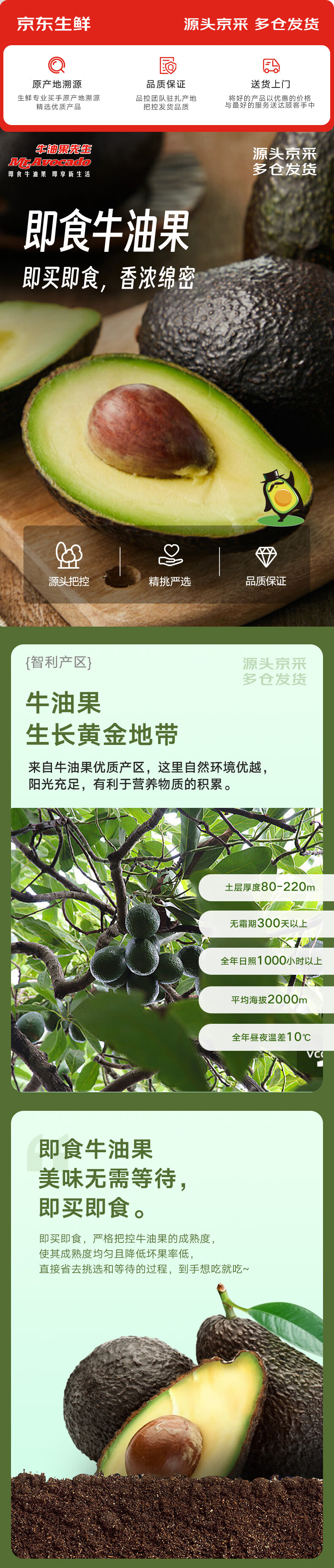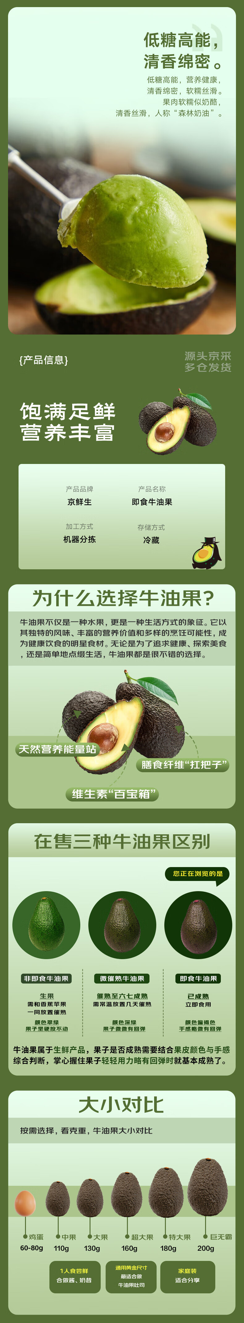 京鲜生进口即食牛油果 巨无霸6粒装 单果200g起 源头直发一件包邮