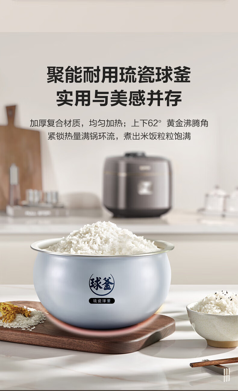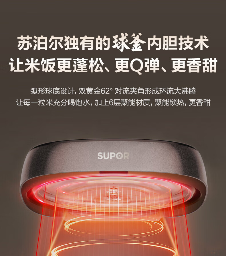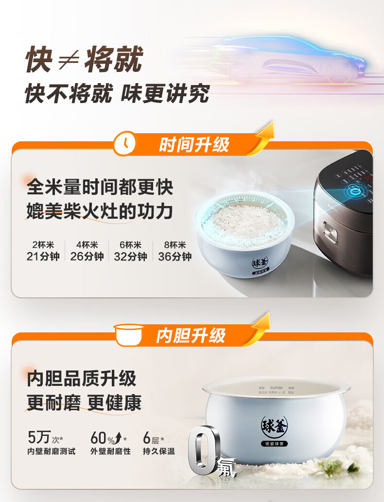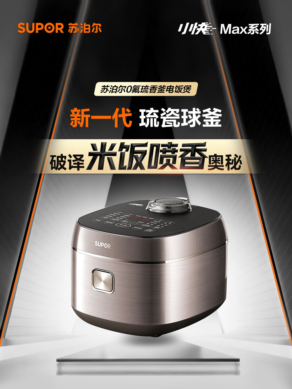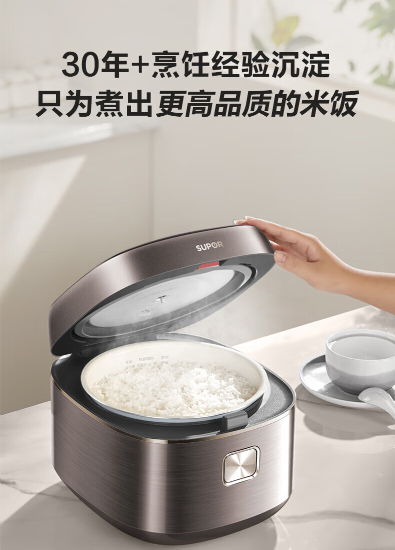 苏泊尔(SUPOR)电饭煲新一代0氟琉瓷球釜电饭锅4L家用3-4-5-6人多功能微压煮饭锅 21分钟柴火饭 防溢快煮F40X96
