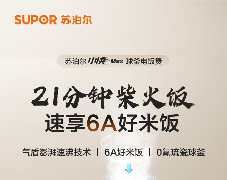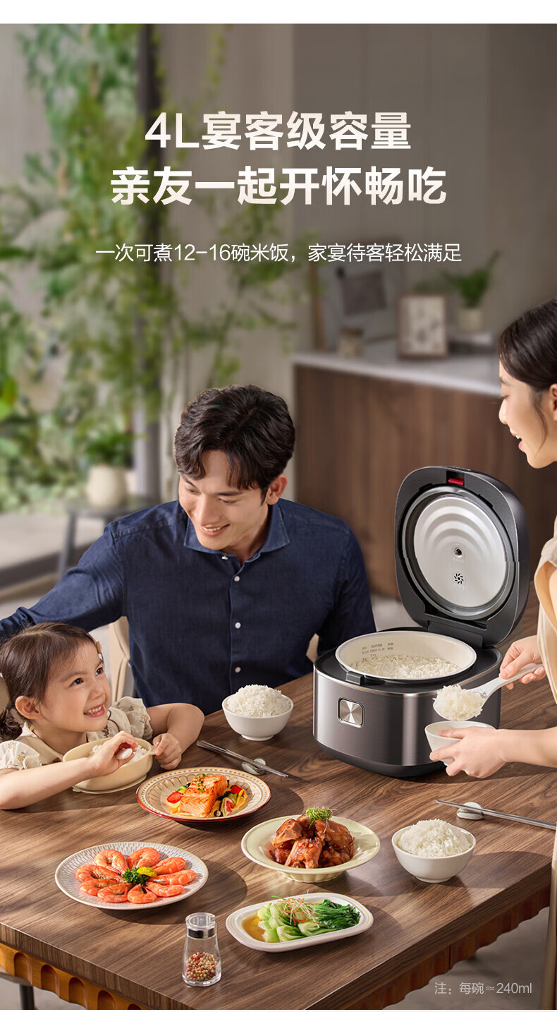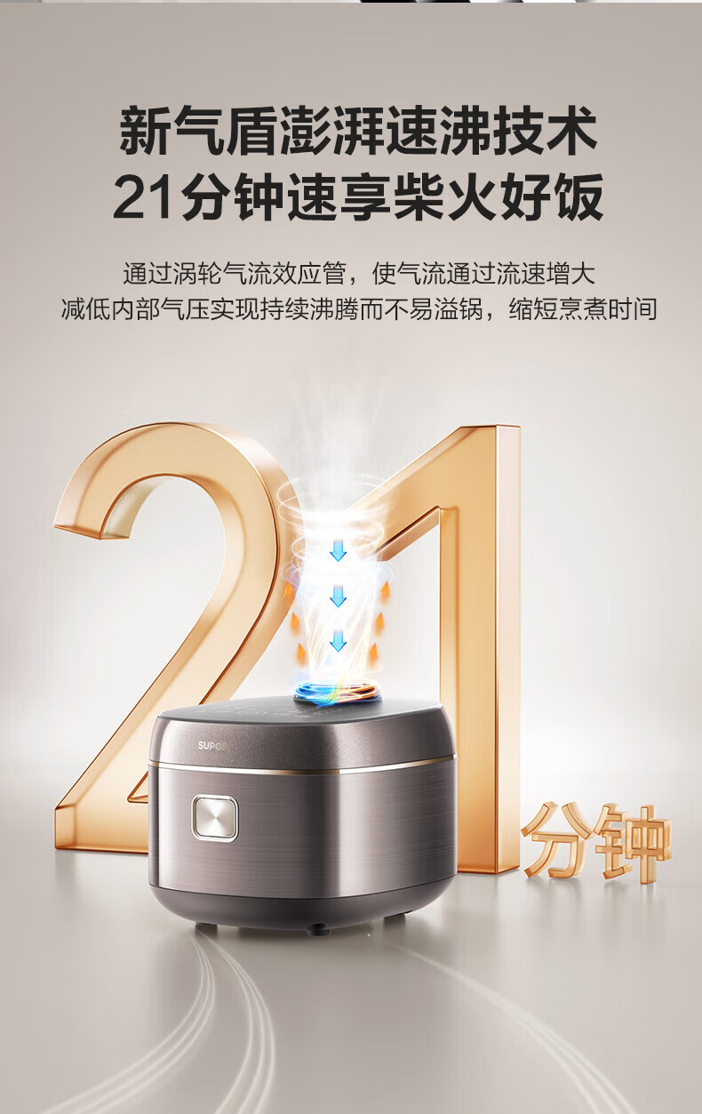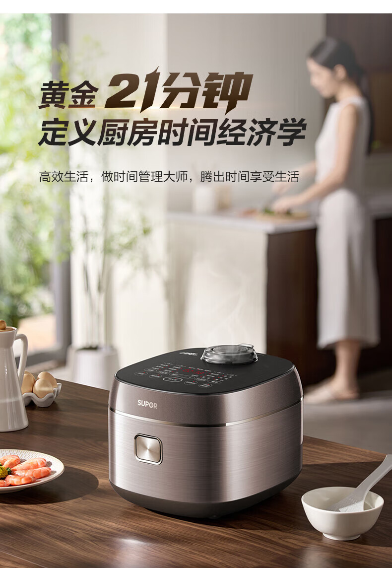 苏泊尔(SUPOR)电饭煲新一代0氟琉瓷球釜电饭锅4L家用3-4-5-6人多功能微压煮饭锅 21分钟柴火饭 防溢快煮F40X96