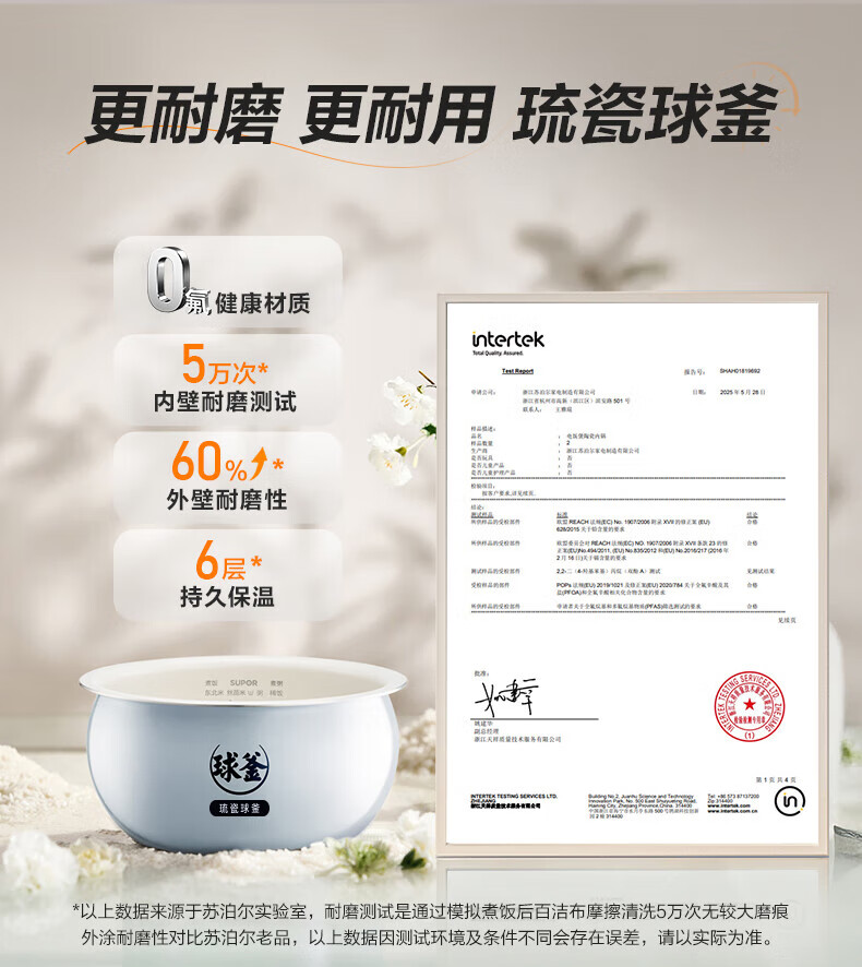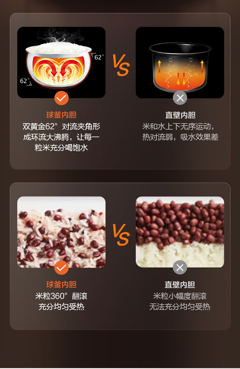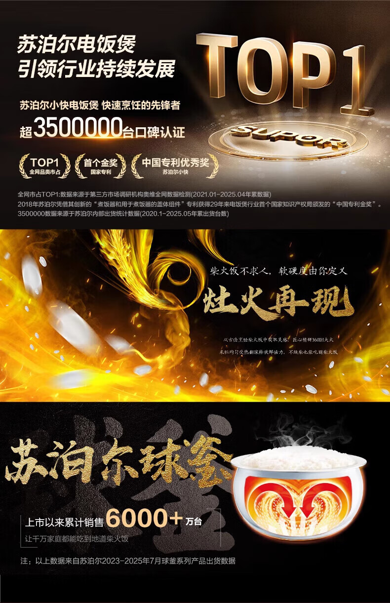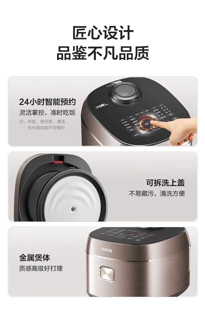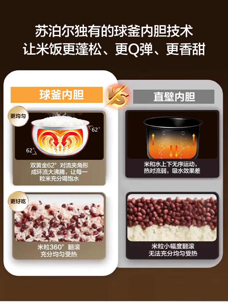 苏泊尔(SUPOR)电饭煲新一代0氟琉瓷球釜电饭锅4L家用3-4-5-6人多功能微压煮饭锅 21分钟柴火饭 防溢快煮F40X96