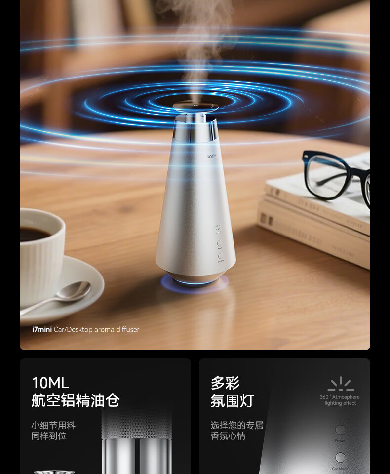 3004车载香薰机自动启停喷香机雾化智能喷雾精油智能扩香机送男友礼物