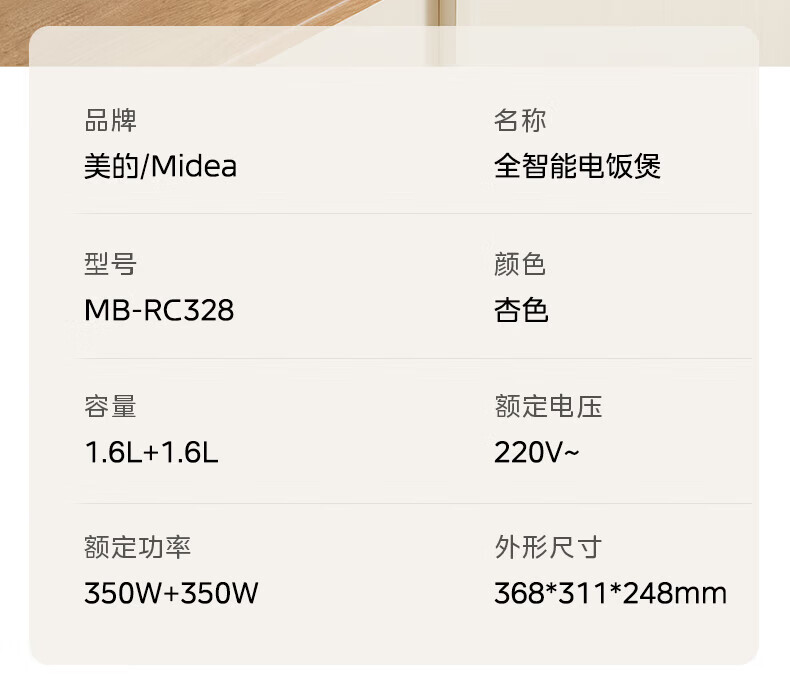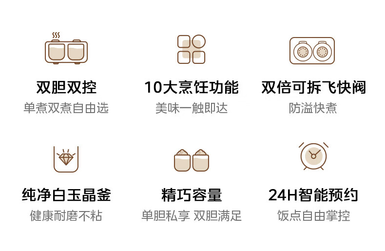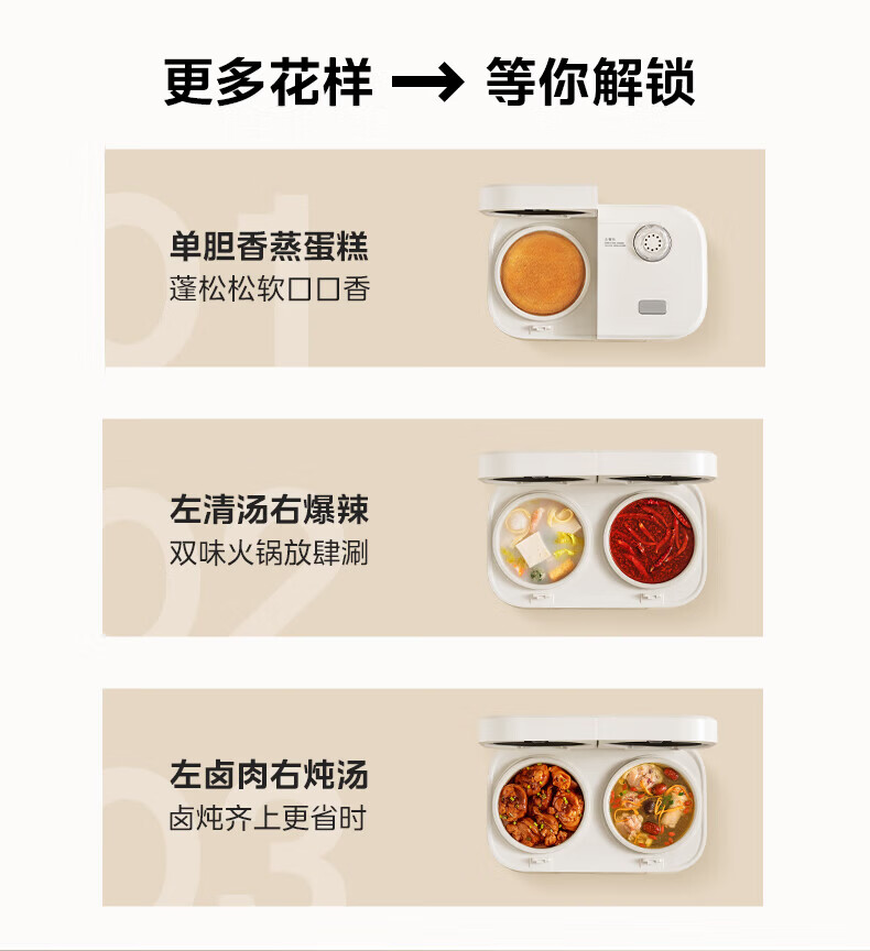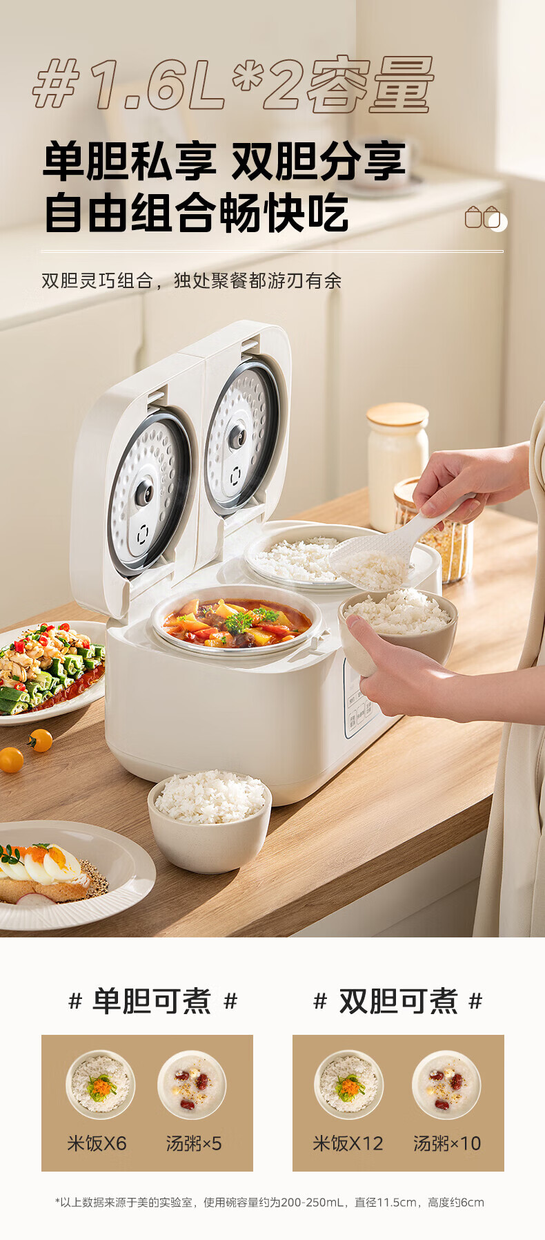 美的(Midea)双胆电饭煲3.2L 家用小型白玉晶釜内胆不粘锅双控双锅独立控温智能可预约多功能电饭锅煲汤锅 【双锅分区独立蒸煮】 3.2L 单锅1.6L