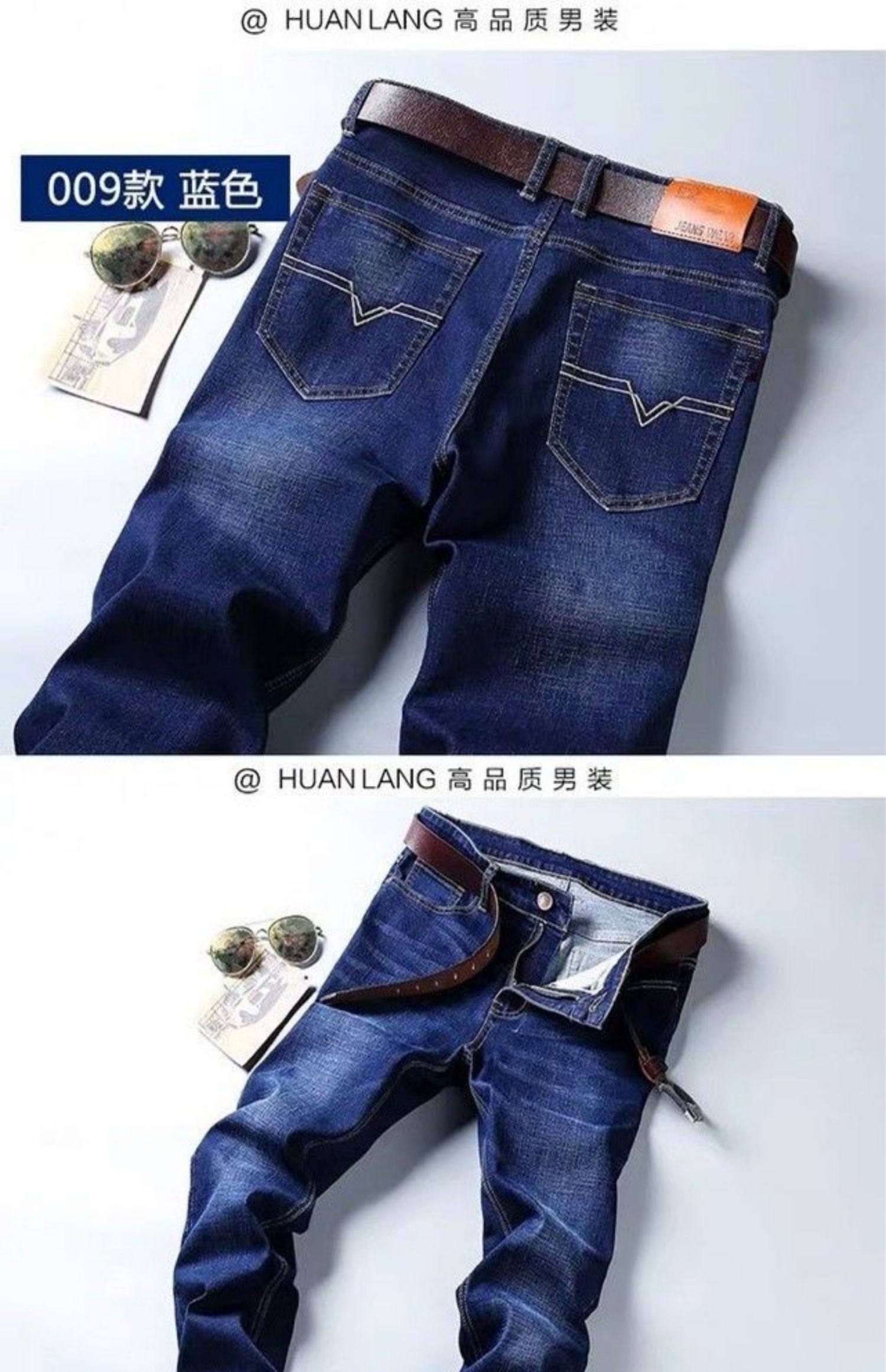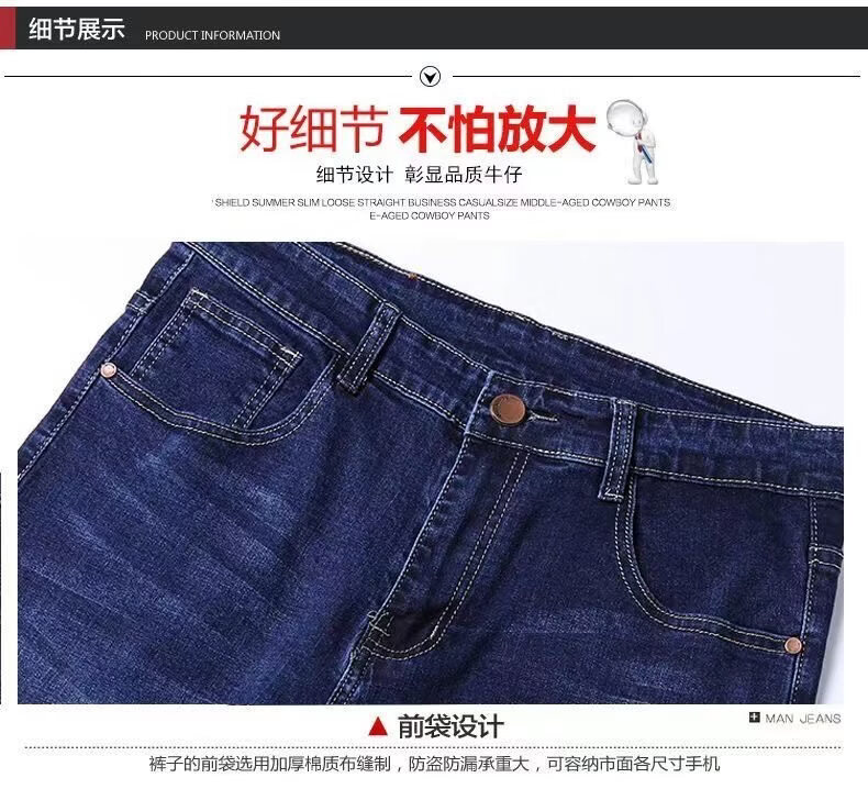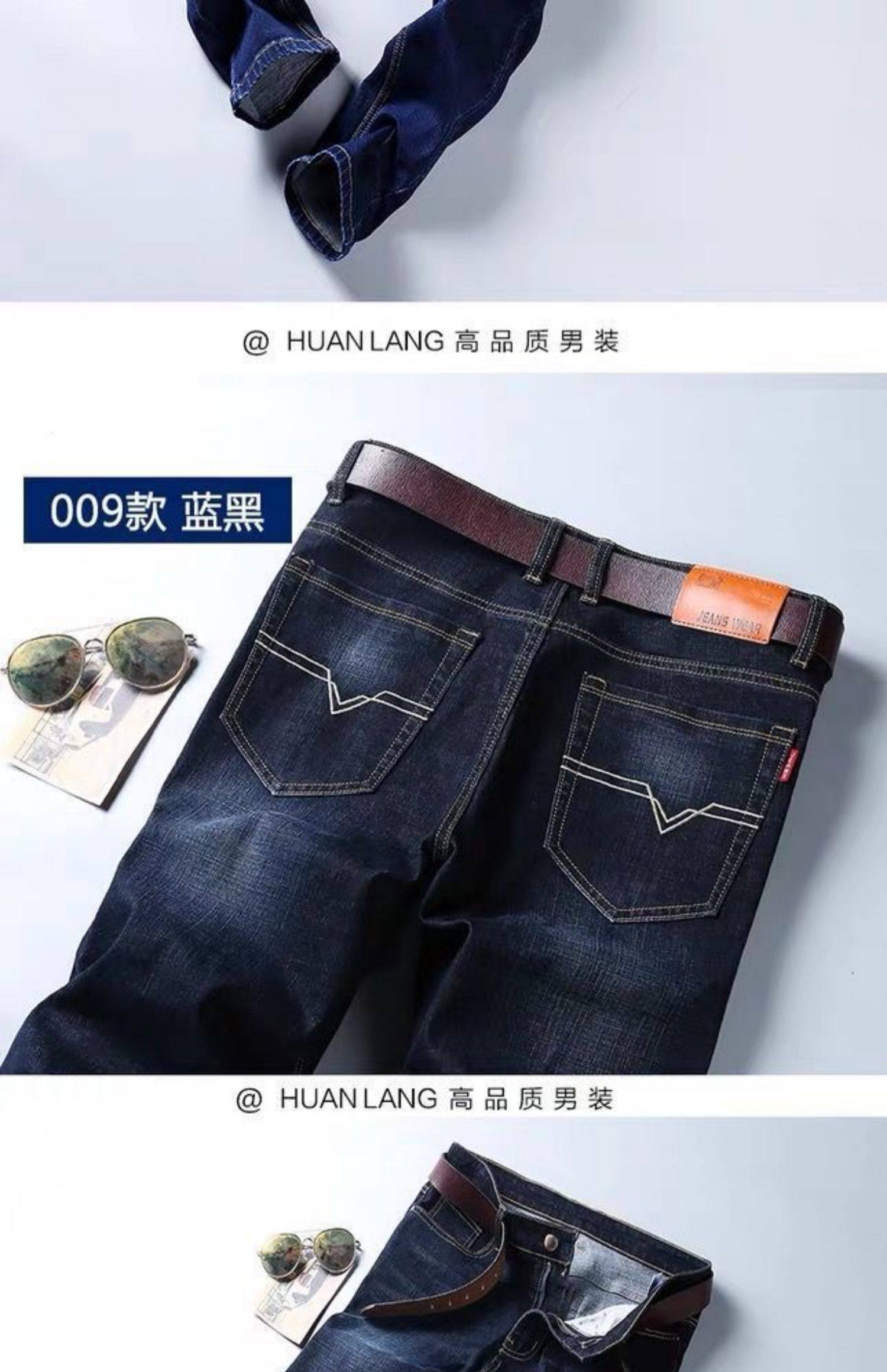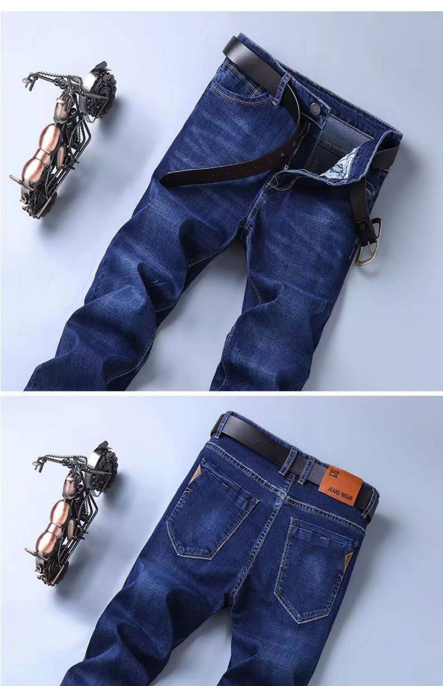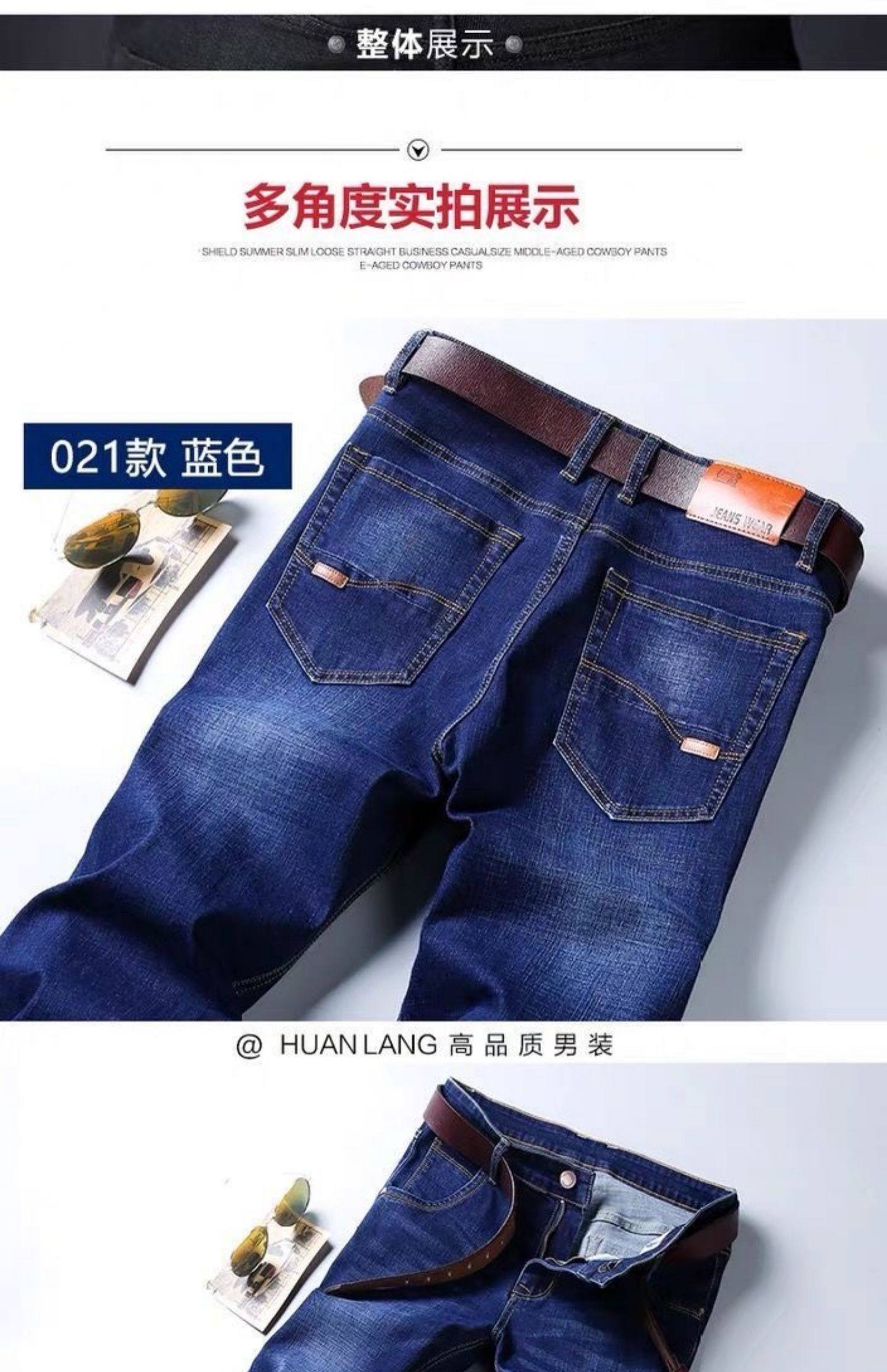 啄木鸟秋冬款牛仔裤男宽松直筒加肥加大码高腰厚款中年工作弹力肥佬长裤 蓝色 28