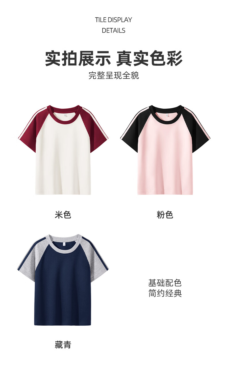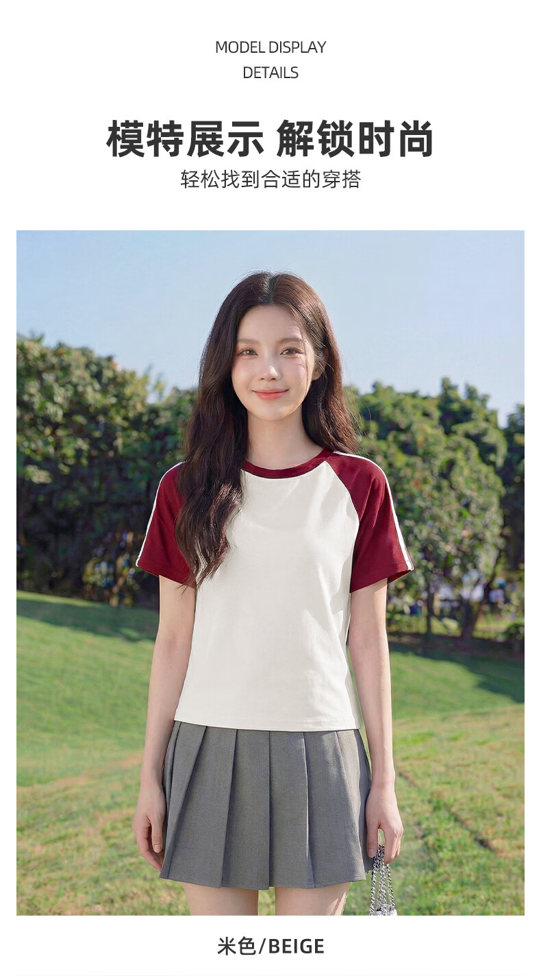 真维斯(Jeanswest)撞色插肩袖条杠短袖t恤女夏季美式复古小个子潮牌半袖学生上衣服 米色 彩色风格 S