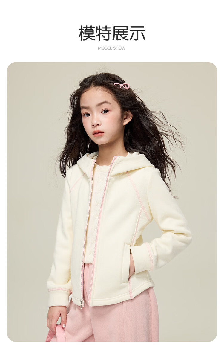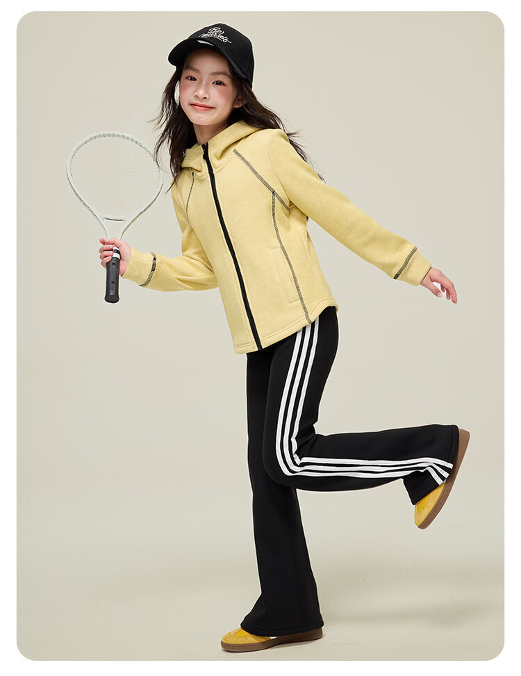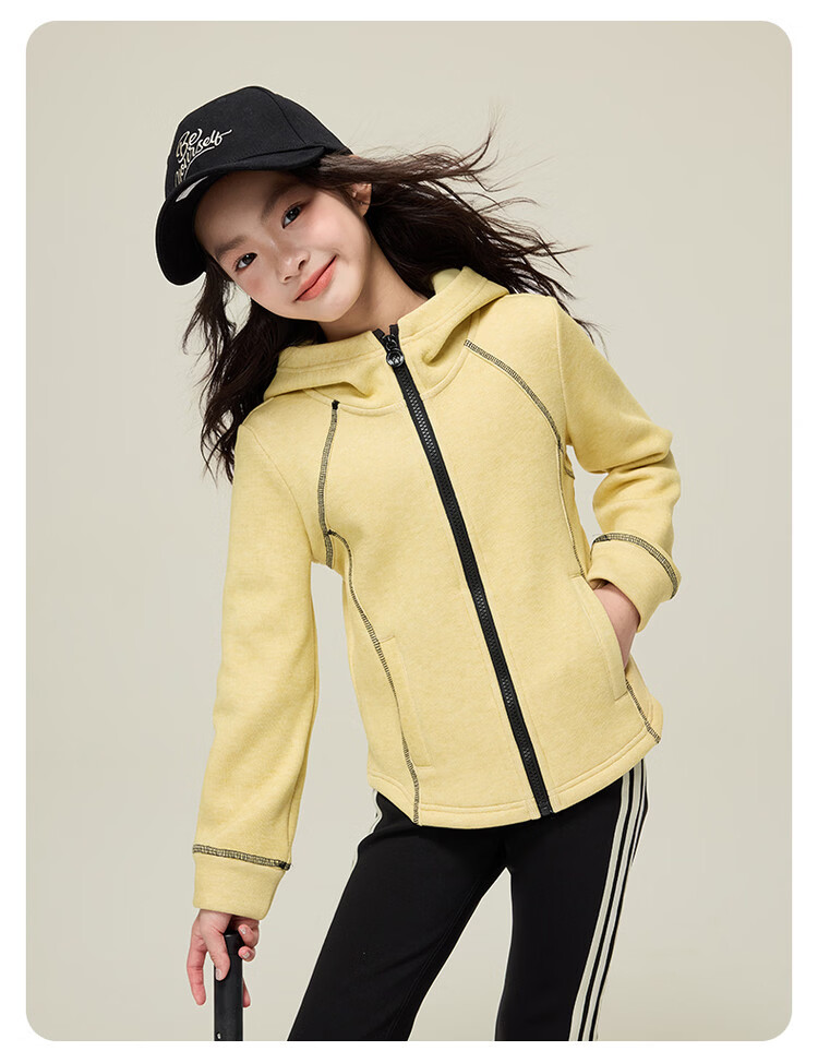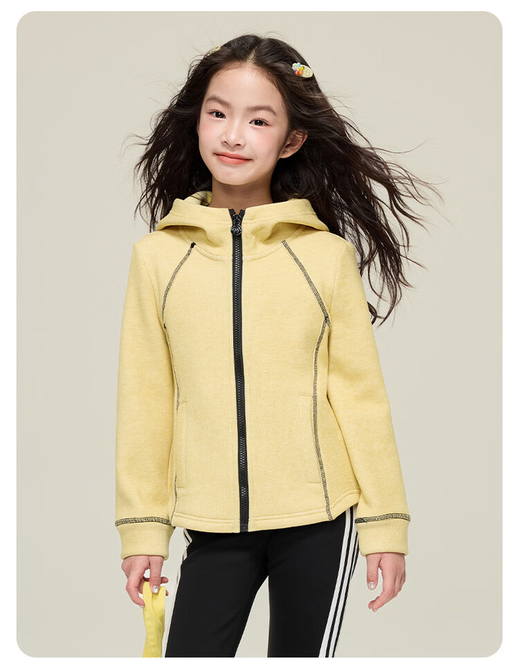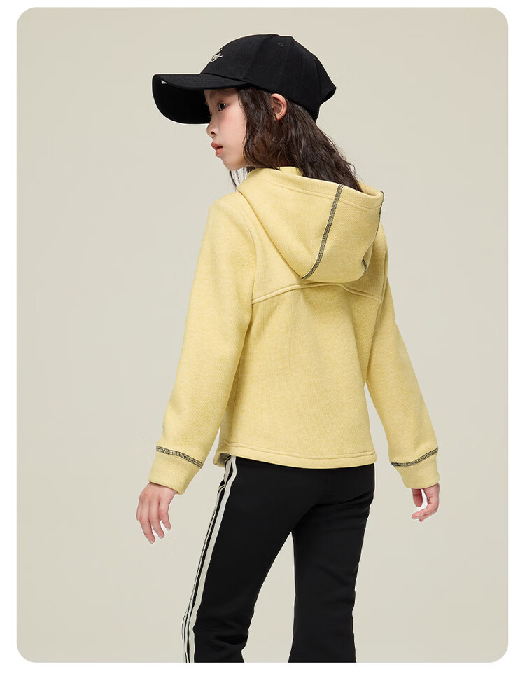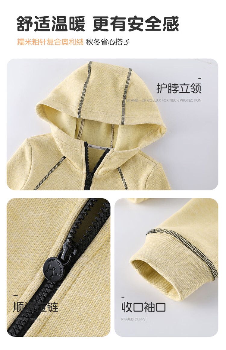 媛媛公主儿童外套秋冬款女童运动外套连帽修身加厚保暖女大童休闲外套 橘黄色 110