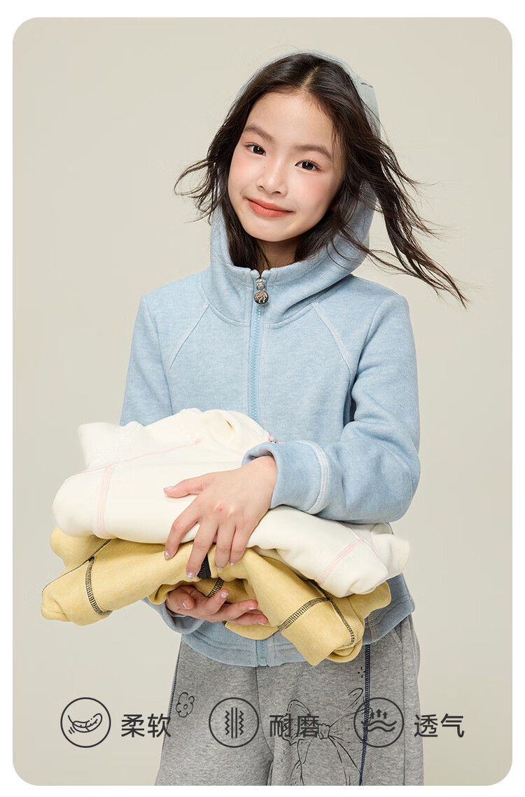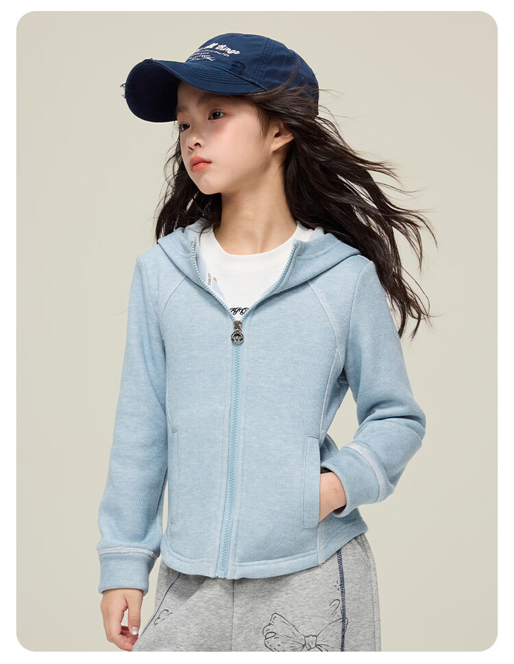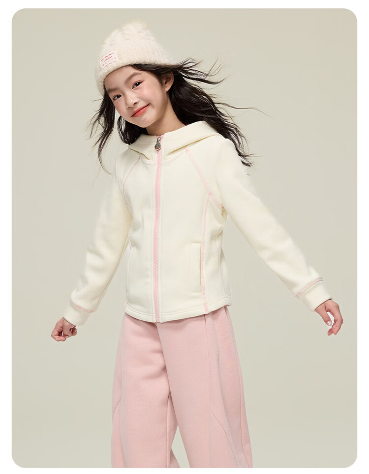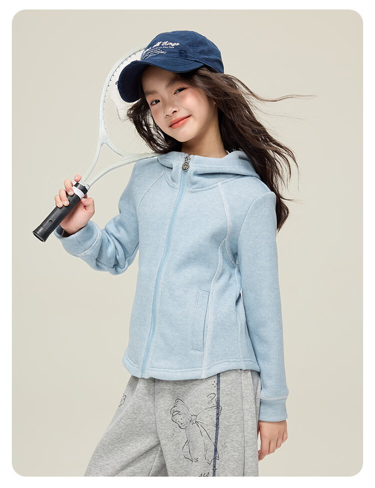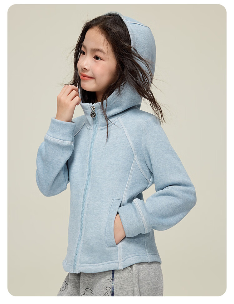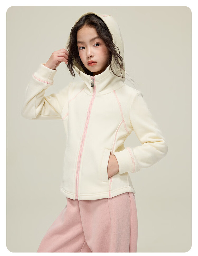 媛媛公主儿童外套秋冬款女童运动外套连帽修身加厚保暖女大童休闲外套 橘黄色 110