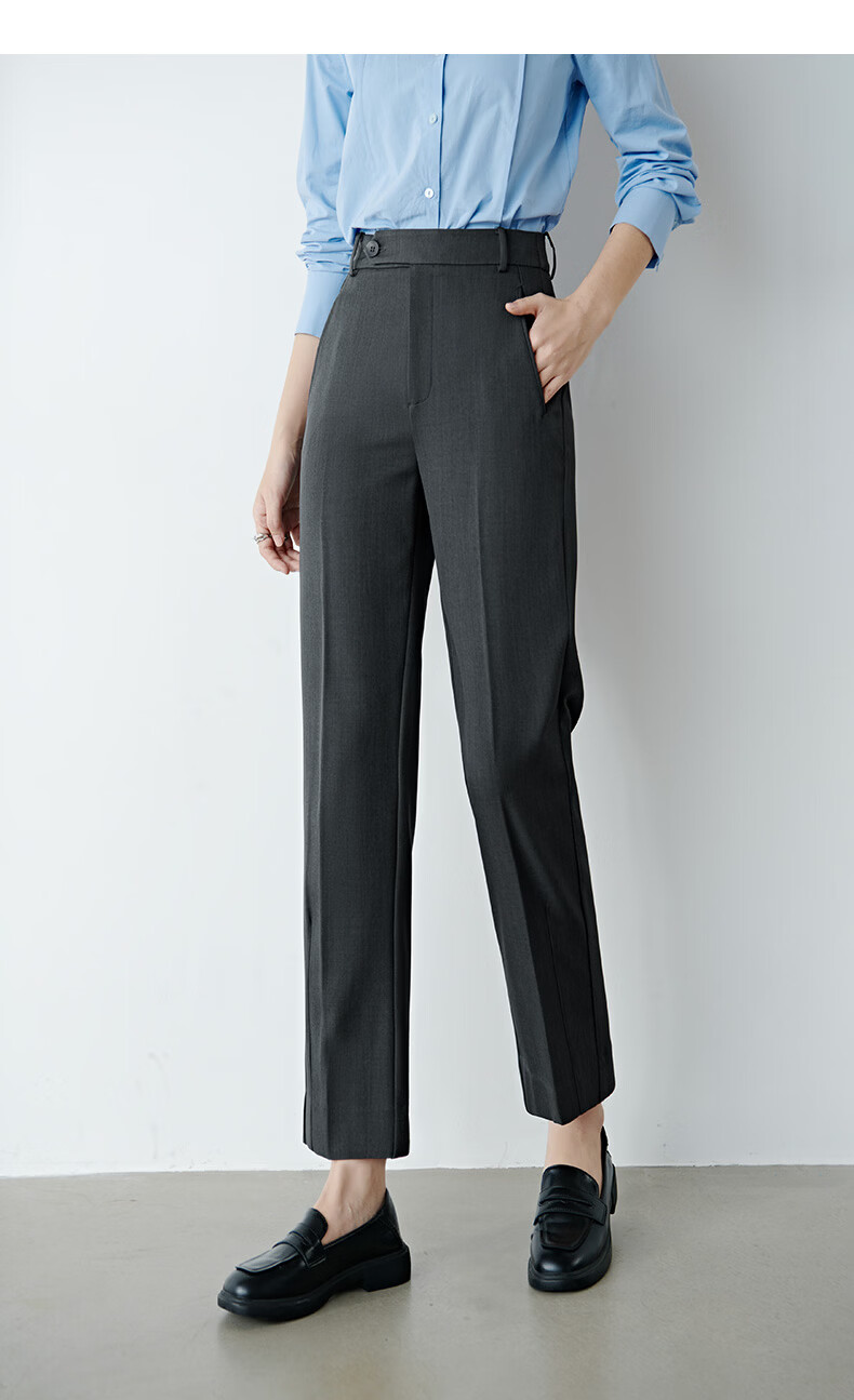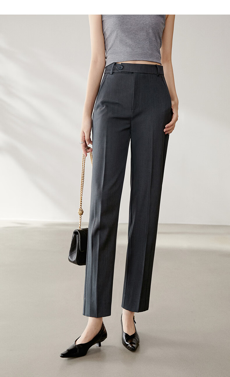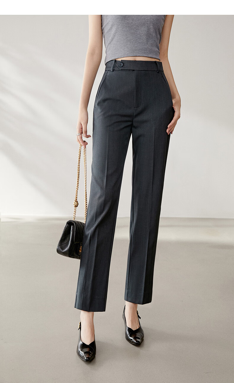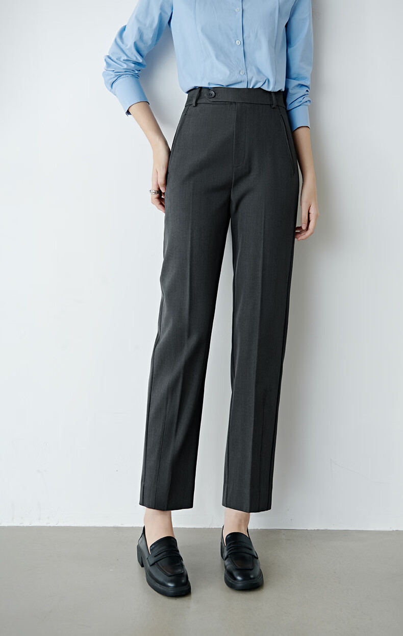 晚白【新品】2026春款经典高腰裤子挺括利落气质通勤烟管裤女 深灰色 29
