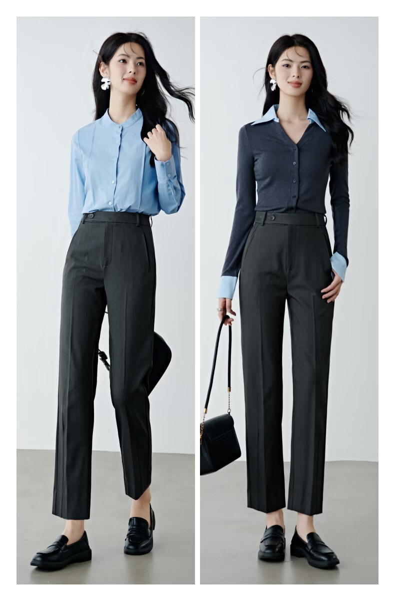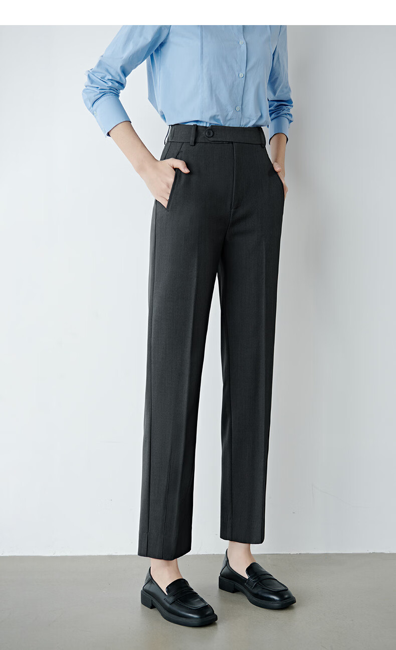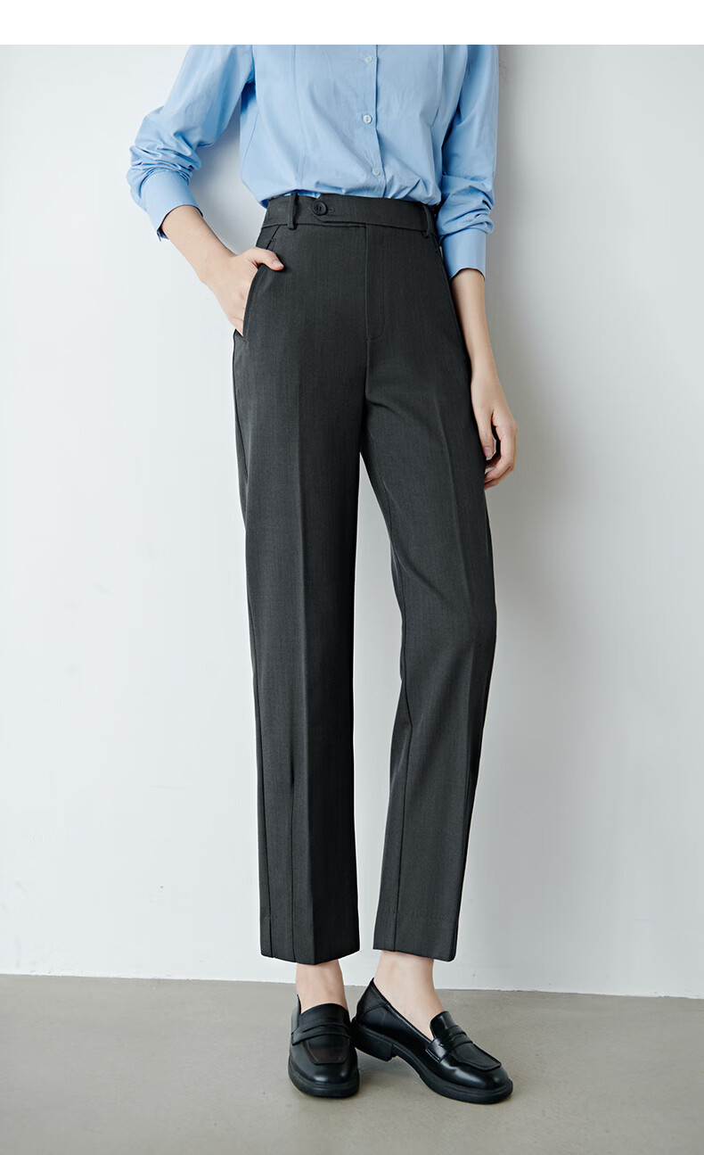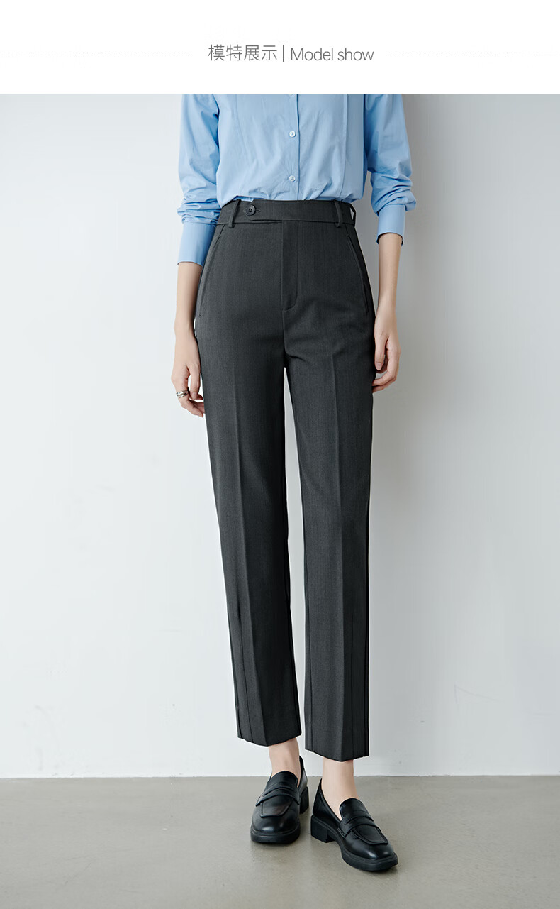 晚白【新品】2026春款经典高腰裤子挺括利落气质通勤烟管裤女 深灰色 29