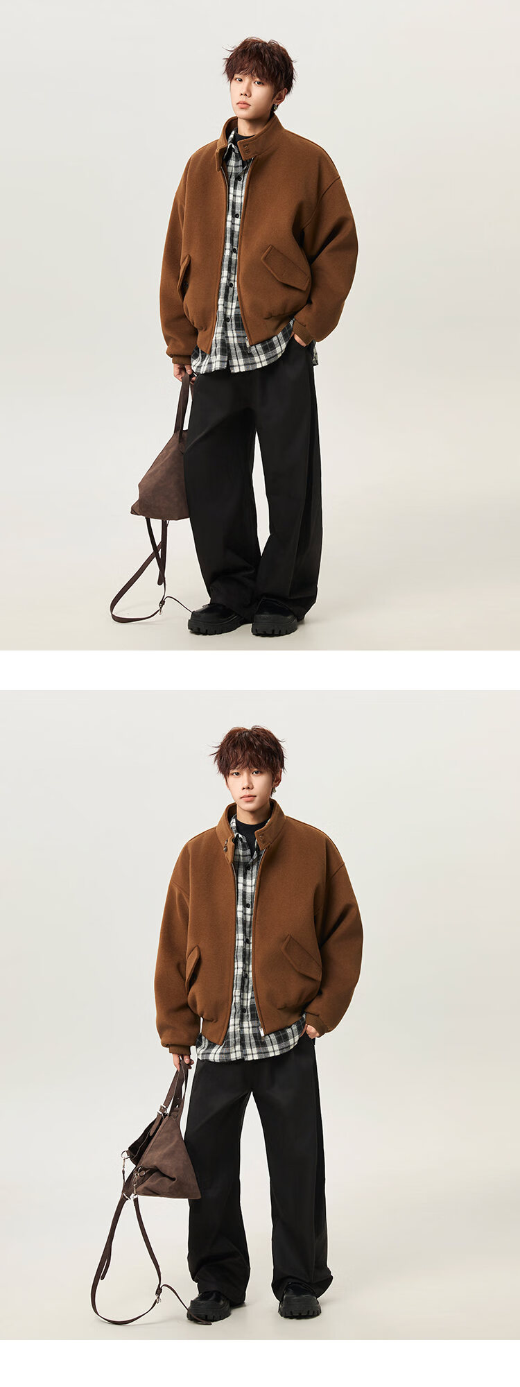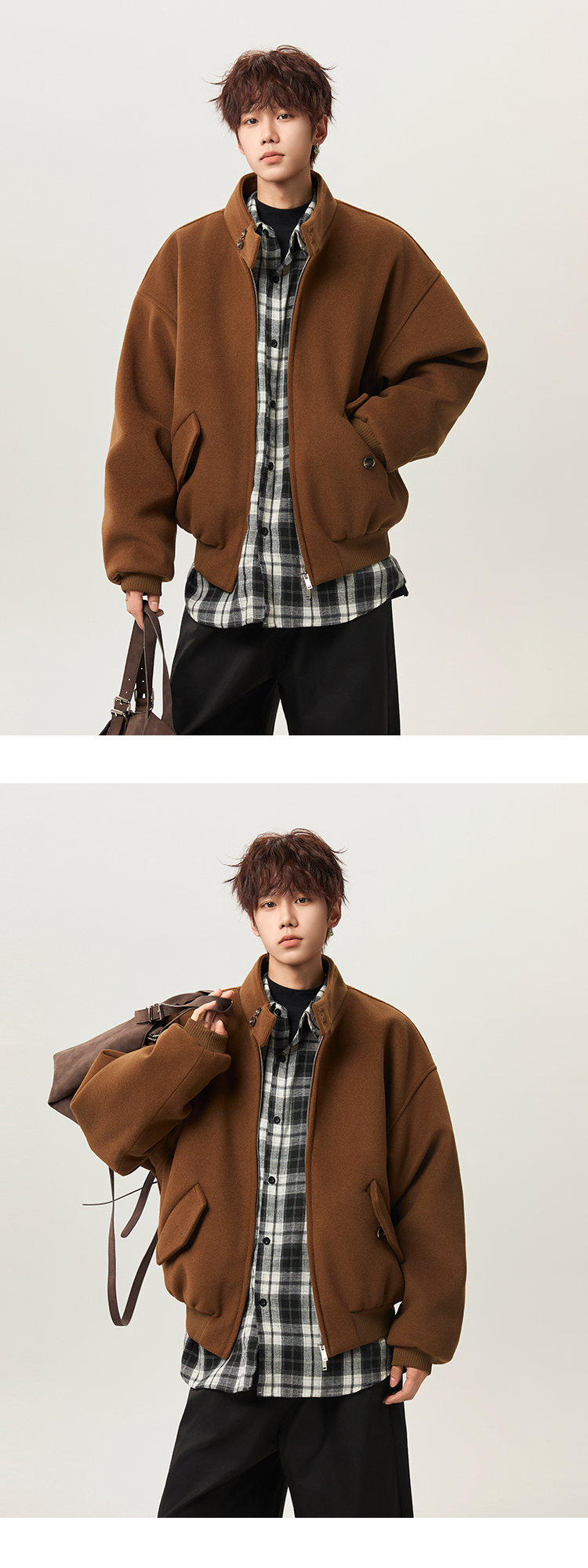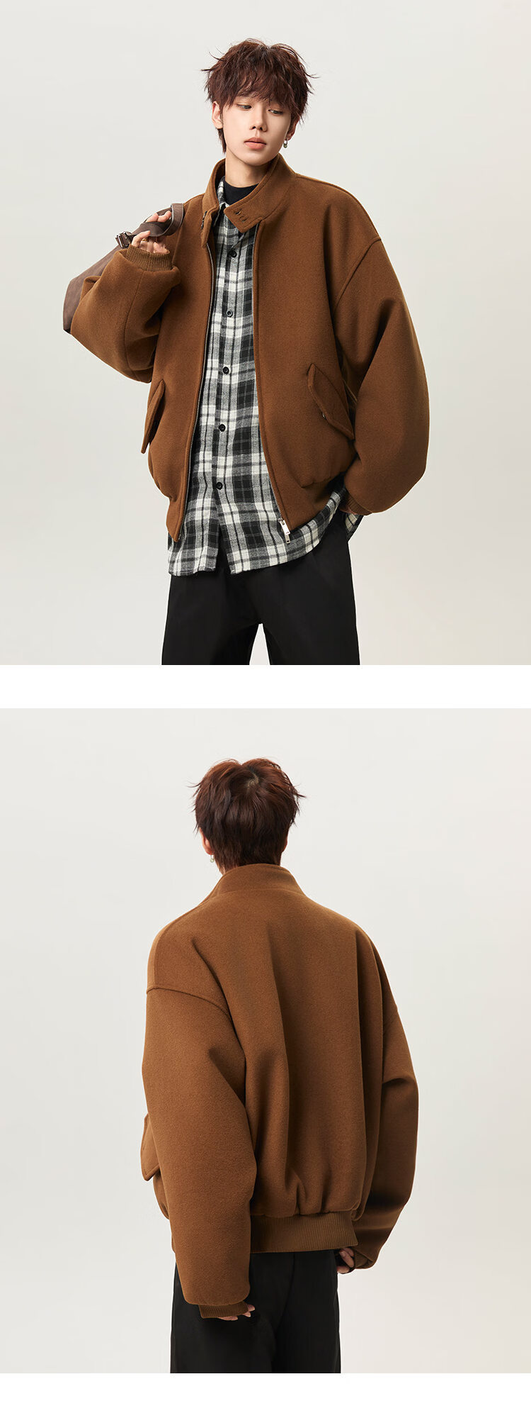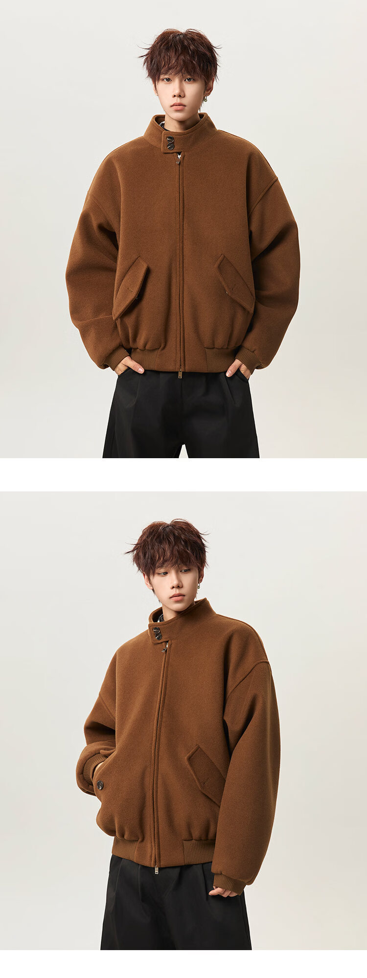 NEW OR MODE韩版立领加棉毛呢大衣男冬季新款加厚保暖宽松设计感短款棉服风衣 咖啡色 M 【建议90-110斤】