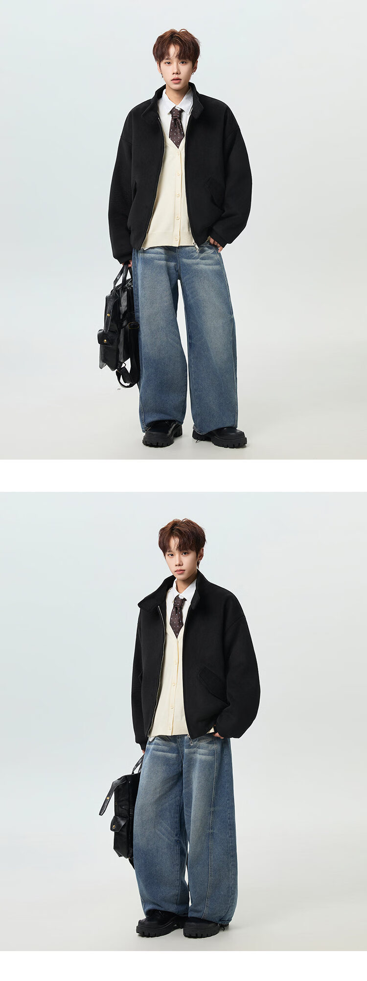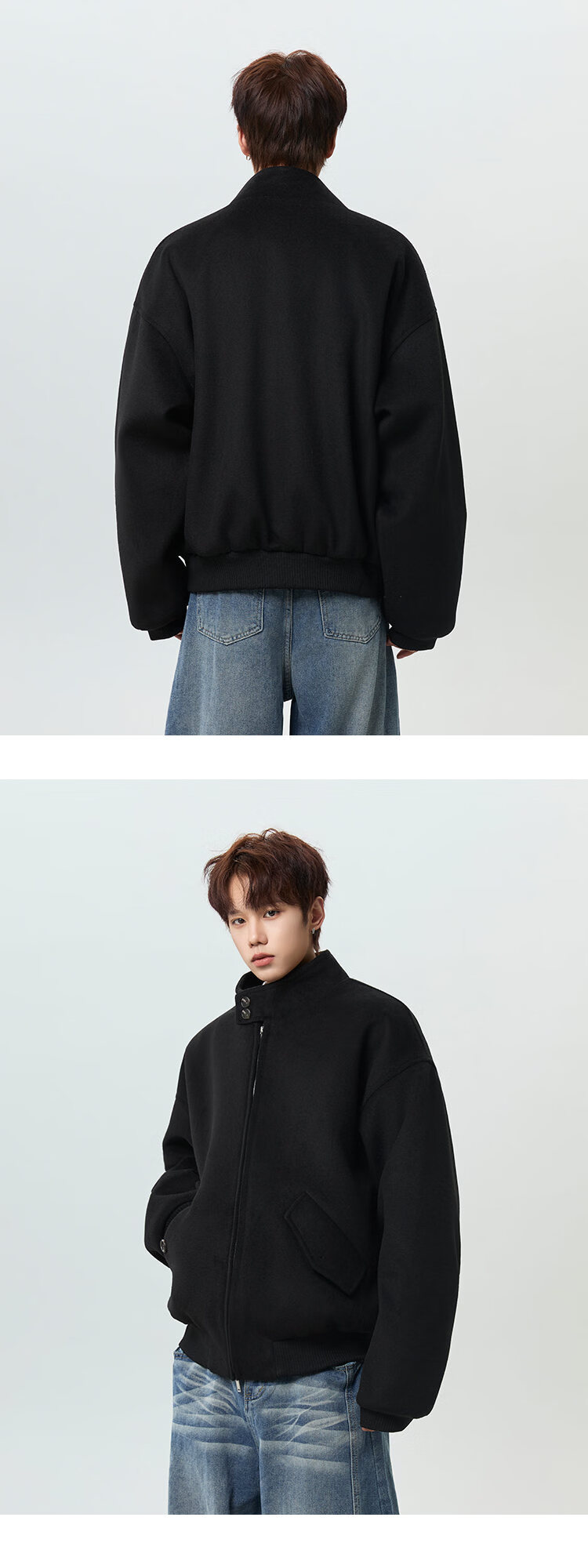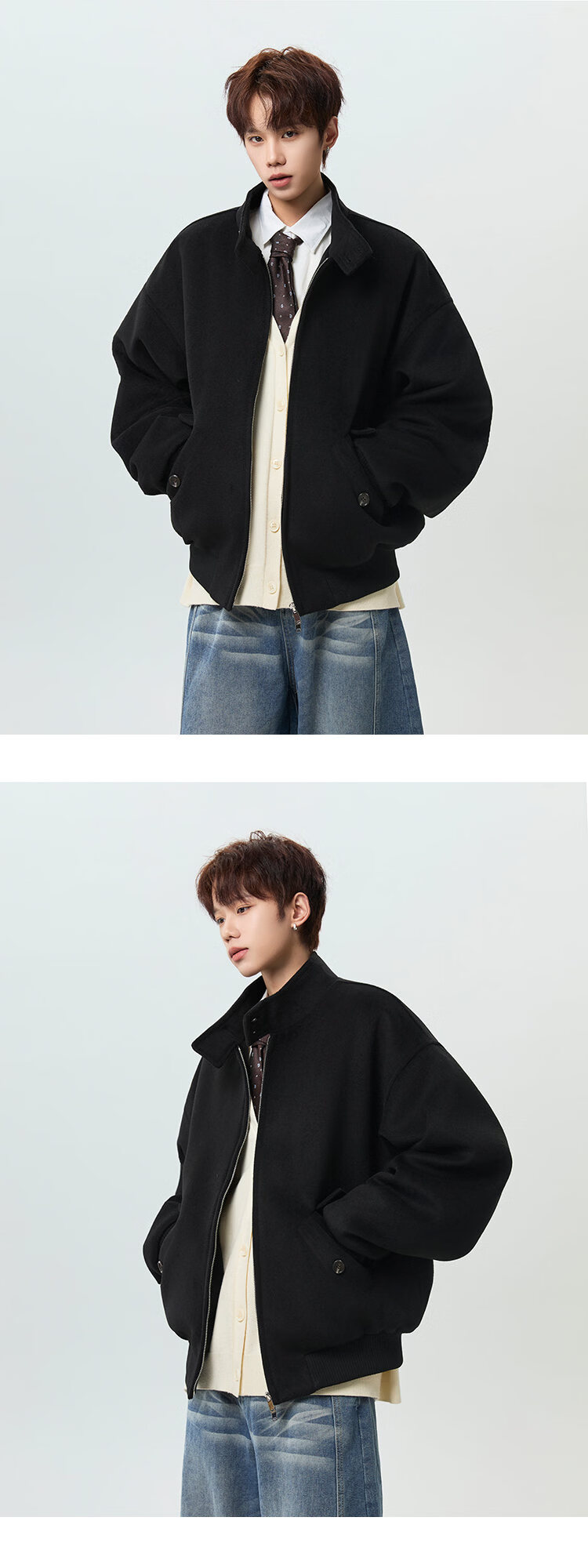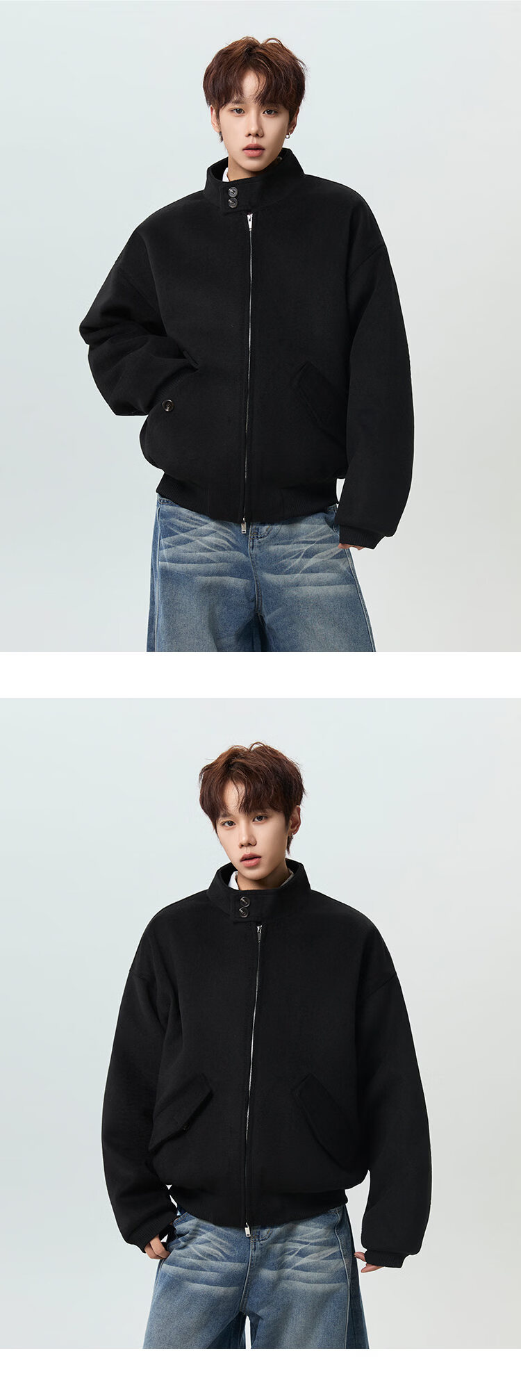 NEW OR MODE韩版立领加棉毛呢大衣男冬季新款加厚保暖宽松设计感短款棉服风衣 咖啡色 M 【建议90-110斤】