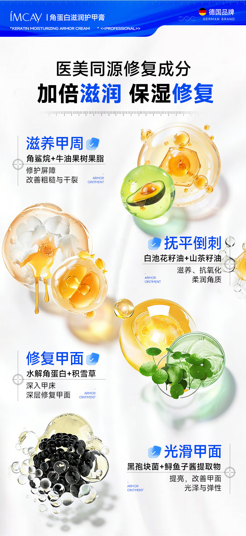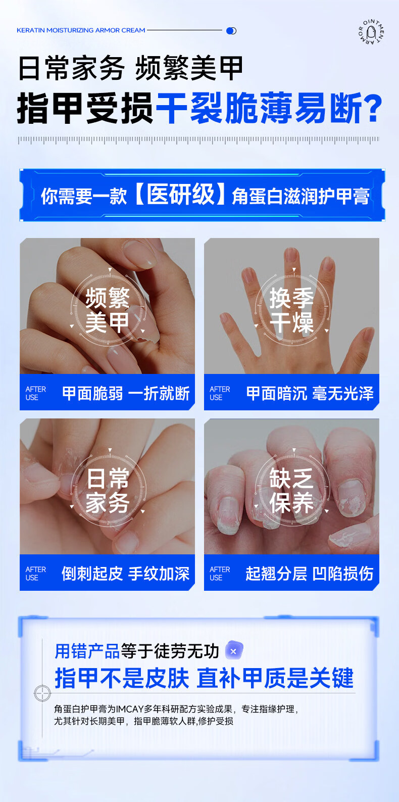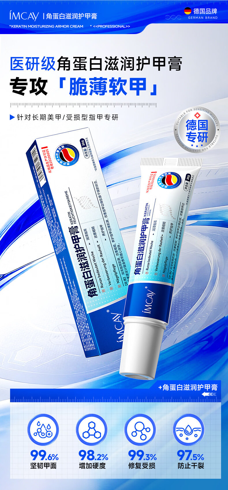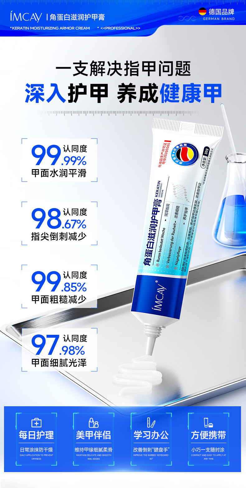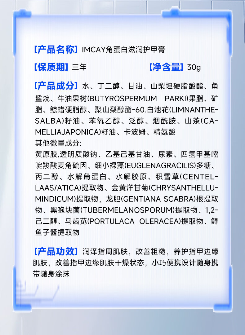 IMCAY角蛋白护甲膏油养指甲增厚营养液防断裂倒刺薄软开裂指缘霜30g1盒