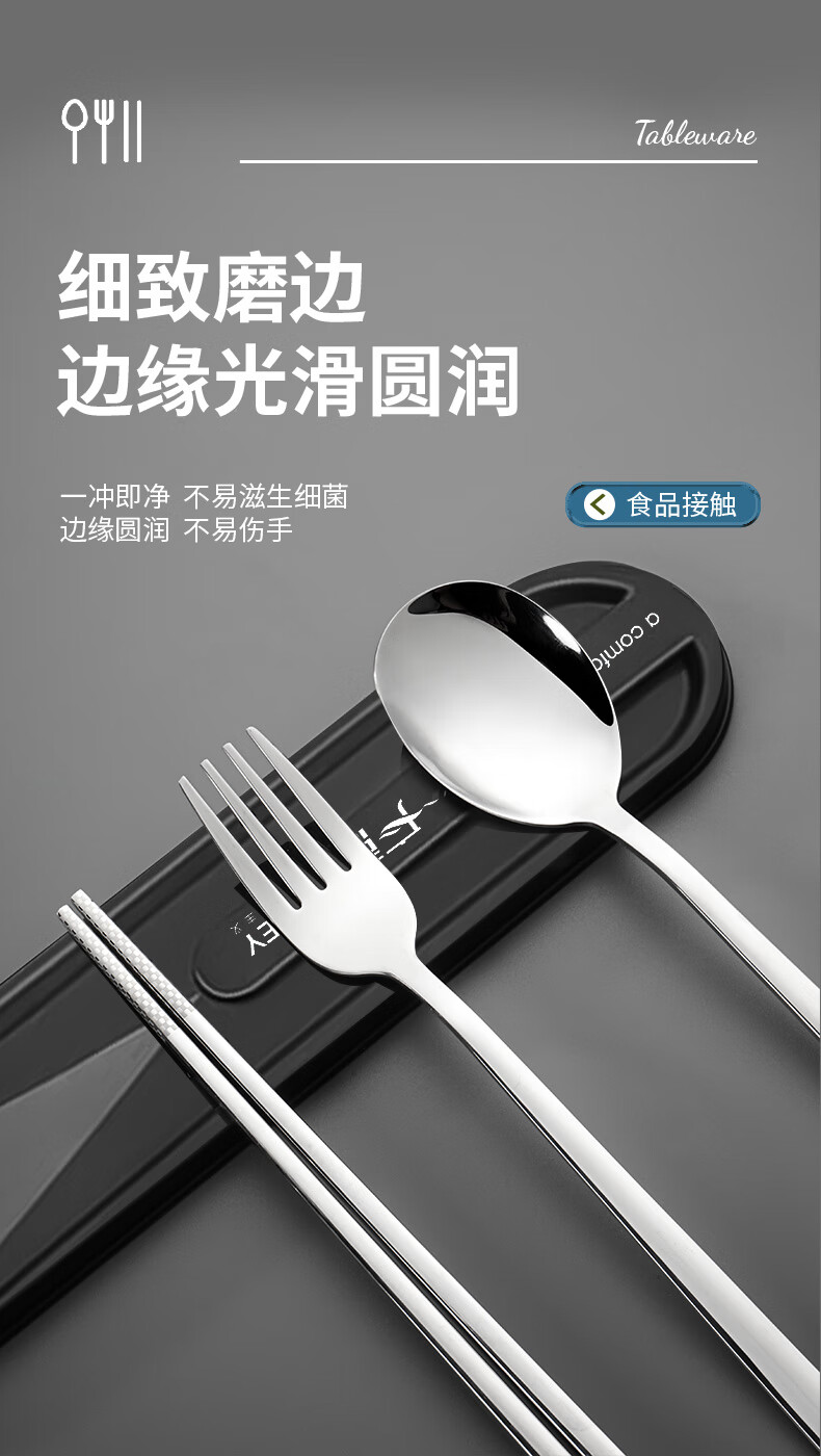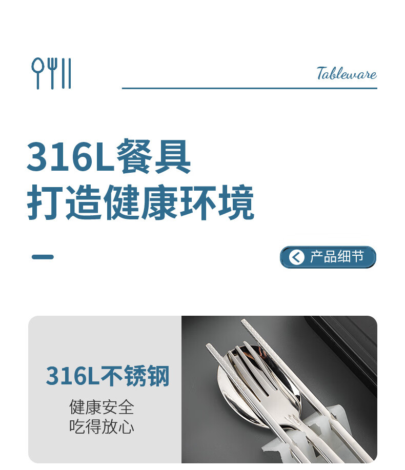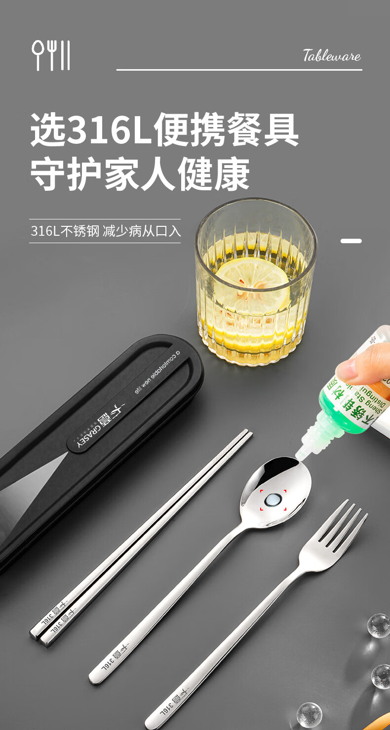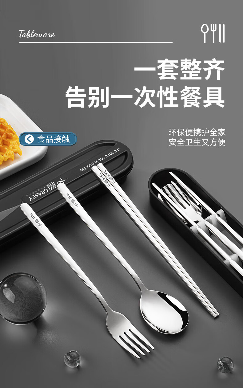 广意筷子餐具学生316L不锈钢叉勺套装 食品级上班族专用便携式餐具 3件套 【勺子+筷子+盒子】