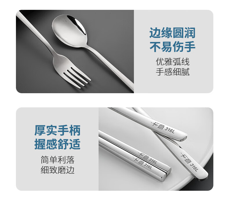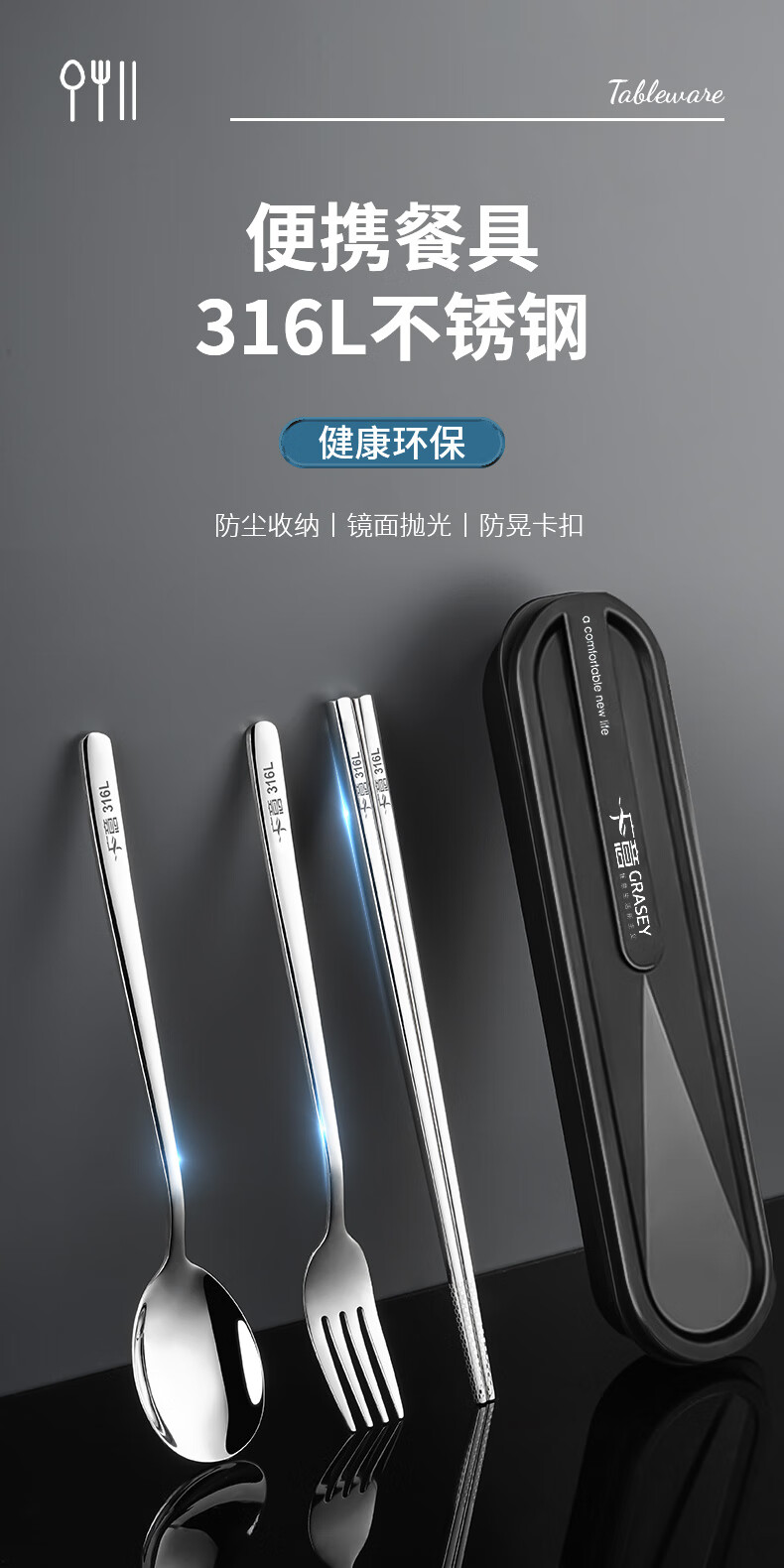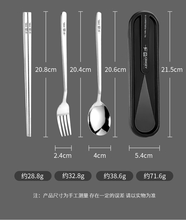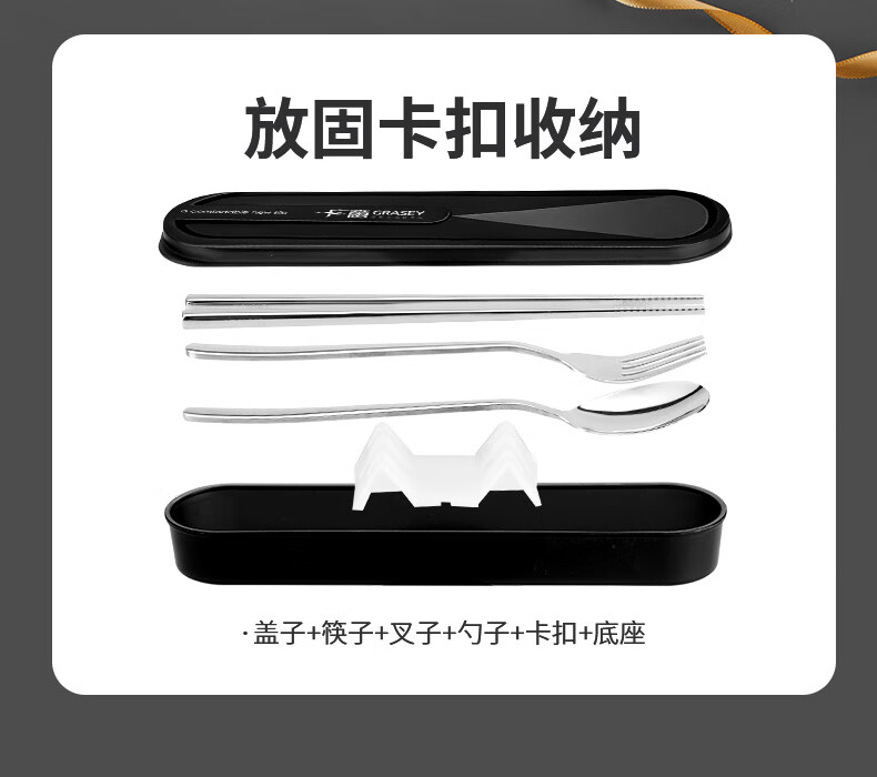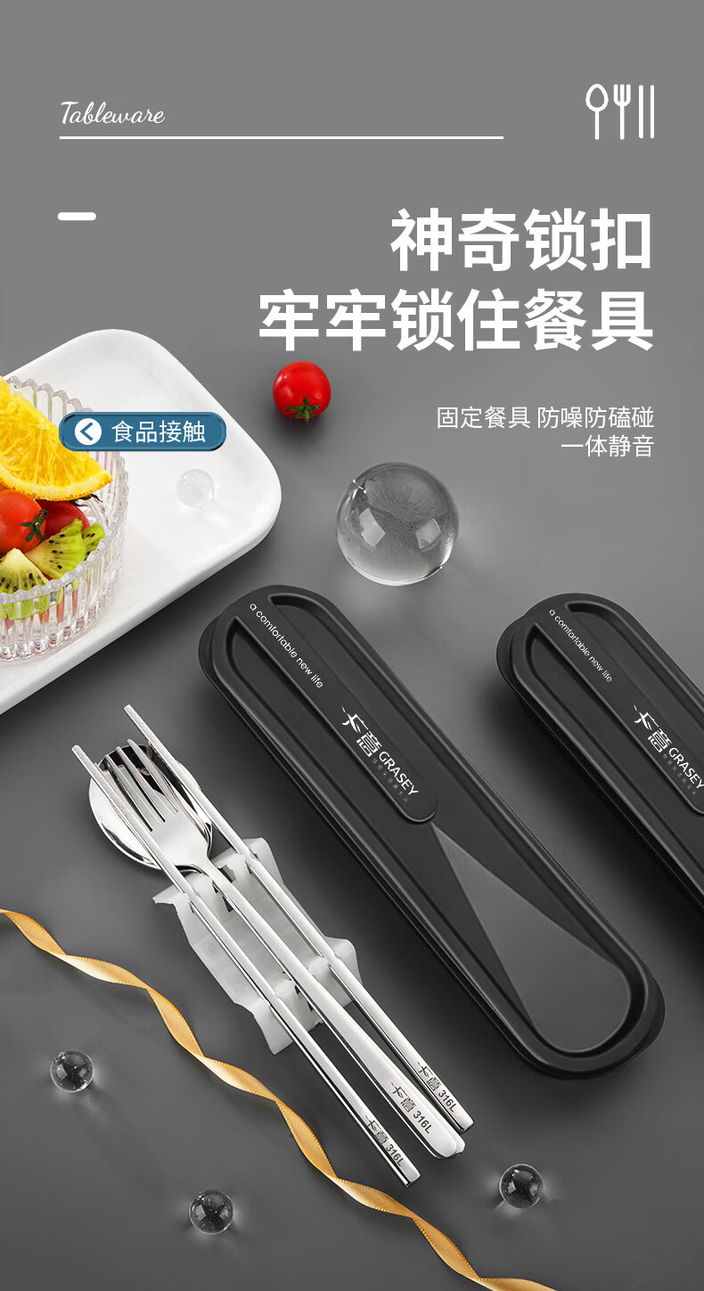 广意筷子餐具学生316L不锈钢叉勺套装 食品级上班族专用便携式餐具 3件套 【勺子+筷子+盒子】
