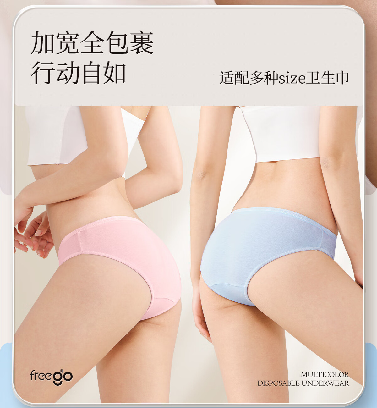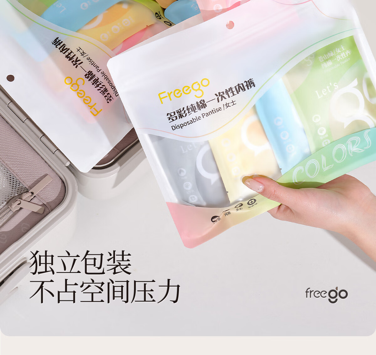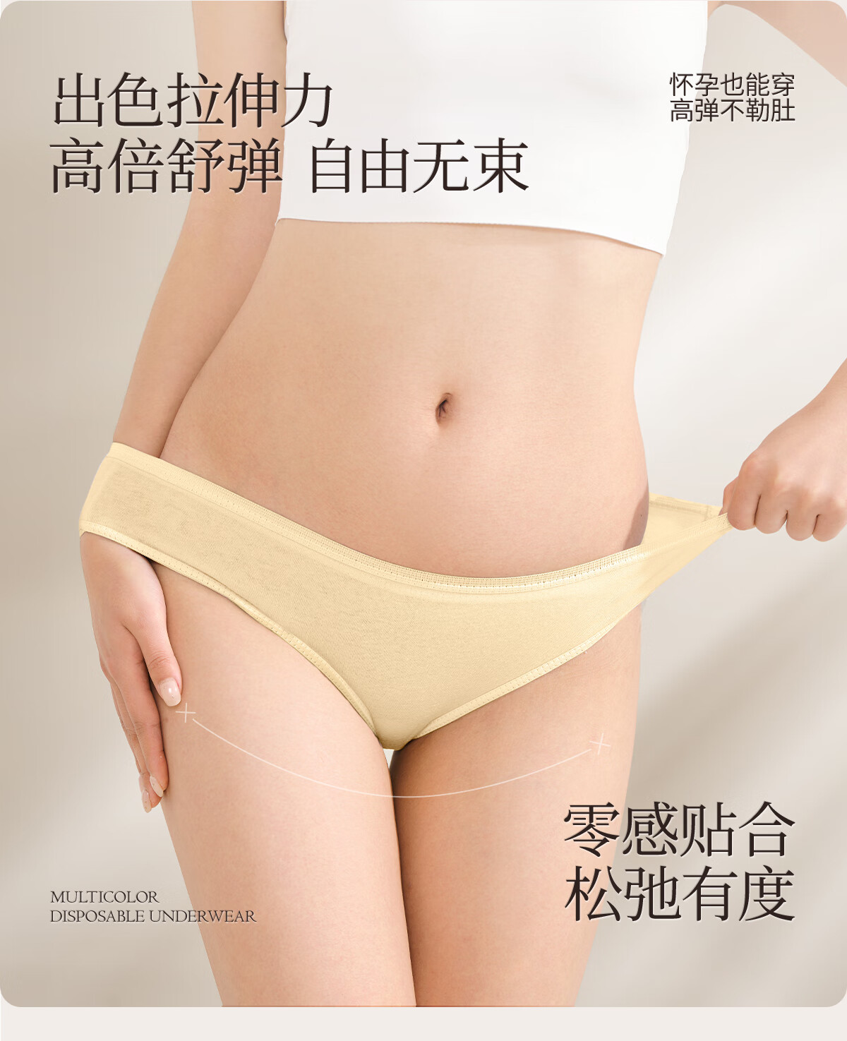 Freego一次性内裤女纯棉独立装10条彩色日抛旅行出差孕妇产妇灭菌 L码