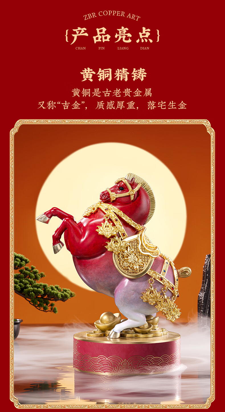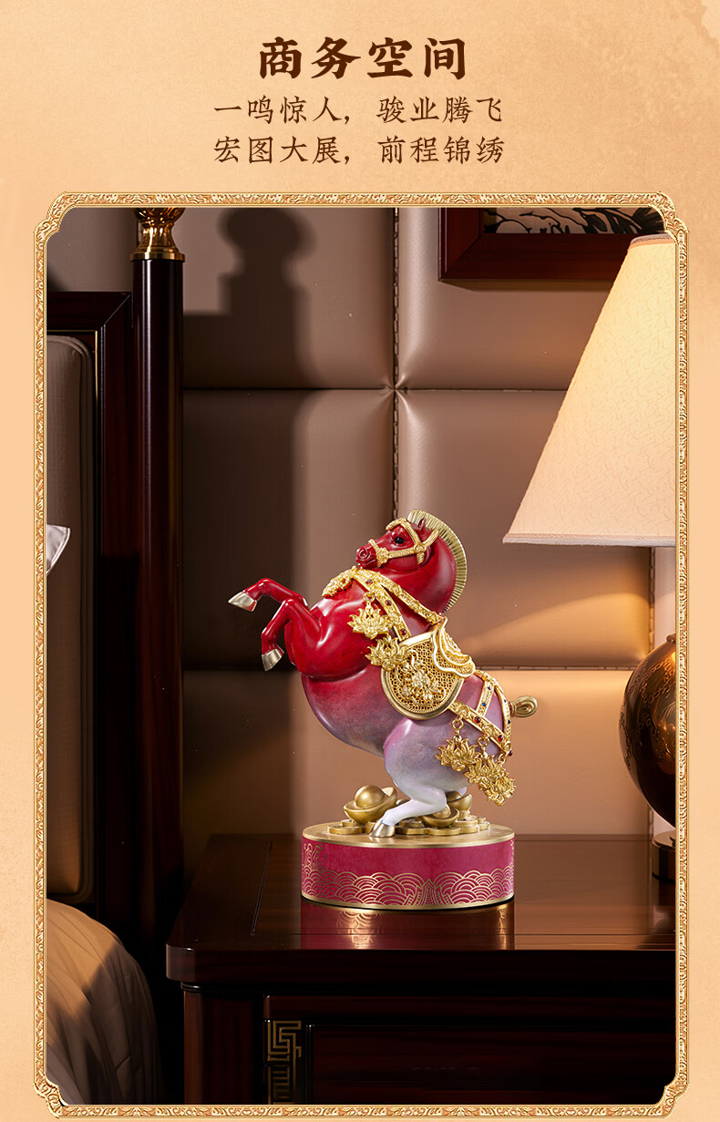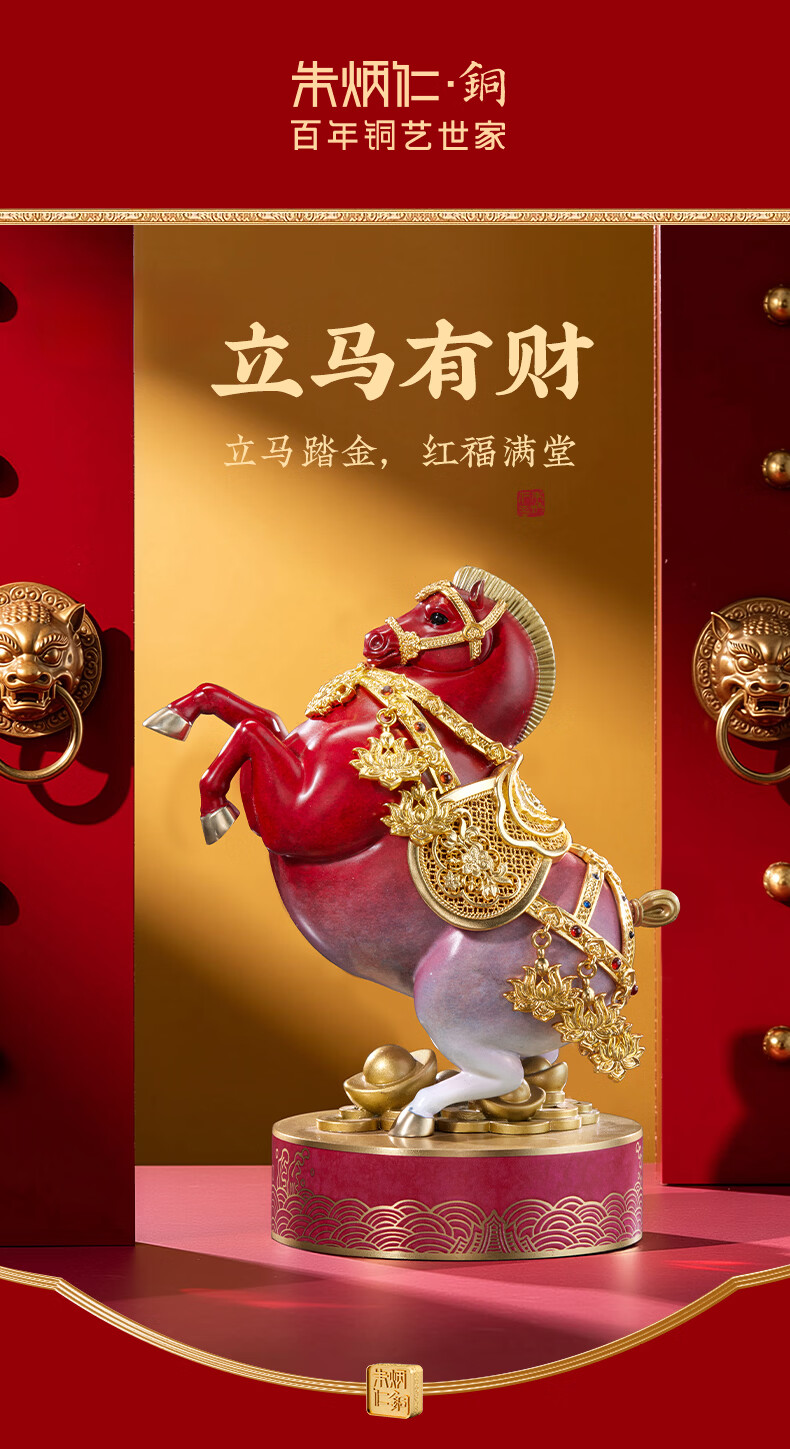 朱炳仁铜 立马有财 生肖马铜书房工艺品办公室桌面装饰品马摆件礼赠品 立马生财