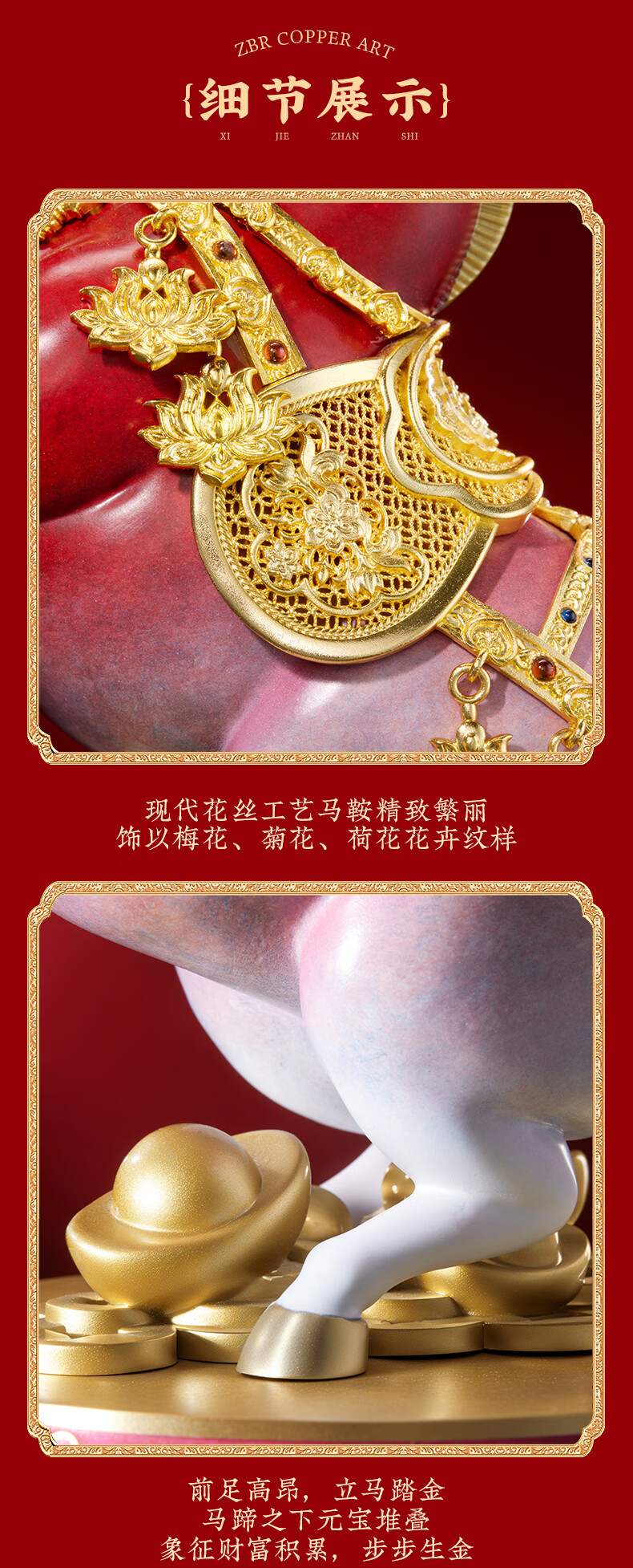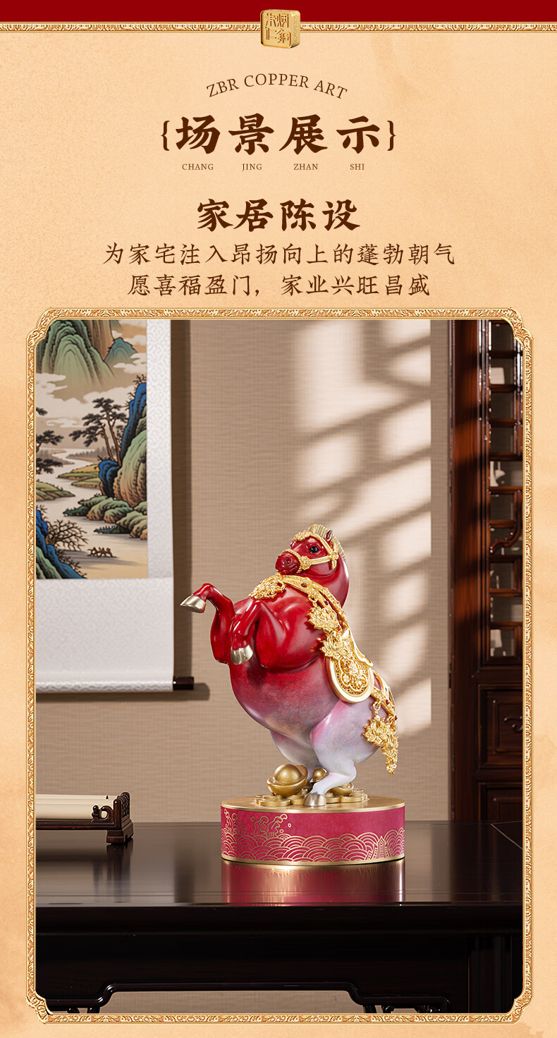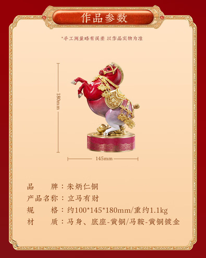 朱炳仁铜 立马有财 生肖马铜书房工艺品办公室桌面装饰品马摆件礼赠品 立马生财