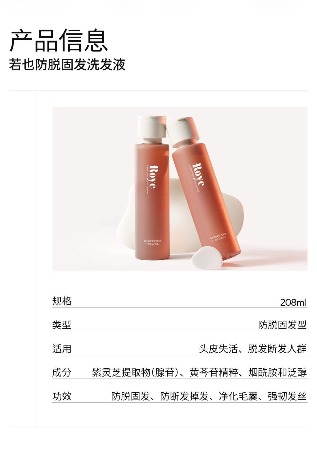 roye灵芝防脱洗发水防断固发赋能洗发液无硅油焕活毛囊丰盈强韧洗发露 【持证防脱 灵芝萃取】防脱洗发液208ml