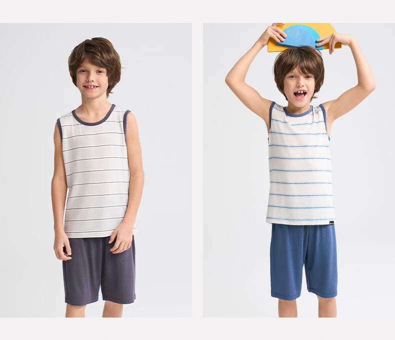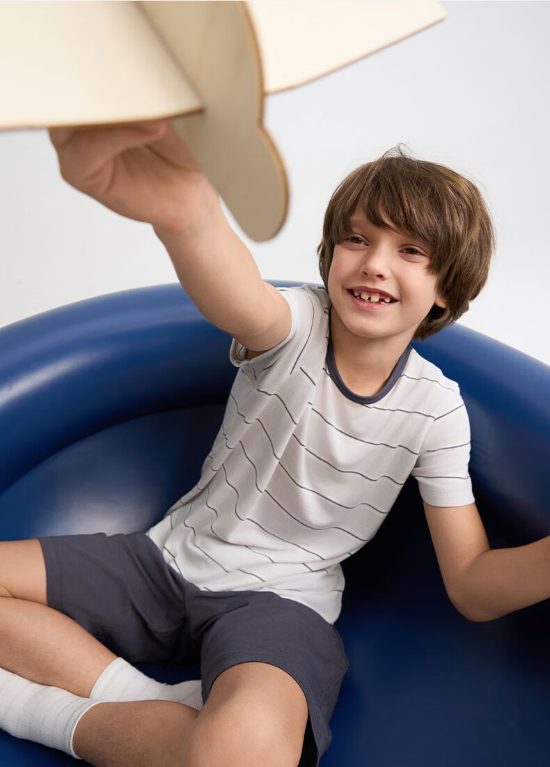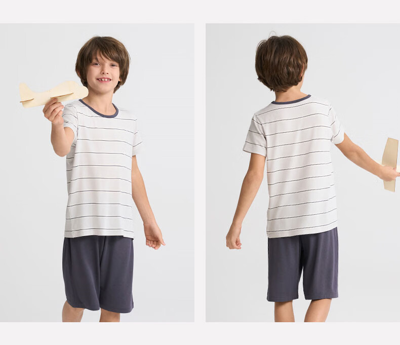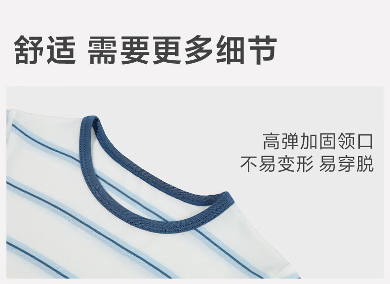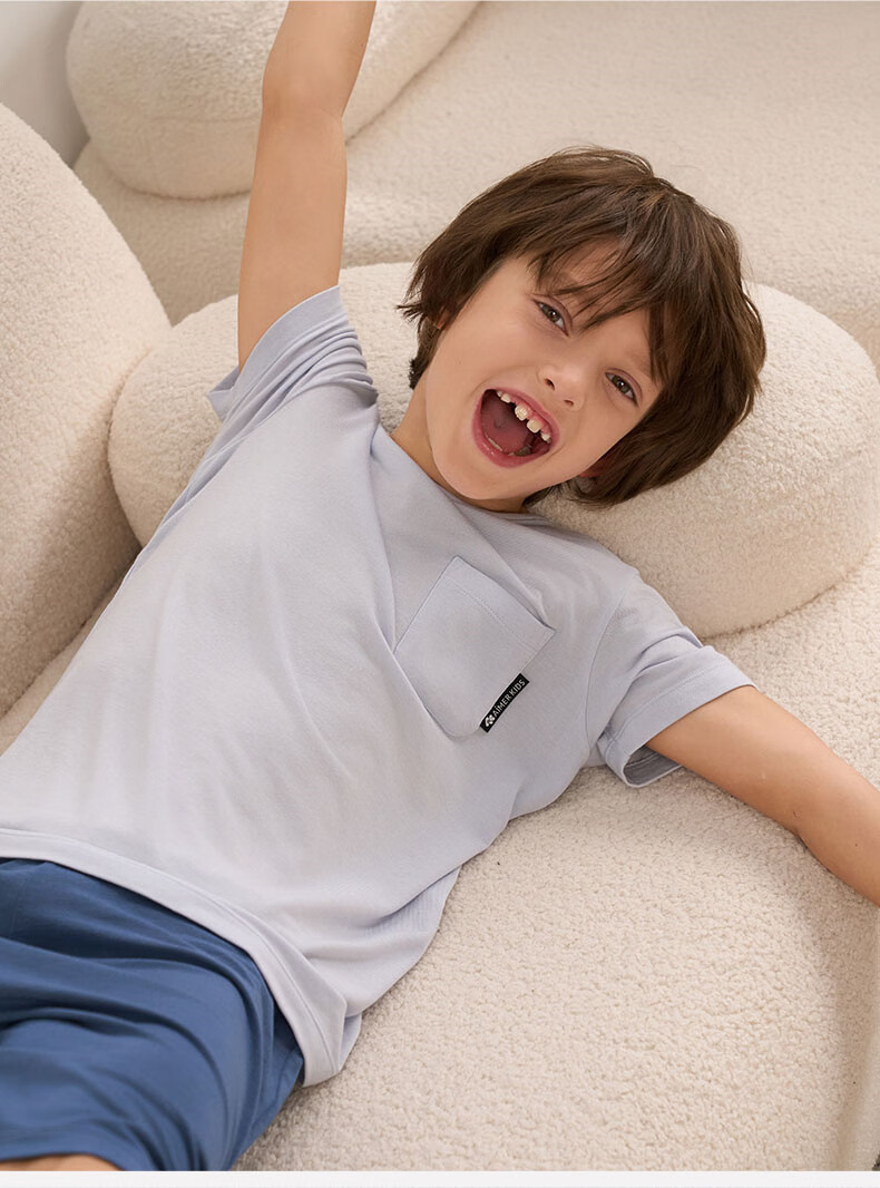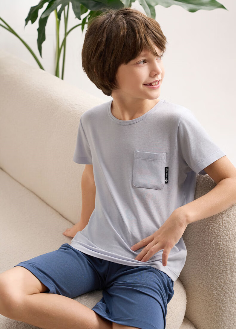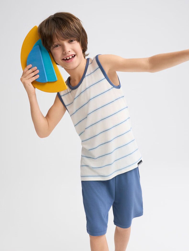 爱慕儿童春新品儿童家居服套装莫代尔男女童短袖上衣/背心五分裤睡衣t恤套 短袖套装-青蓝纹 150 (65-85斤)