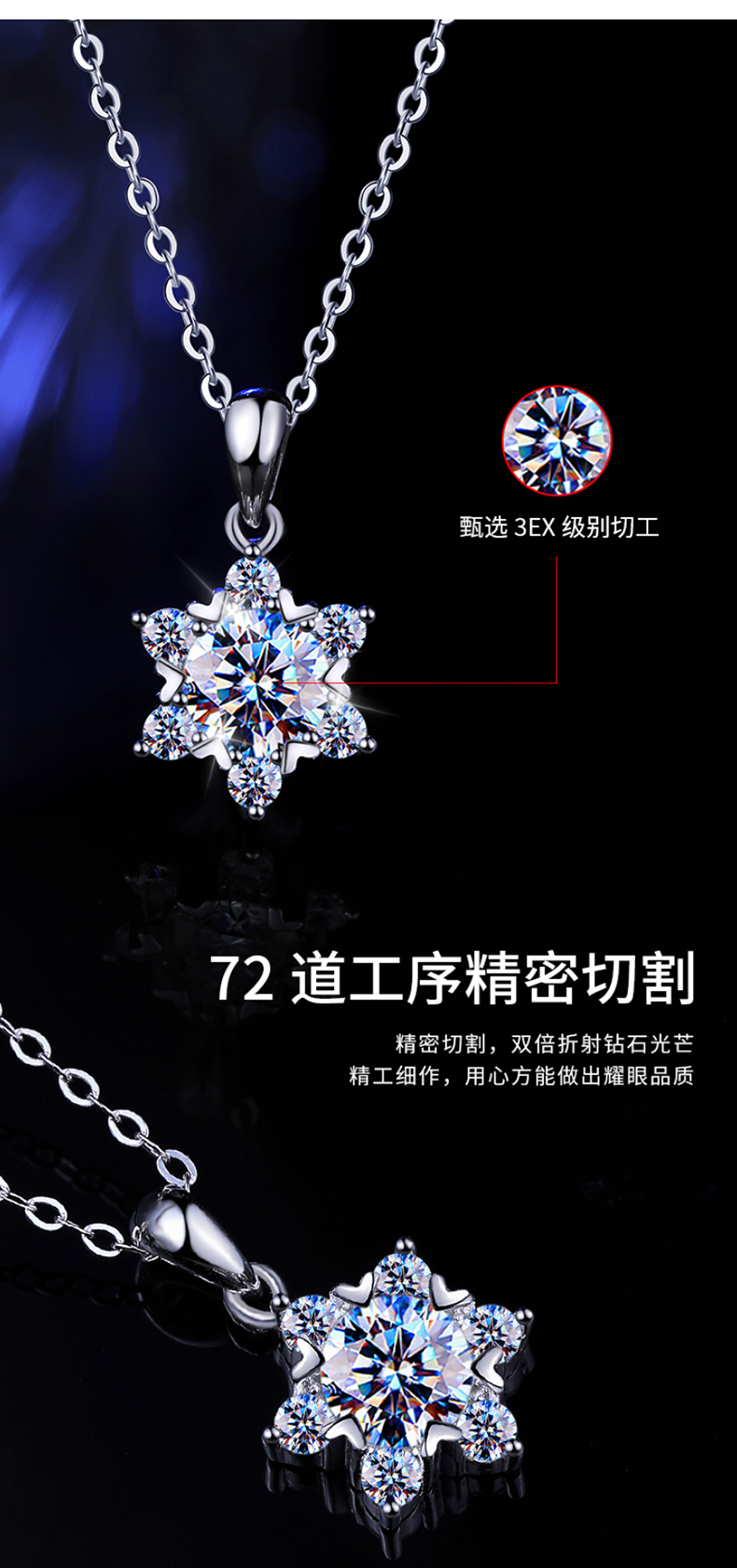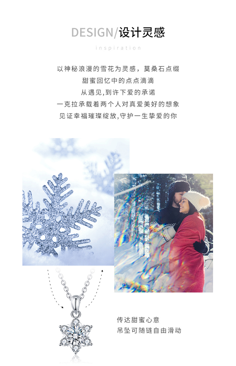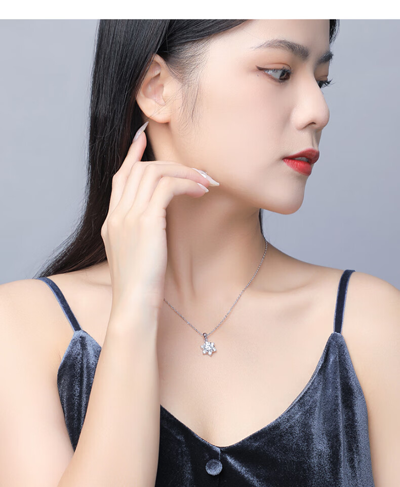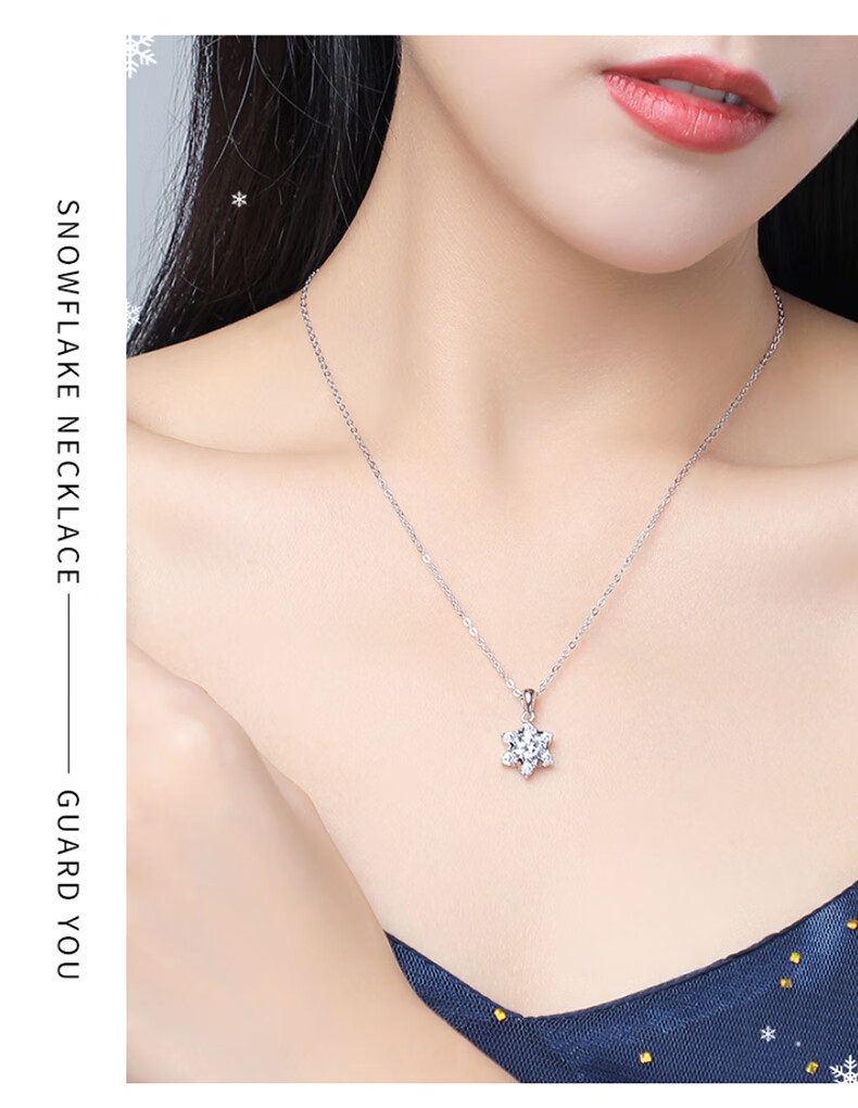 缔时尚六芒星银项链女士莫桑钻石雪花吊坠38妇女女神节礼物送女友老婆 XL010 雪花莫桑钻项链 1克拉