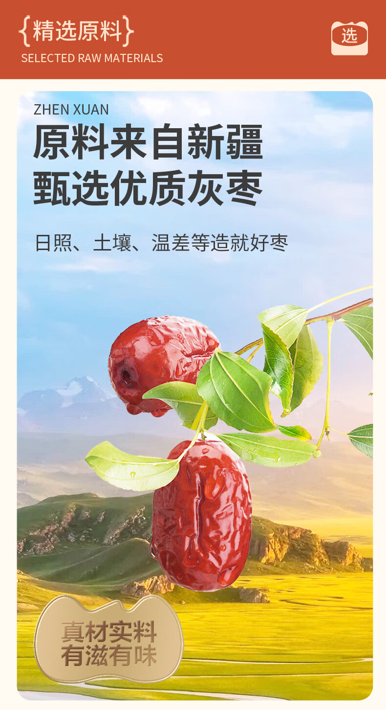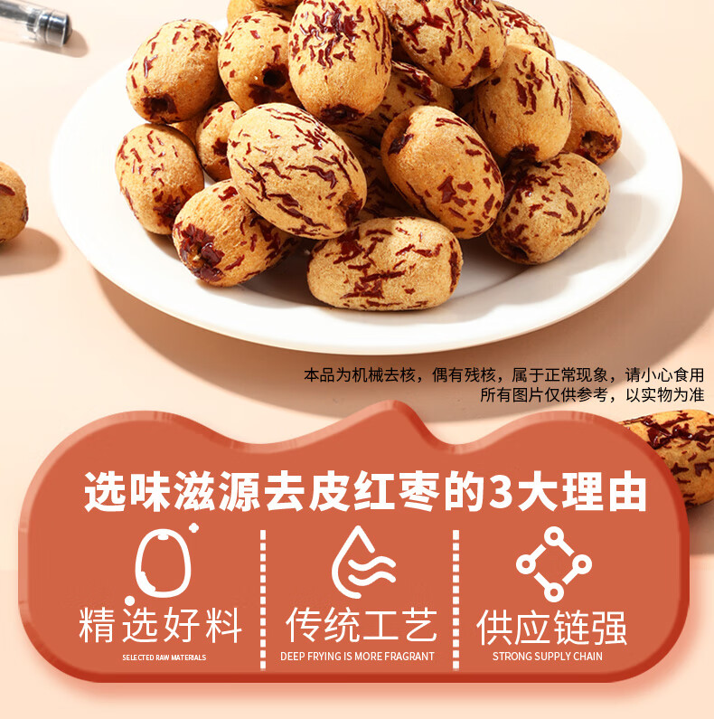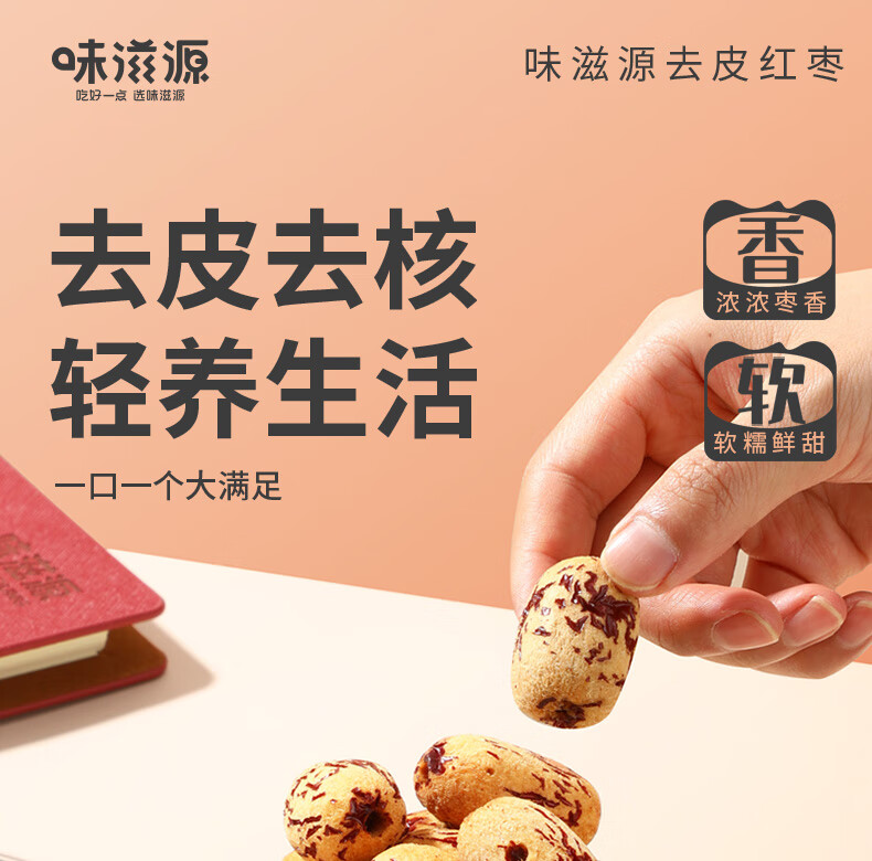 味滋源去皮去核灰枣新疆特产免洗即食脱皮红枣无核营养健康孕妇儿童零食 去皮红枣500g*1袋