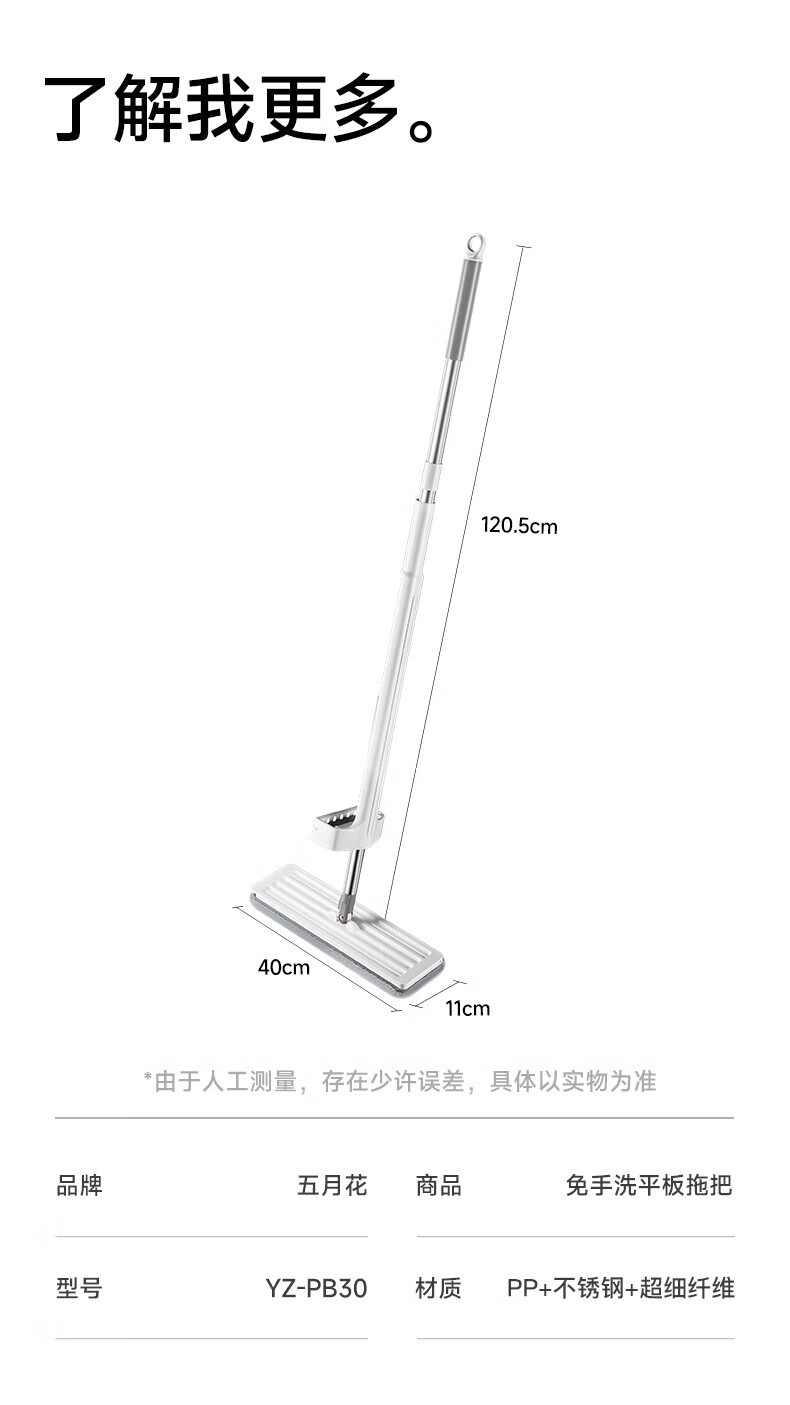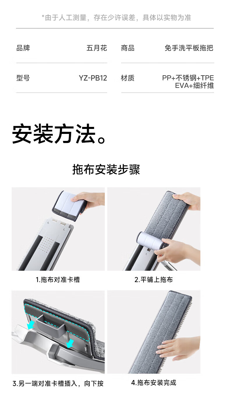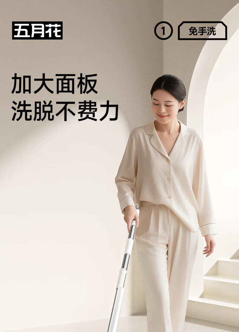 五月花平板拖把免手洗拖布2025懒人墩布家用除尘吸水地拖干湿两用拖把 【畅销款】38cm拖把+4块布