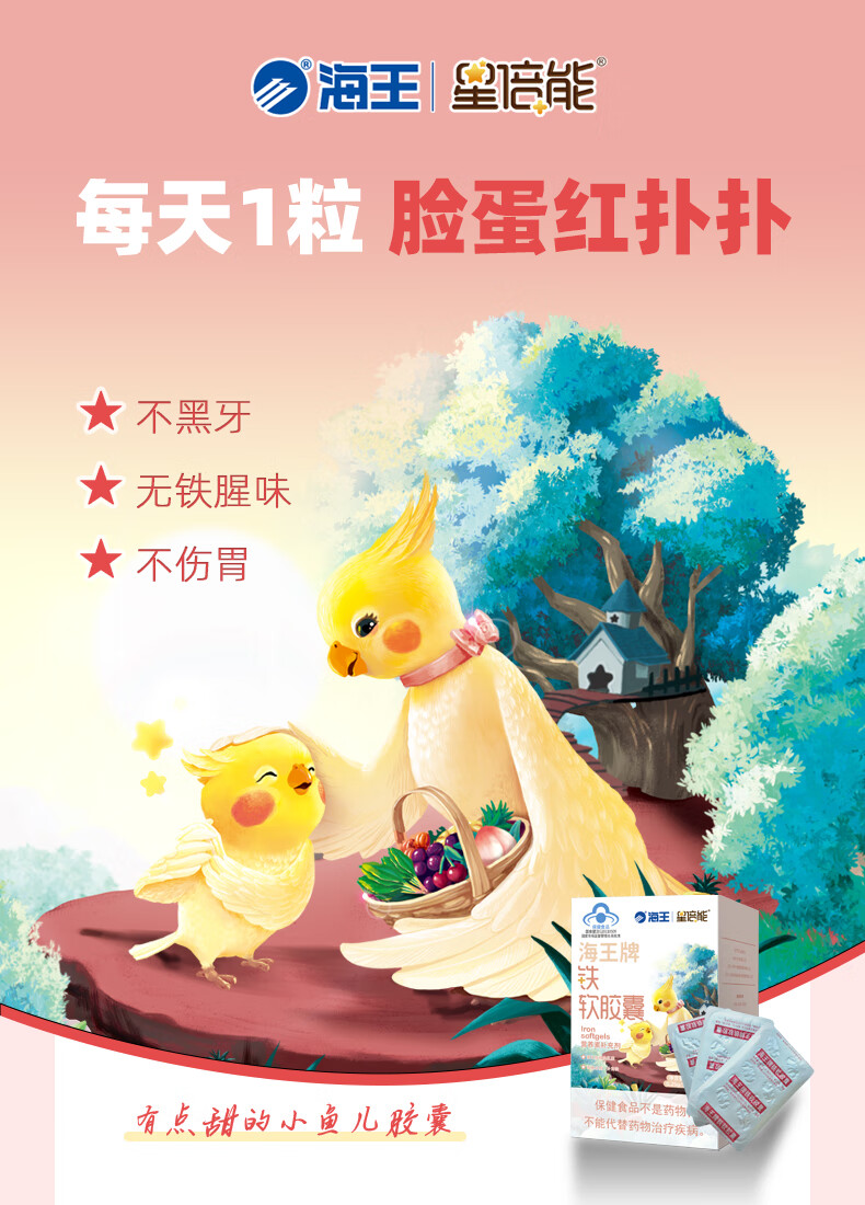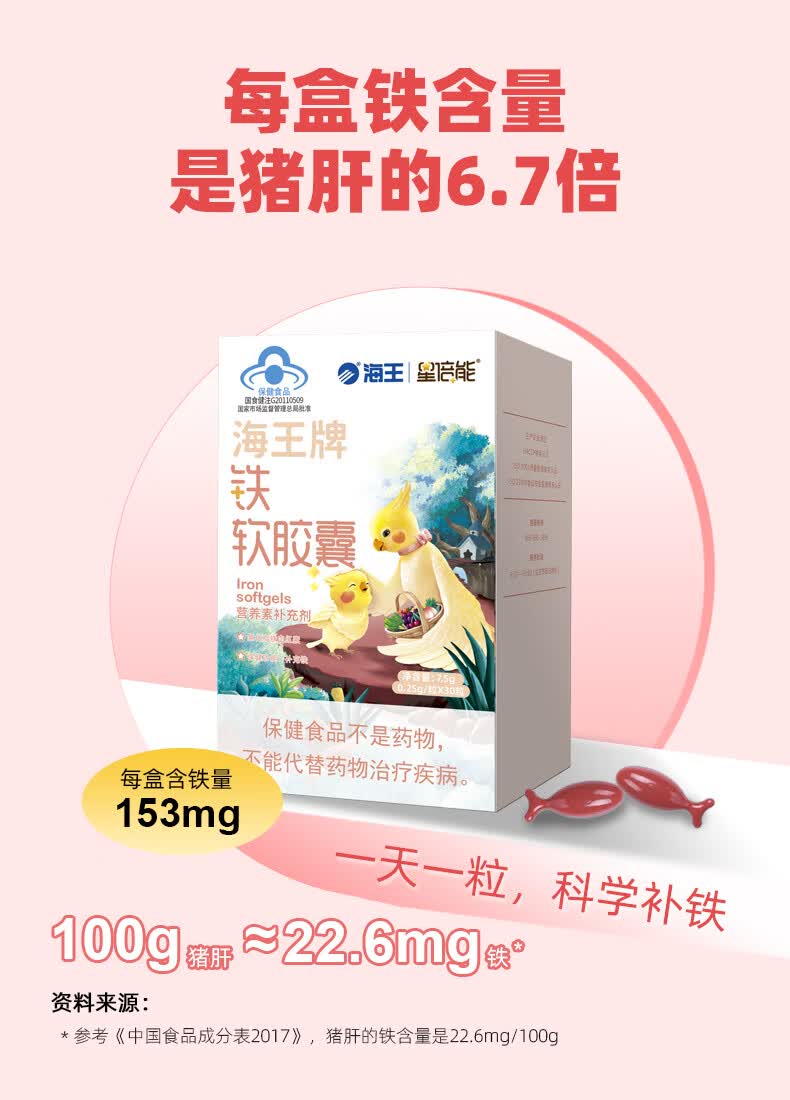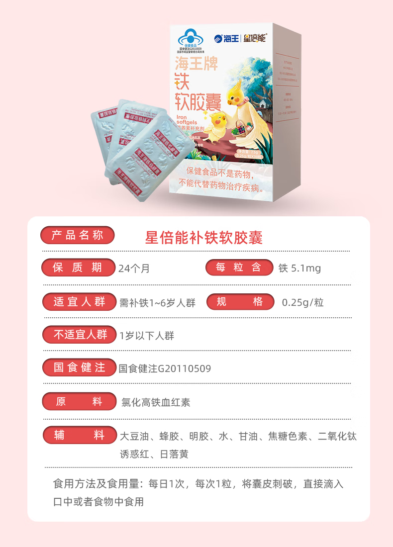 星倍能海王补铁软胶囊每粒含铁5.1mg氯化高铁血红素铁剂儿童成人 30粒*1盒