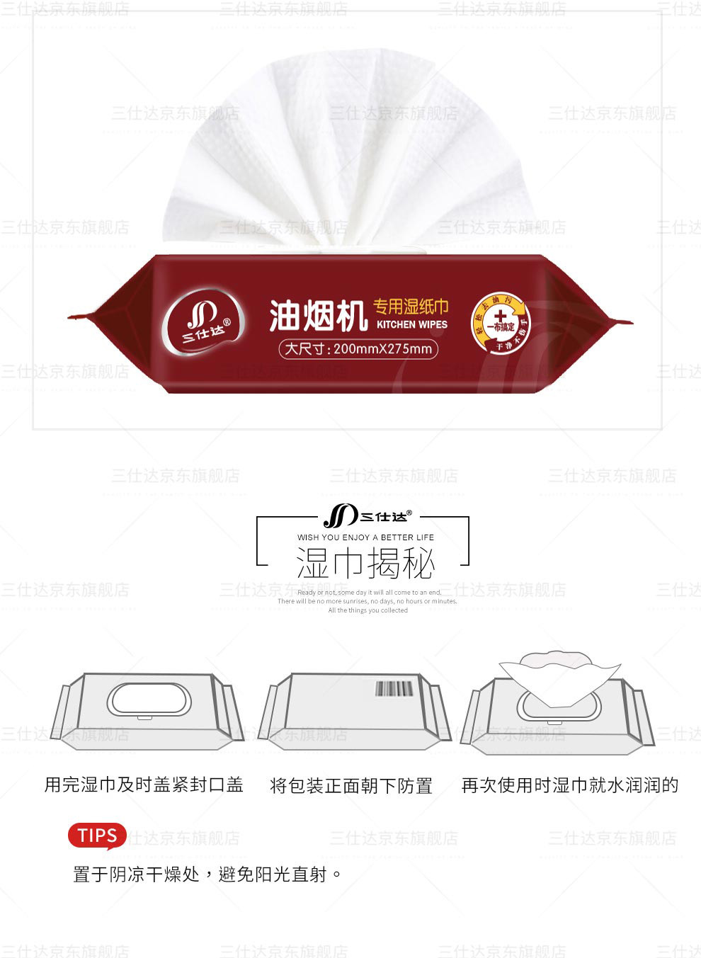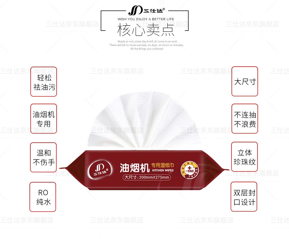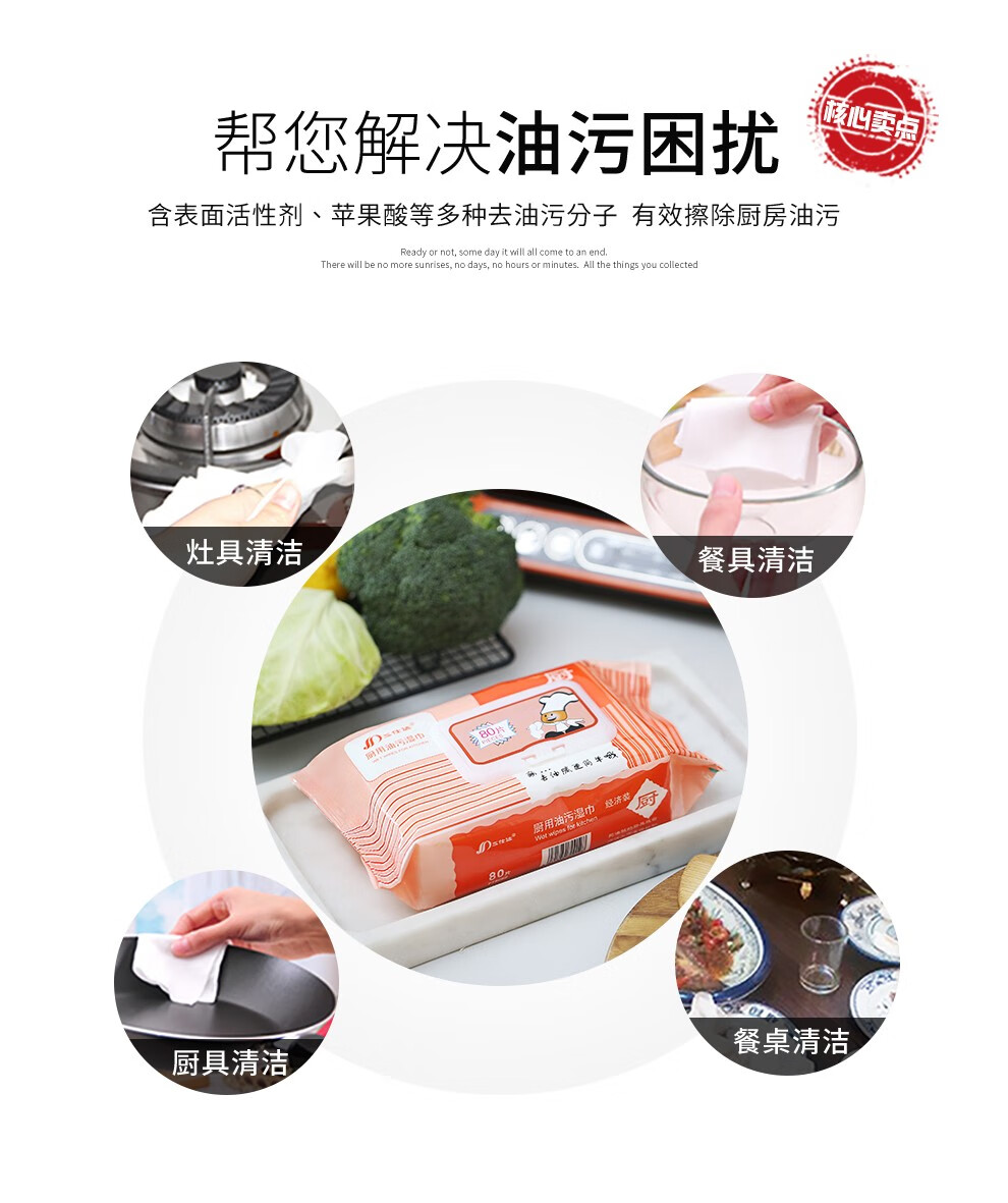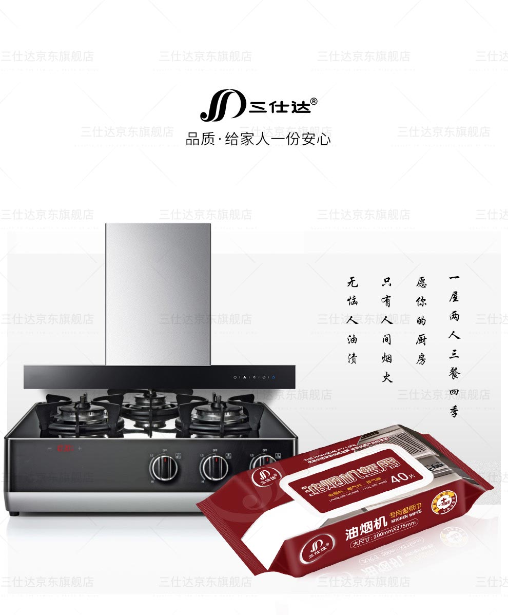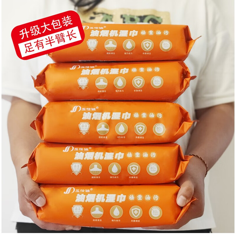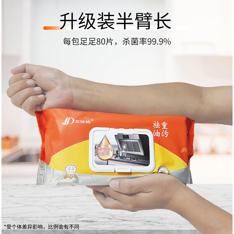 三仕达厨房湿巾去油污湿巾80片带盖大包清洁去油去污湿巾油烟机灶台抹布 厨房清洁湿巾【升级版】 1层 60片*4包