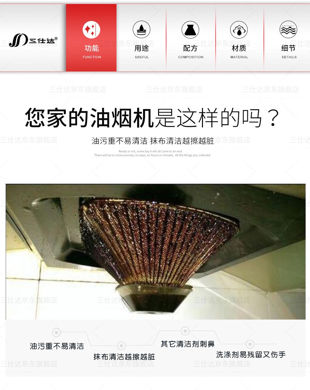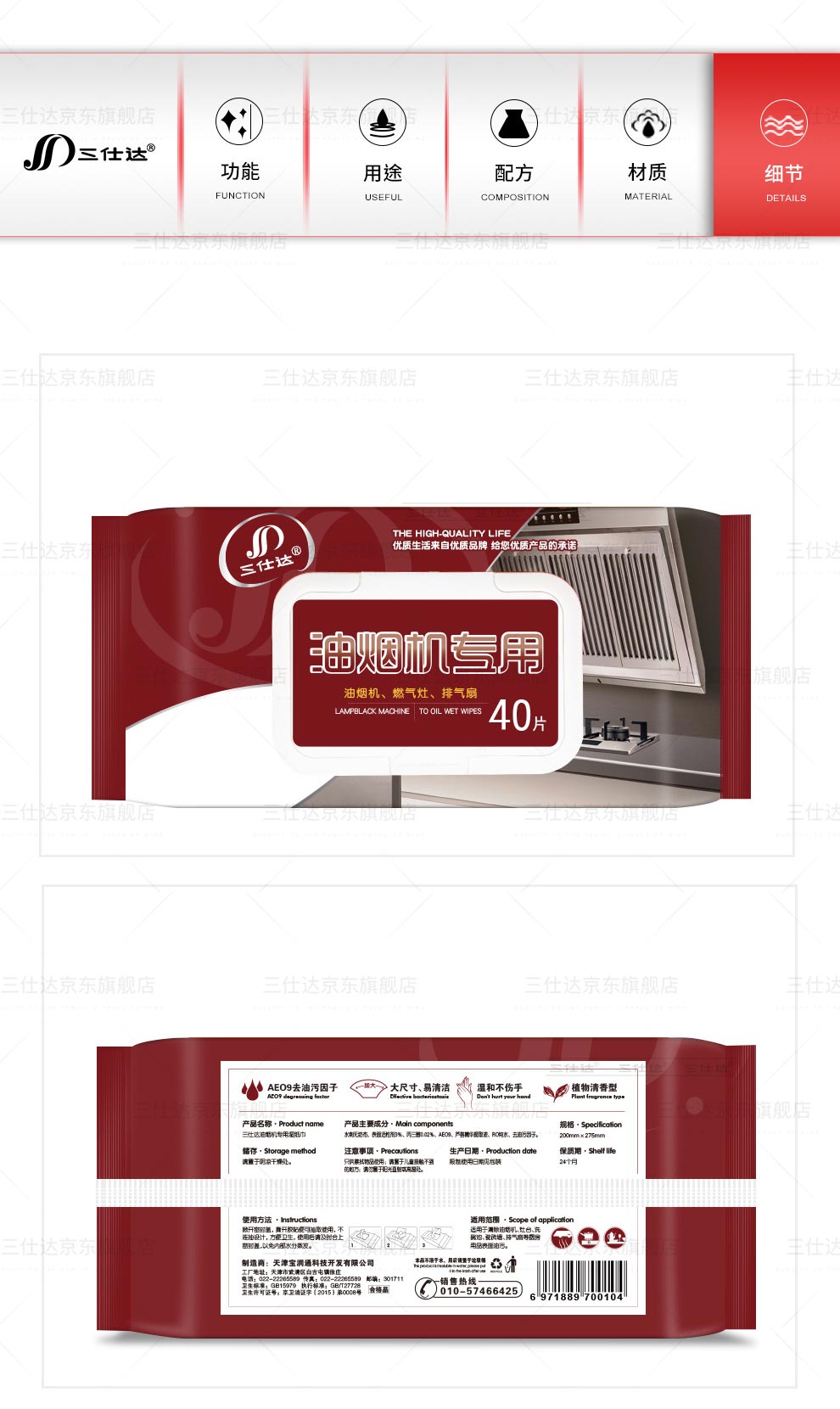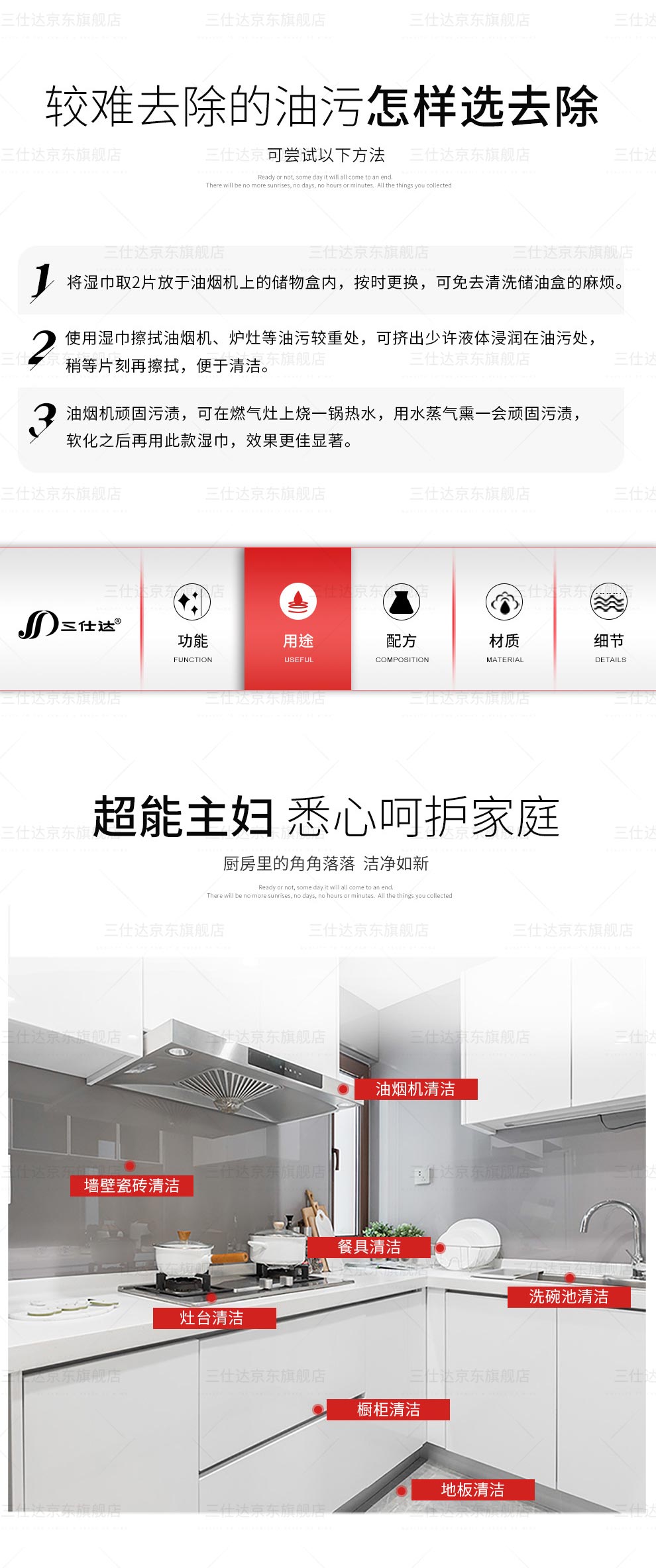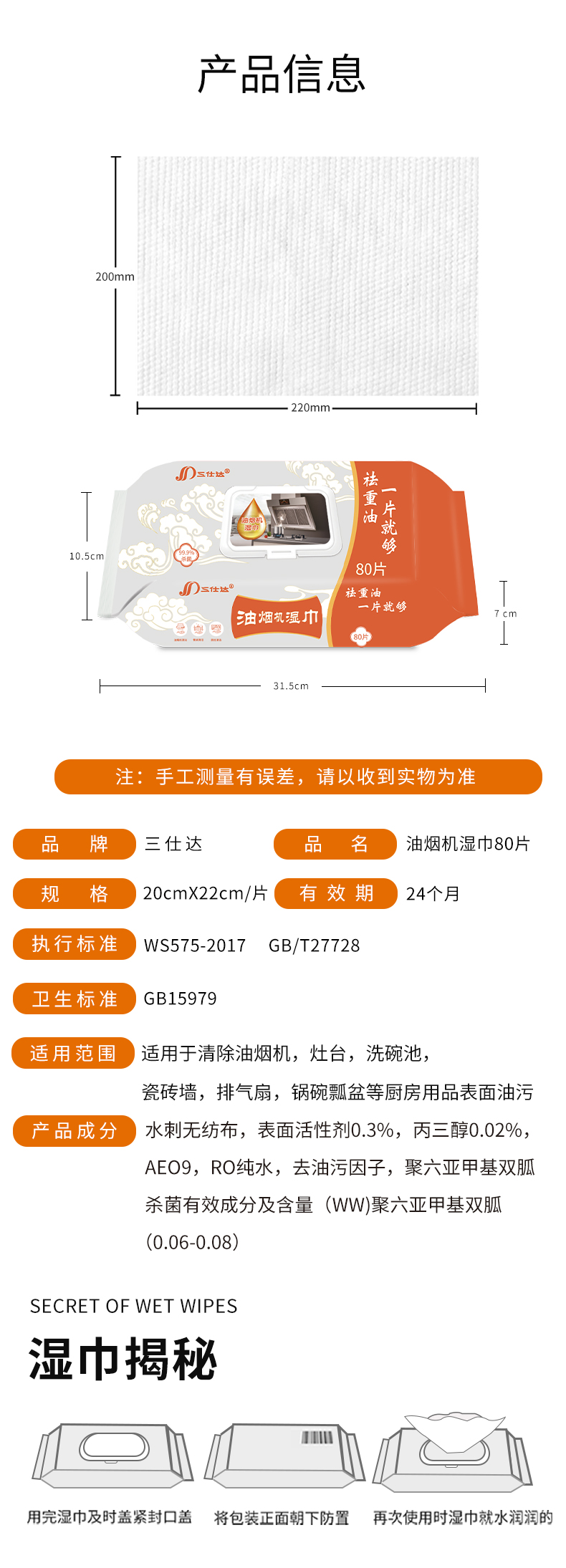 三仕达厨房湿巾去油污湿巾80片带盖大包清洁去油去污湿巾油烟机灶台抹布 厨房清洁湿巾【升级版】 1层 60片*4包