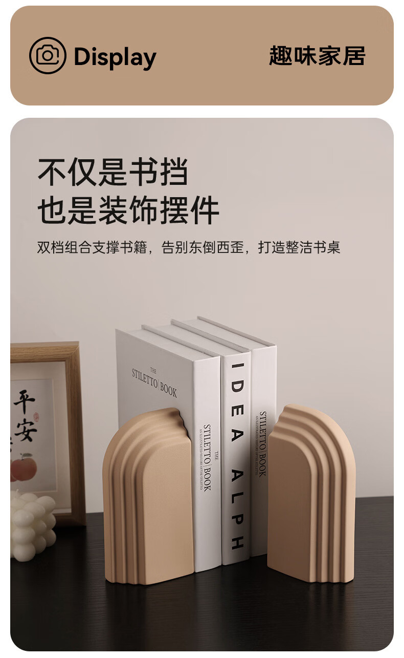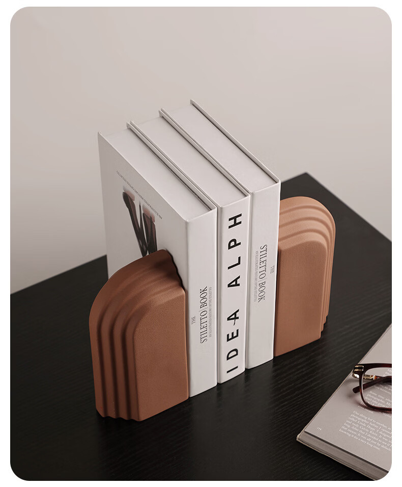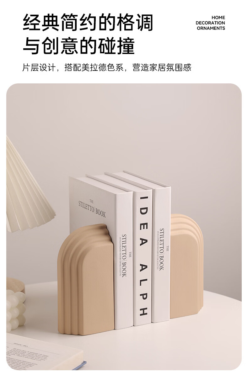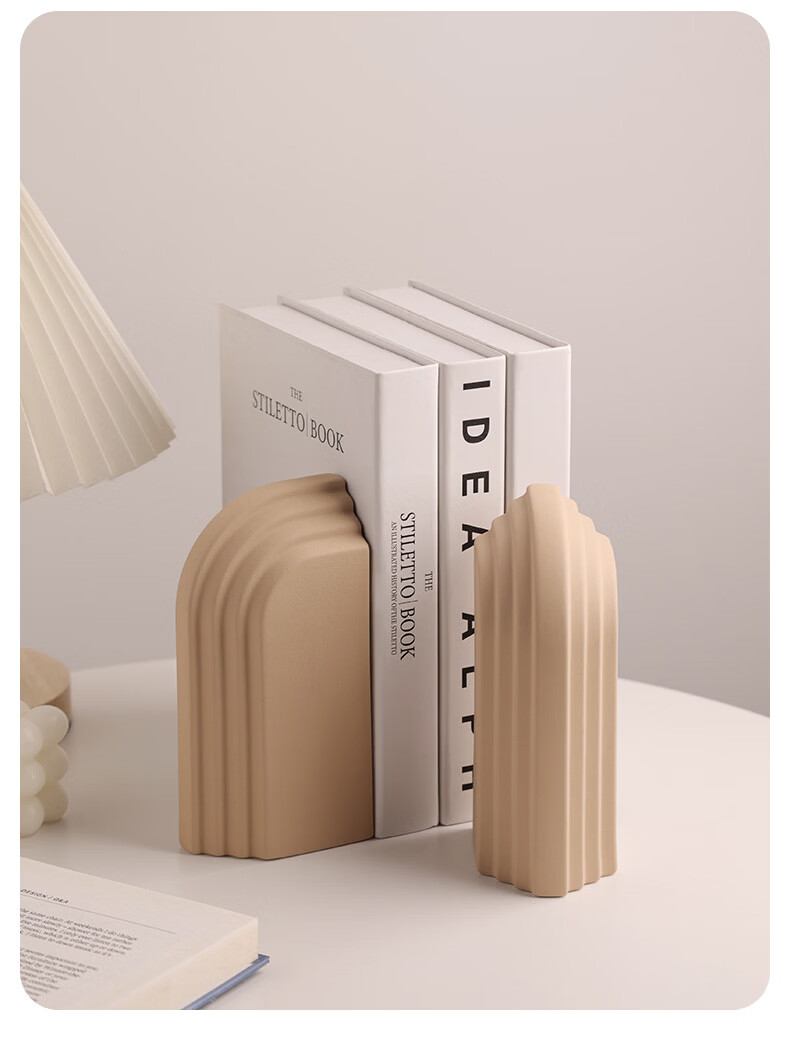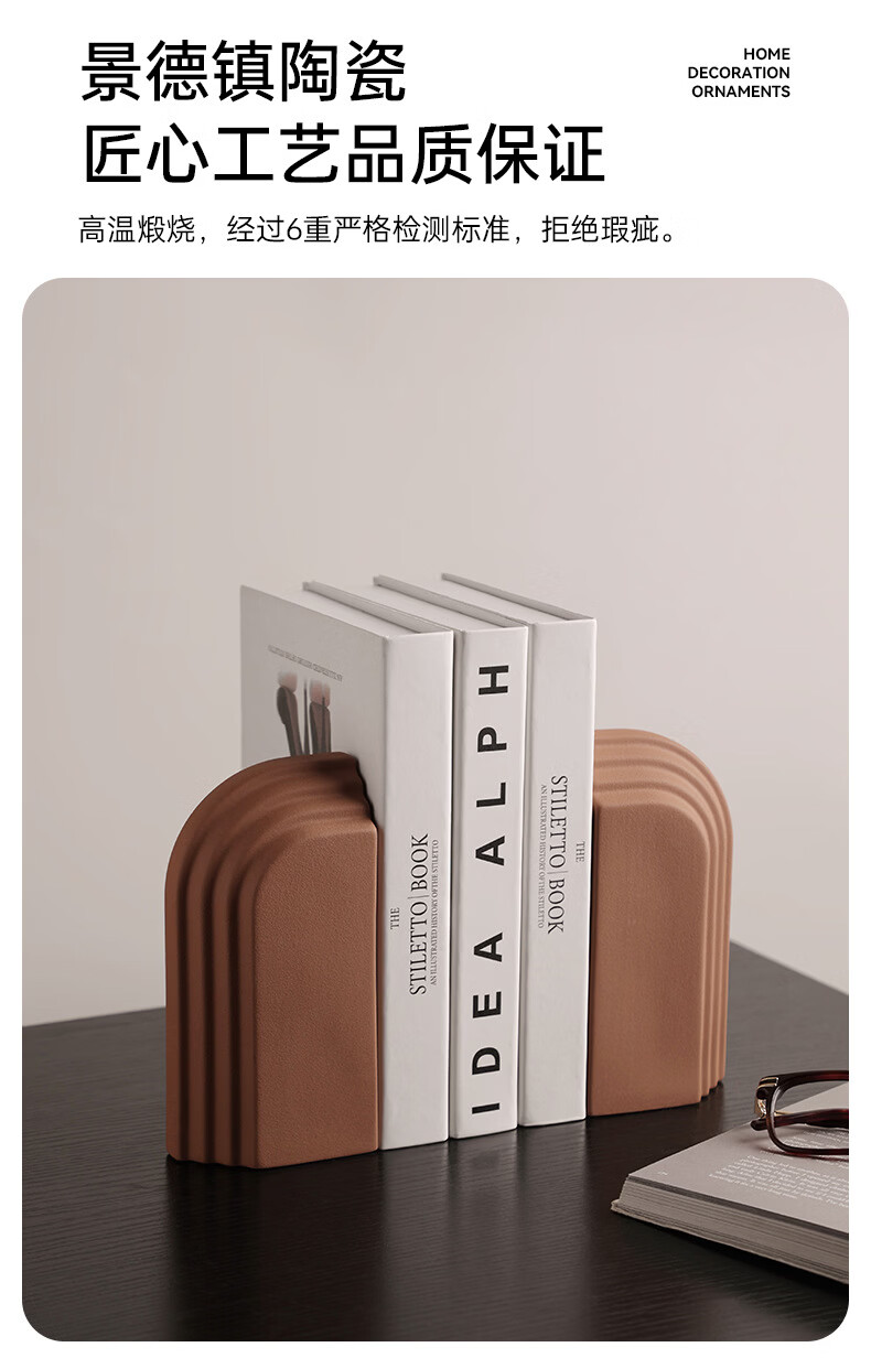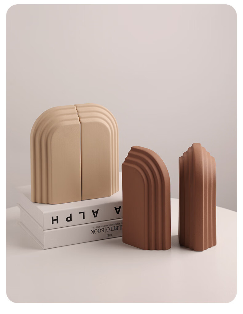 中掌柜电视柜酒柜装饰品摆件现代简约创意陶瓷书档别墅酒店样板间书靠 拱门层片书档磨砂粗粒小麦套装