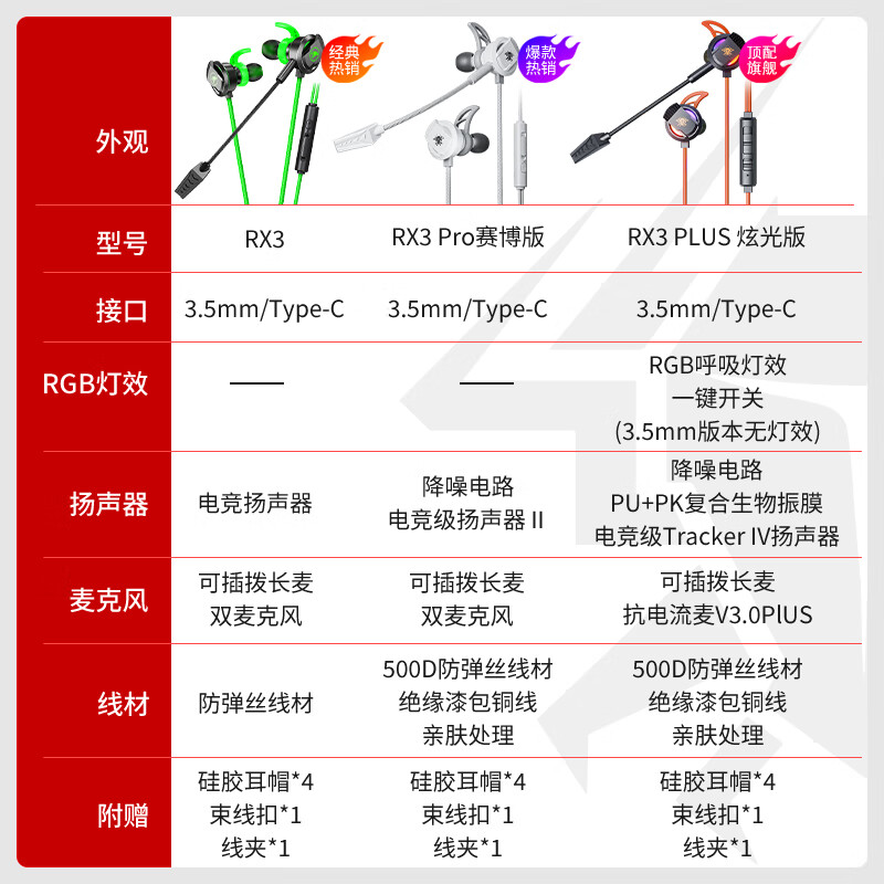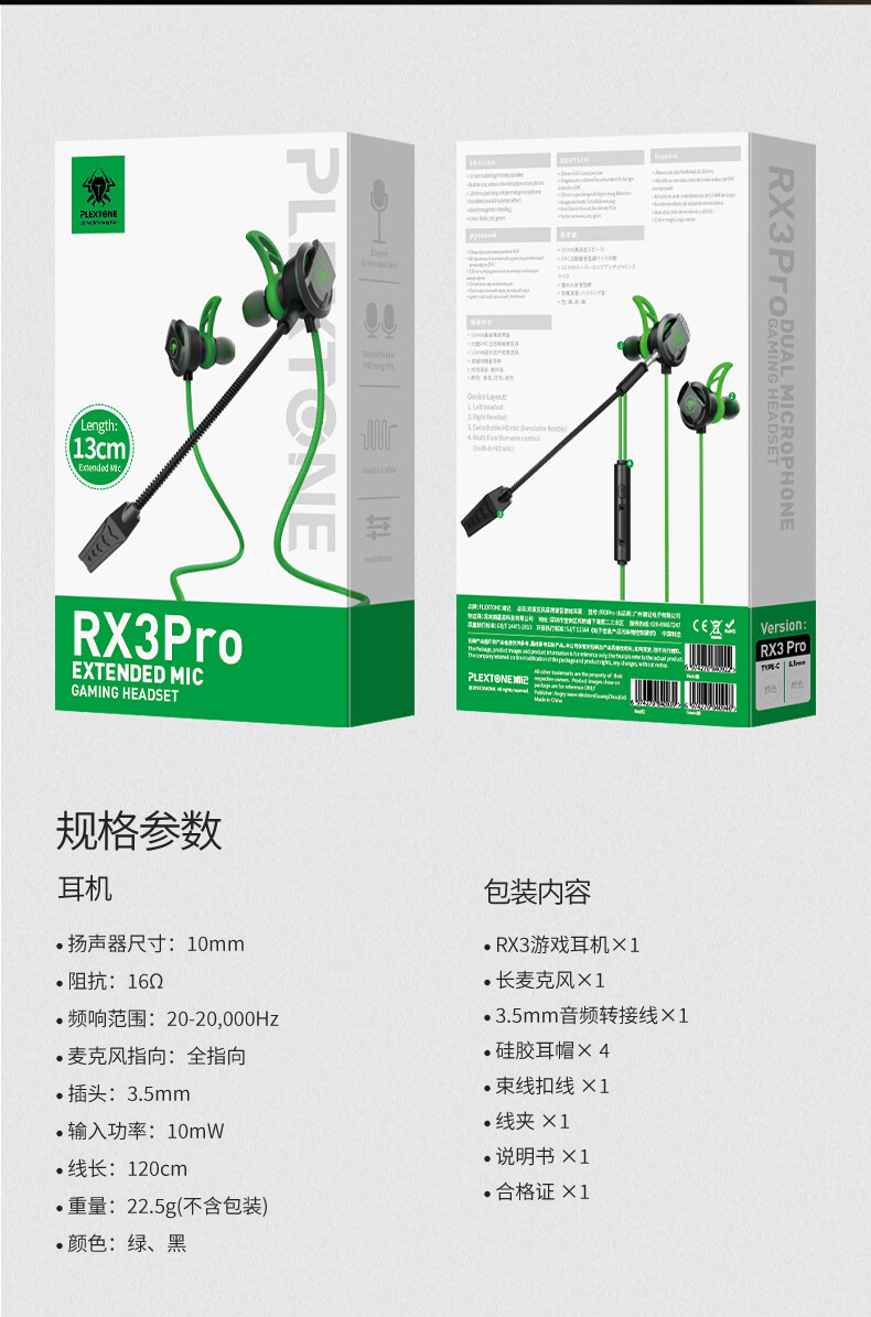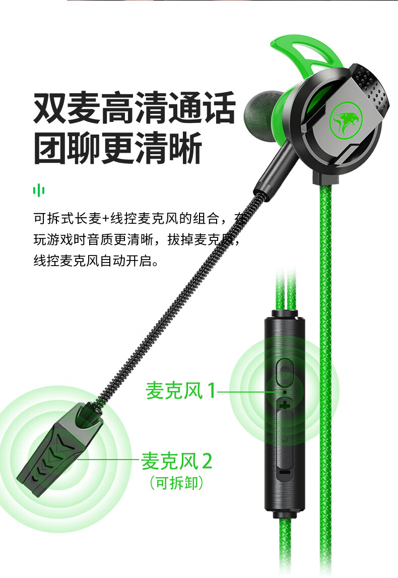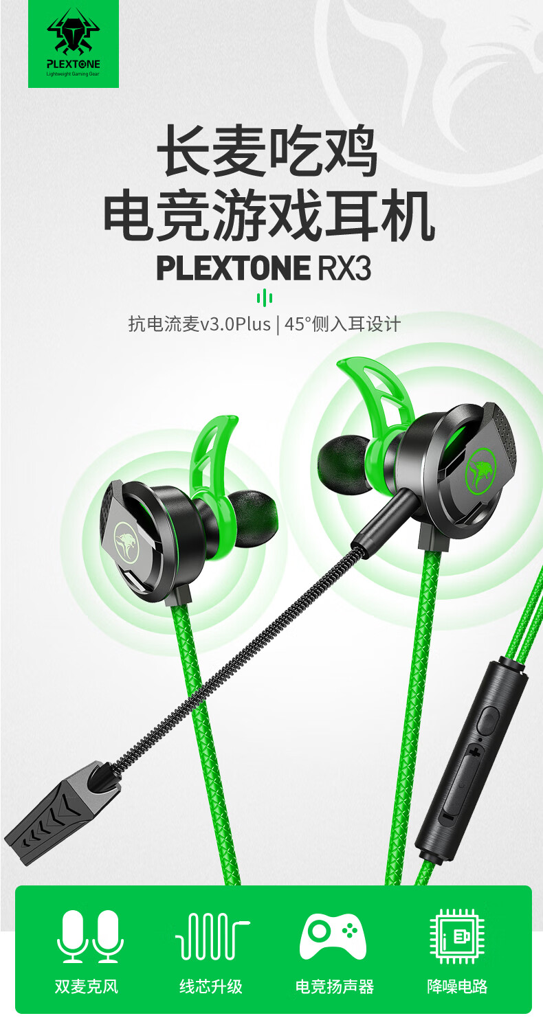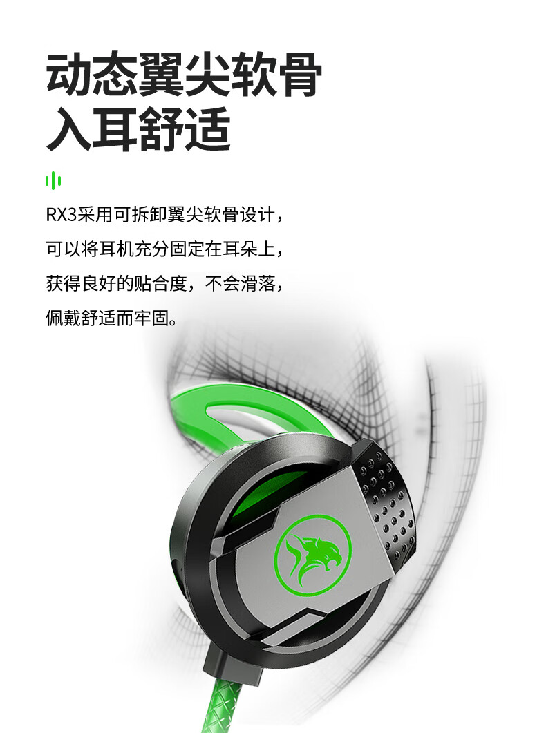 浦记RX3Pro游戏耳机Type-C手机平板入耳式有线带麦电竞吃鸡听声辨位 RX3PLUS电竞绿typec头RGB炫光