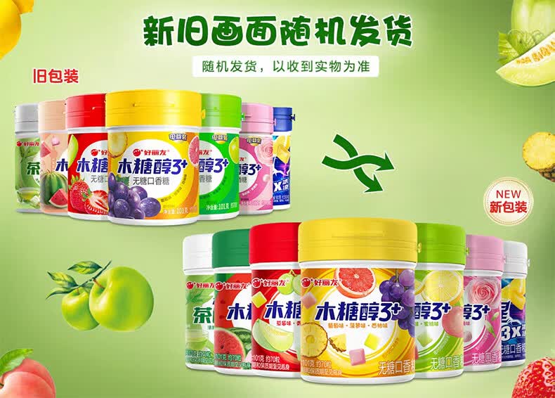 好丽友 无糖口香糖 草莓/青提/香瓜味 101g/瓶 休闲零食 清新 抽拉提取