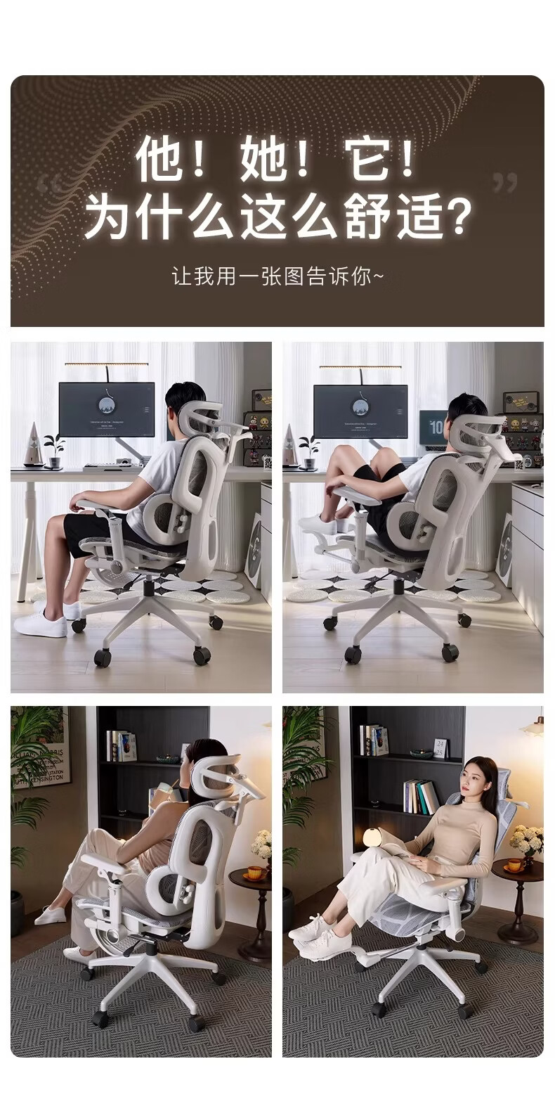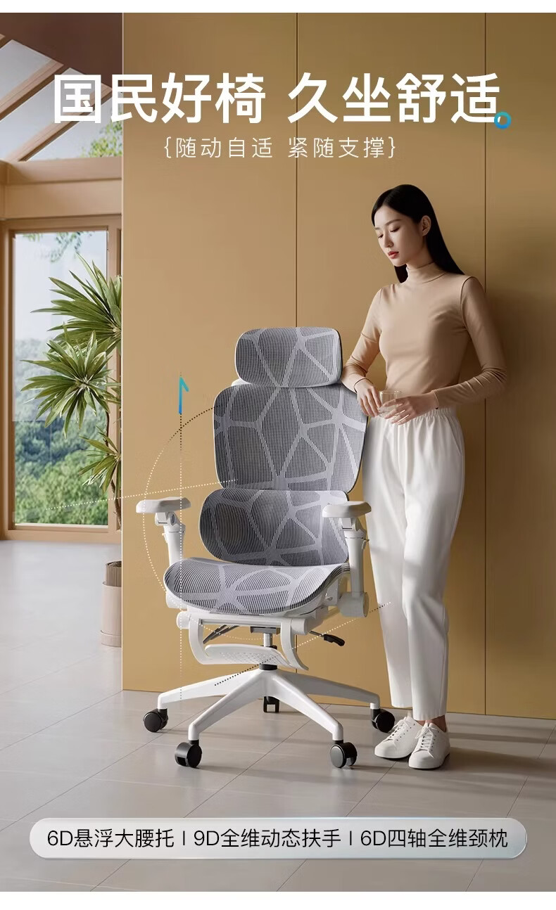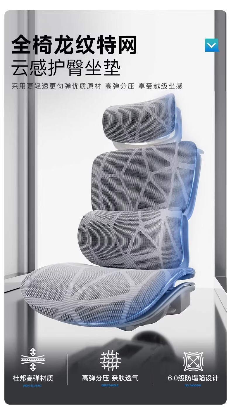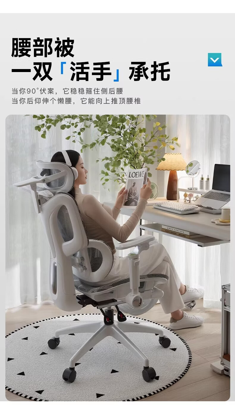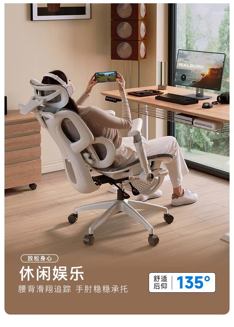 奈伴人体工学椅子电竞椅电脑椅可躺办公椅舒适久坐家用书桌椅子 乳胶海绵款-6D四弹簧单腰托-4D头枕-6D扶手 尼龙脚