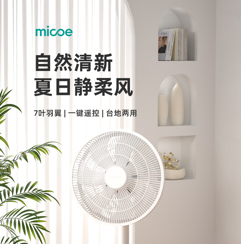 四季沐歌(MICOE)电风扇落地扇空气循环扇小风扇桌面台式风扇 台地两用低噪轻音节能省电广角送风 七叶遥控加大豪华款