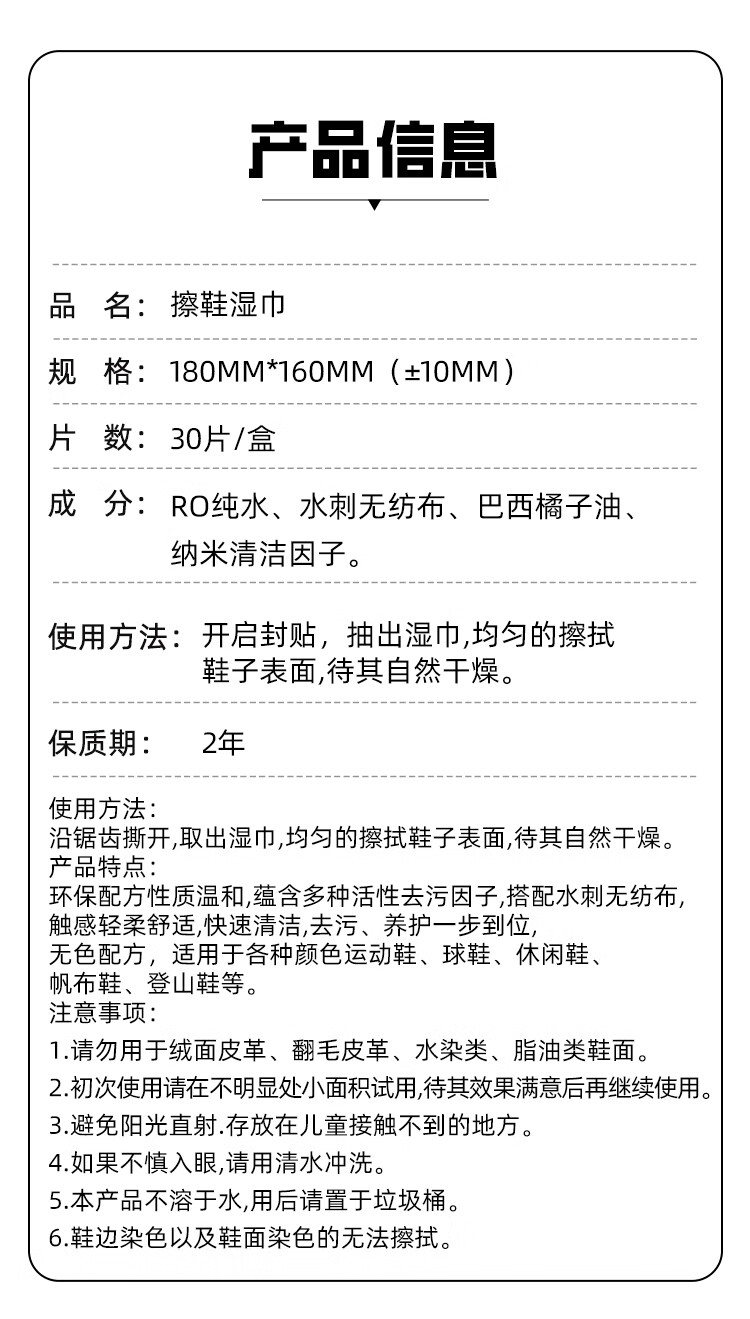 ZYUO日本一次性小白鞋擦鞋湿巾球鞋清洁去污擦鞋湿纸巾运动鞋免水洗 一盒【体验装】
