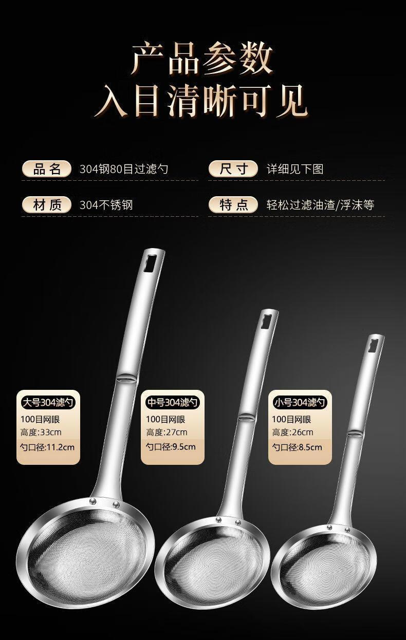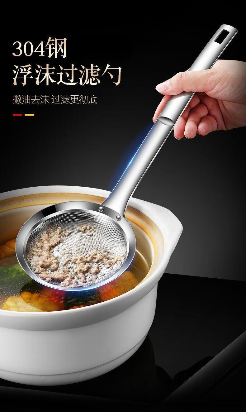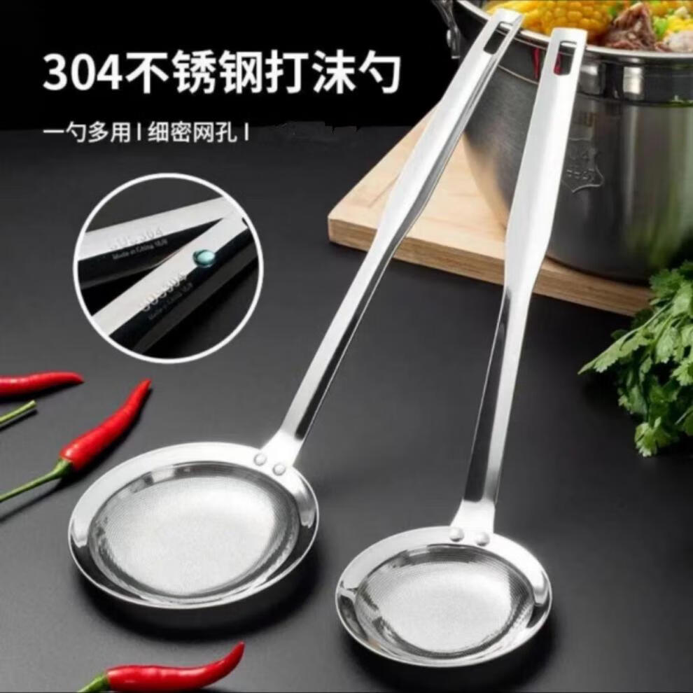 糜鸿(MIEHONE)漏勺打沫勺304不锈钢家用厨房撇油勺过滤网筛火锅撇浮沫隔油勺 中号+大号【升级特厚钢板冲孔】