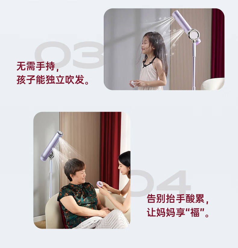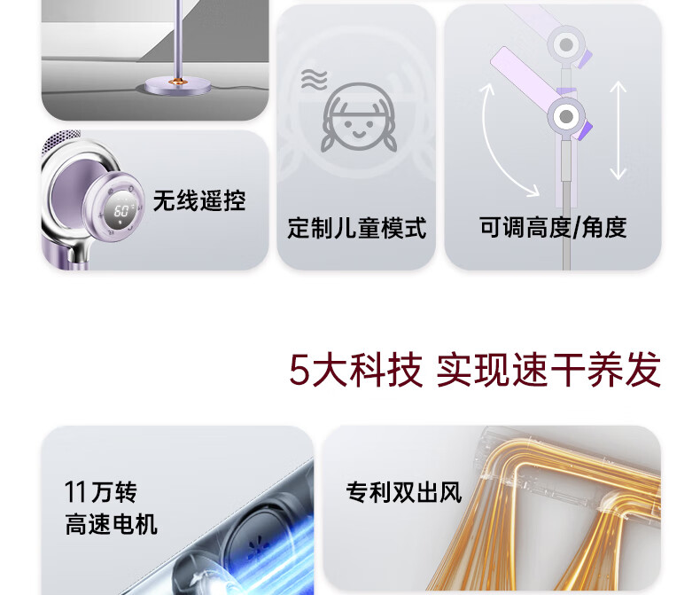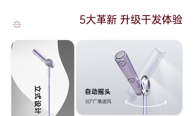 品仕乐立式吹风机新品高速升级自动摇头速干护发负离子懒人儿童家用落地免手持电吹风筒 暮山紫(ultra摇头版)