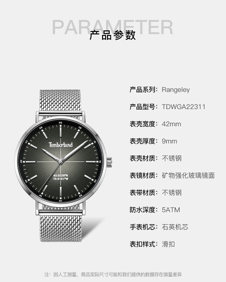 添柏岚Timberland手表男士大表盘男表石英手表腕表名表送男友生日礼物 TDWGG2231104