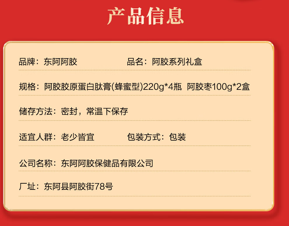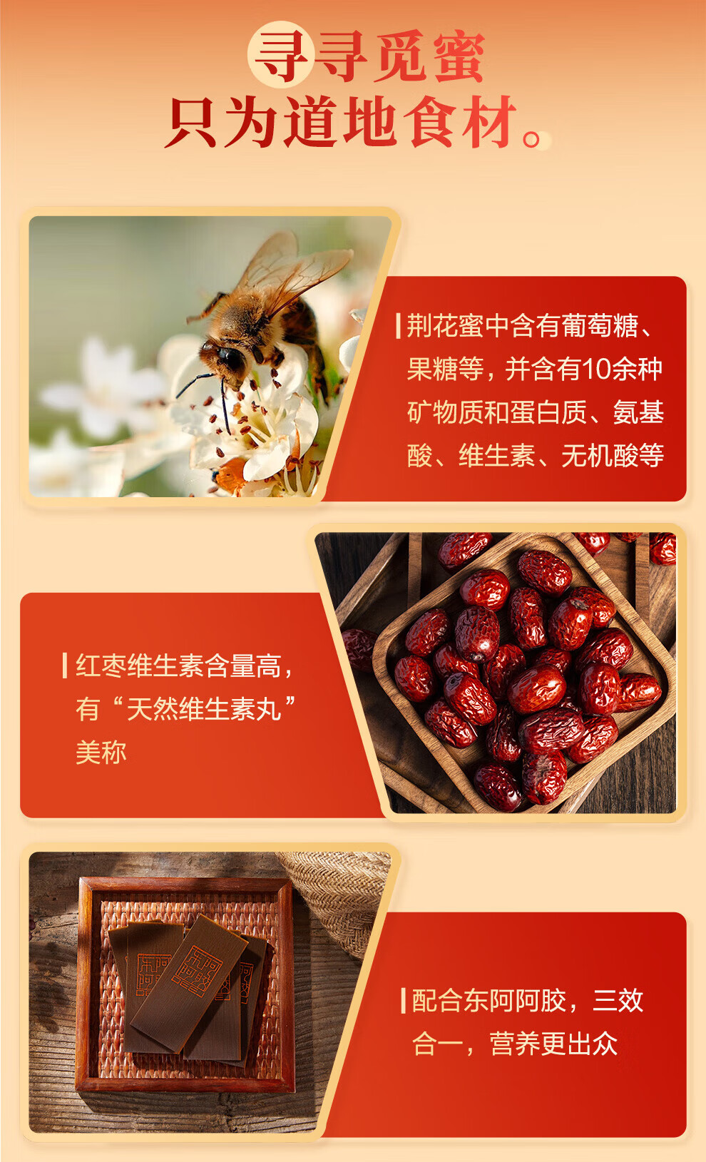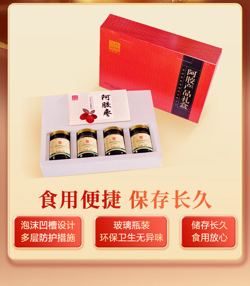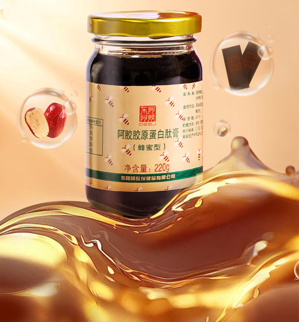 东阿阿胶官方授权阿胶礼盒胶原蛋白肽蜂蜜膏4瓶+阿胶枣2袋 送长辈礼品营养 阿胶蜂蜜膏 220g*4瓶 阿胶枣礼盒