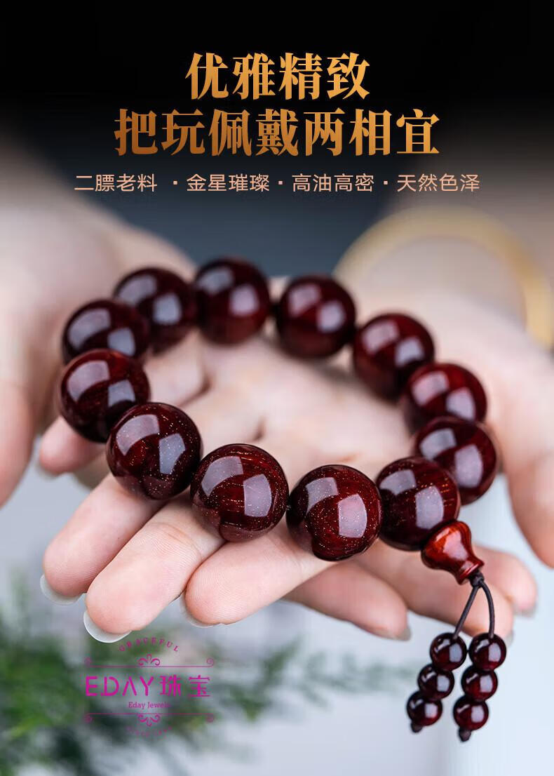 胖东来同款小叶紫檀满金星印度手串男女真品老料文玩檀香木佛珠念 沉水级6mm108颗女款