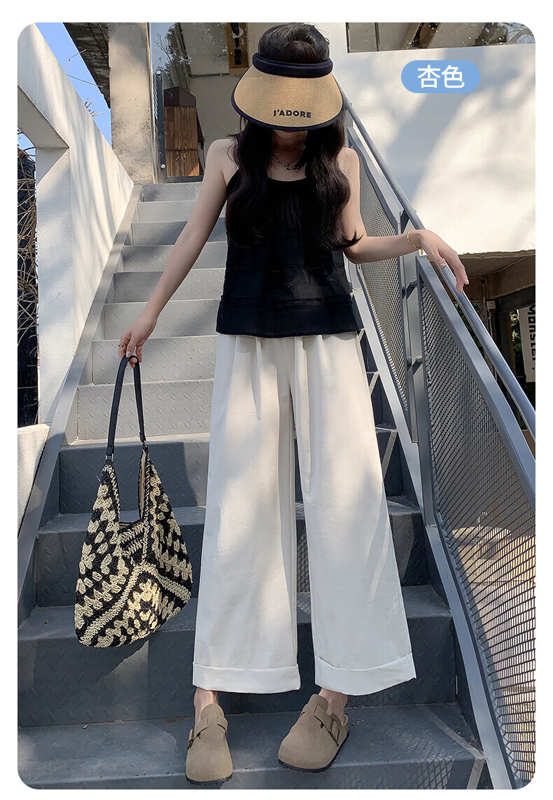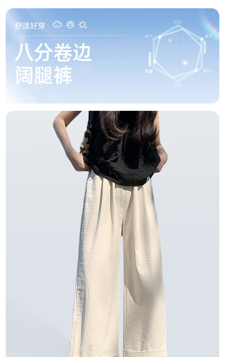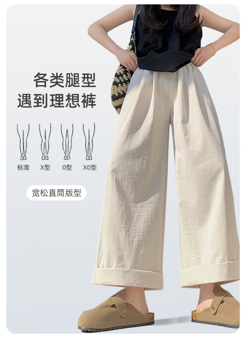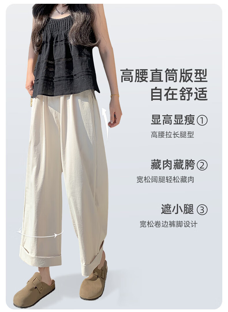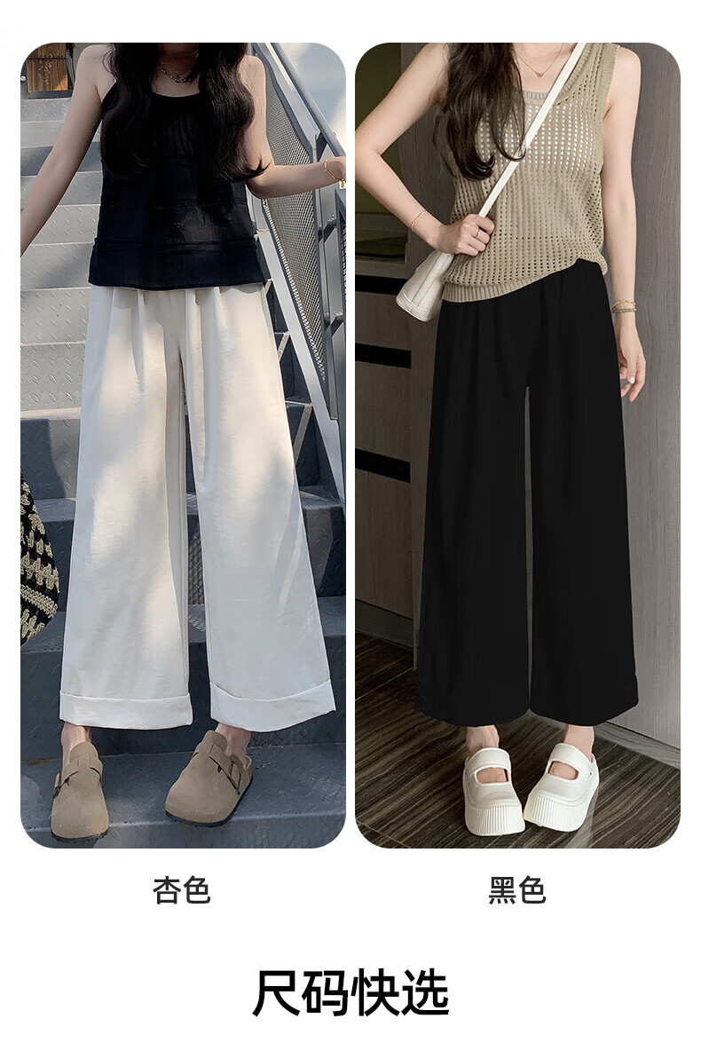 浪莎奶芙冰丝阔腿裤女夏季薄款宽松小个子高腰显瘦垂感八分休闲直筒裤 杏色 S 【推荐80-95斤】