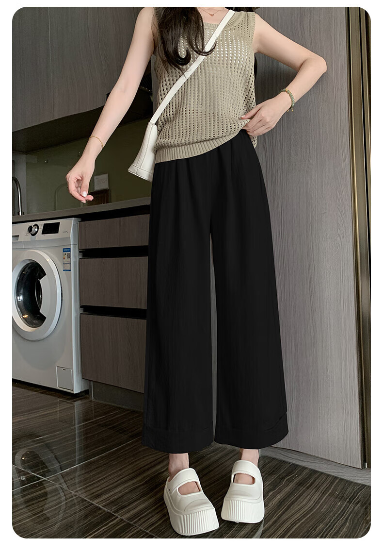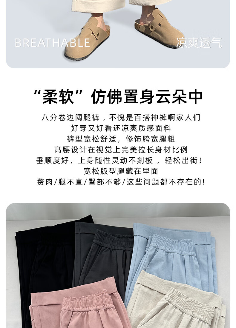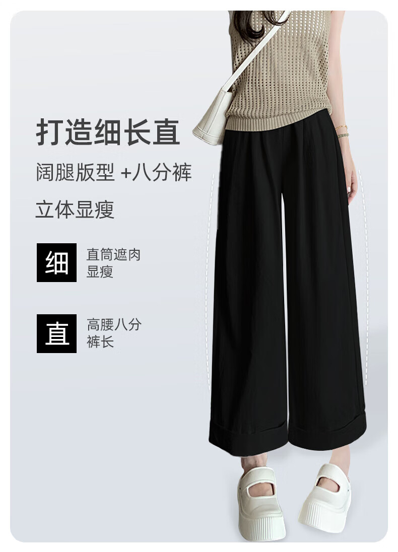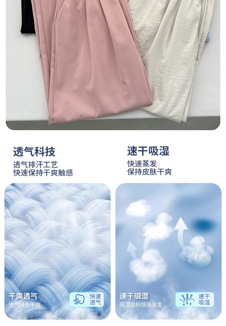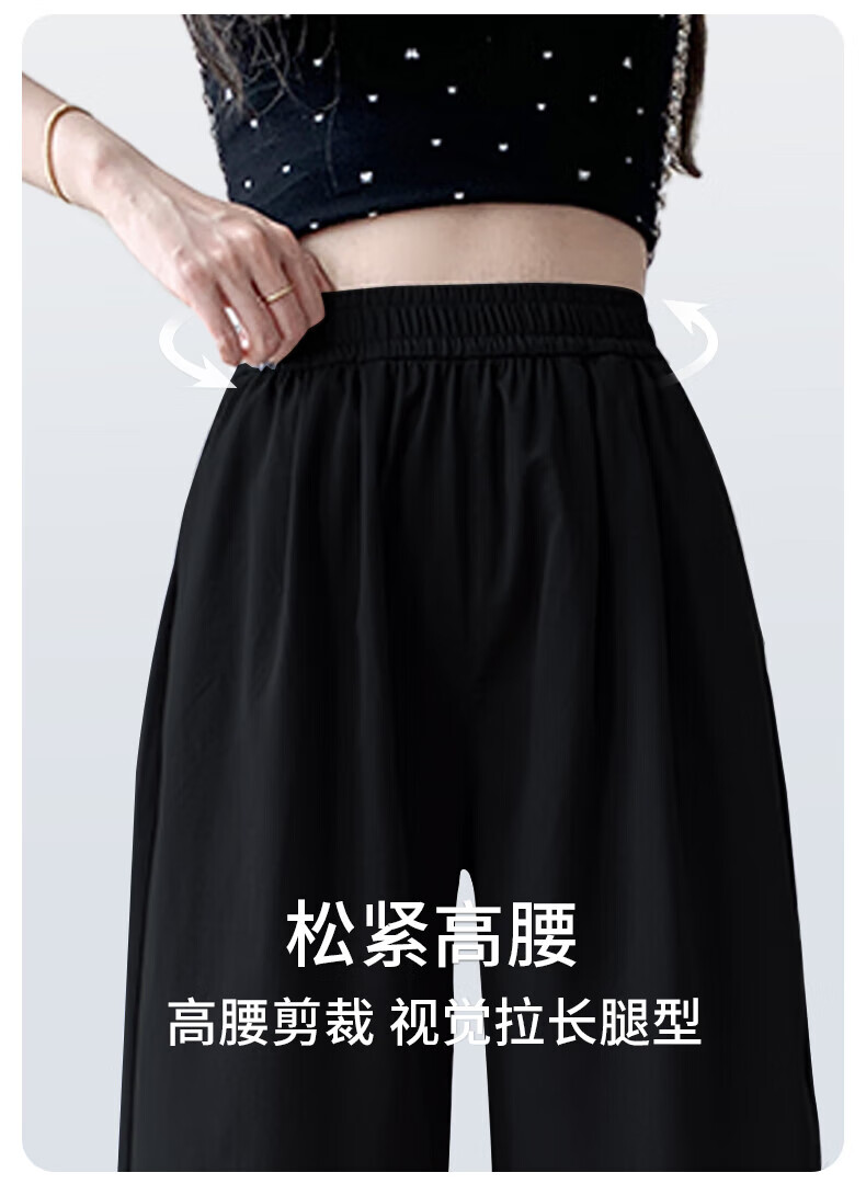 浪莎奶芙冰丝阔腿裤女夏季薄款宽松小个子高腰显瘦垂感八分休闲直筒裤 杏色 S 【推荐80-95斤】