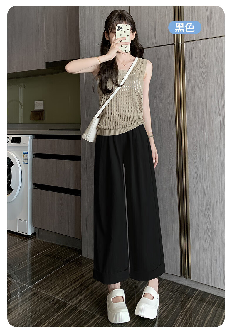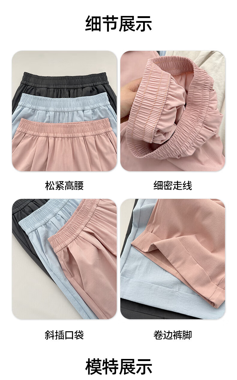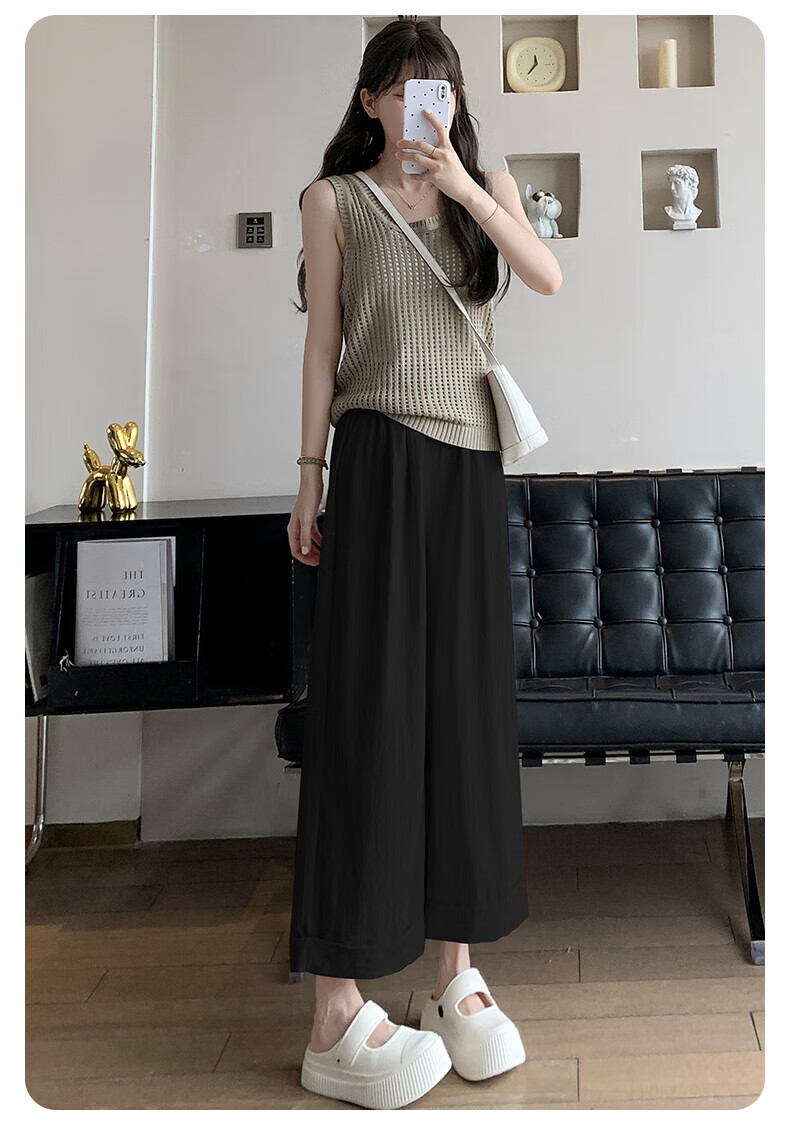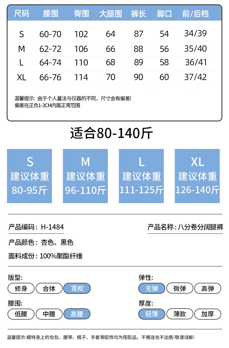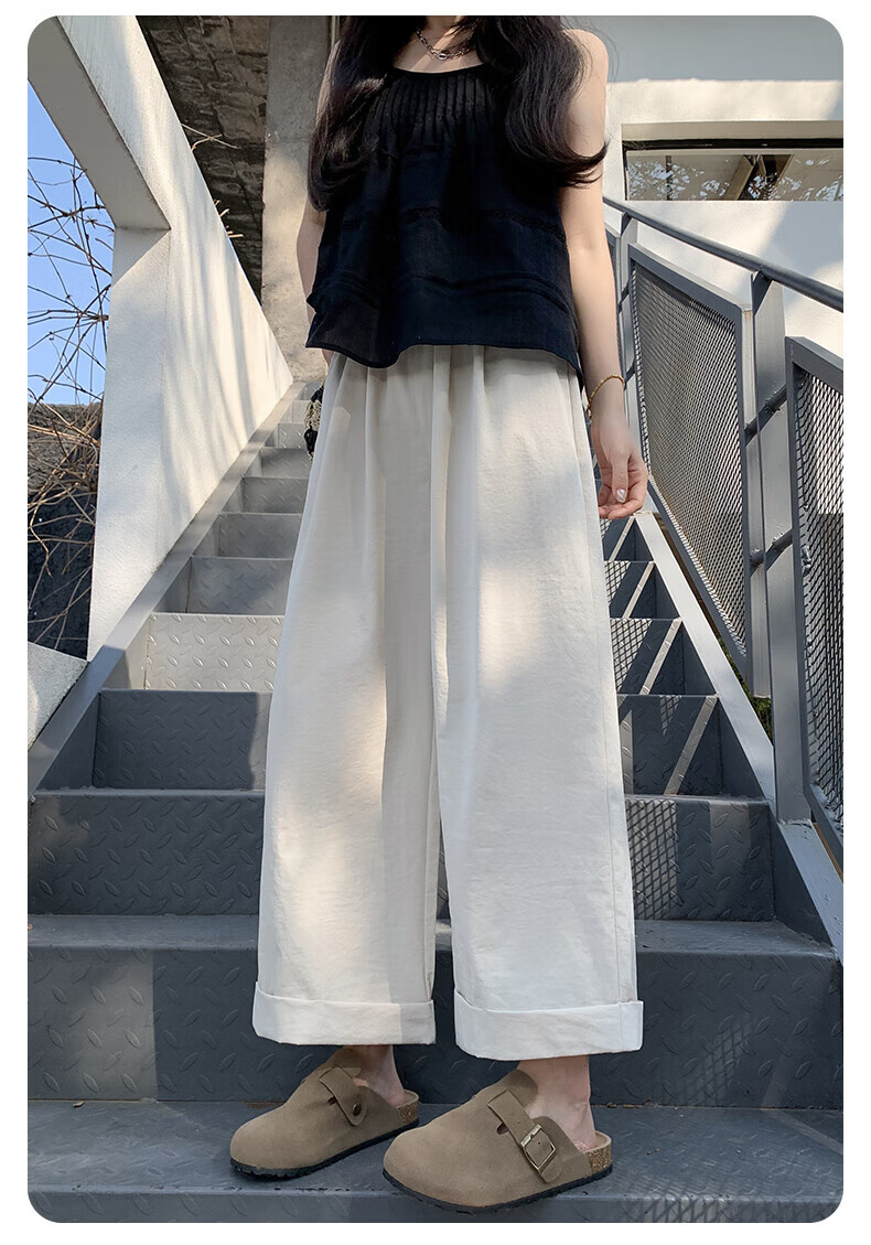 浪莎奶芙冰丝阔腿裤女夏季薄款宽松小个子高腰显瘦垂感八分休闲直筒裤 杏色 S 【推荐80-95斤】