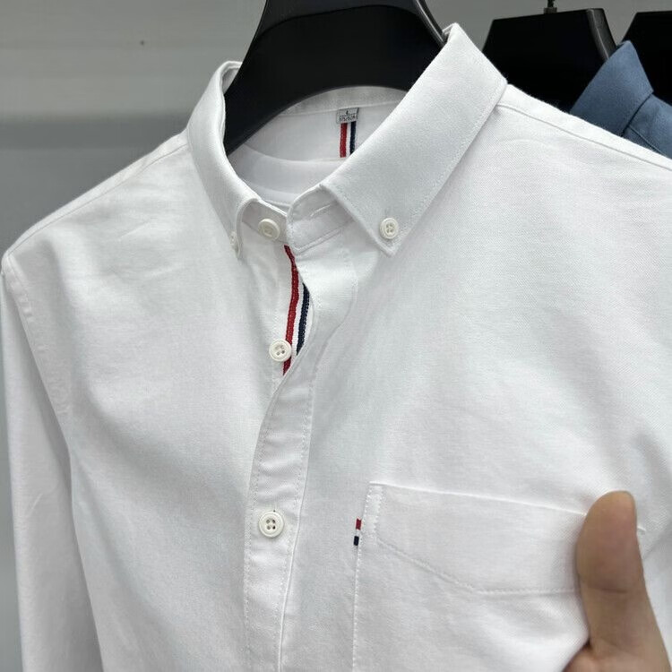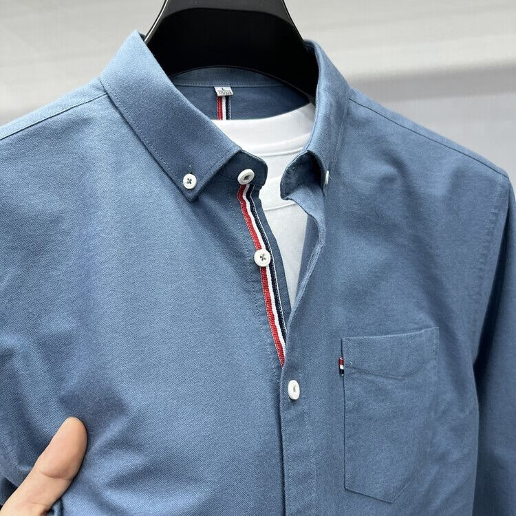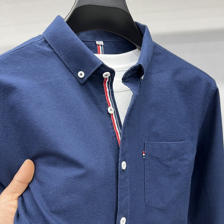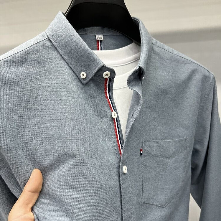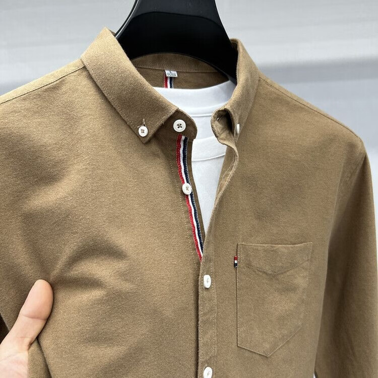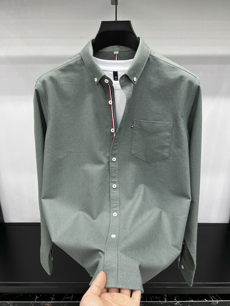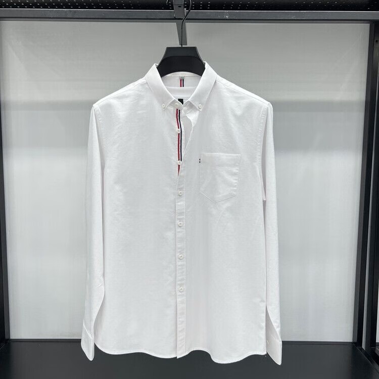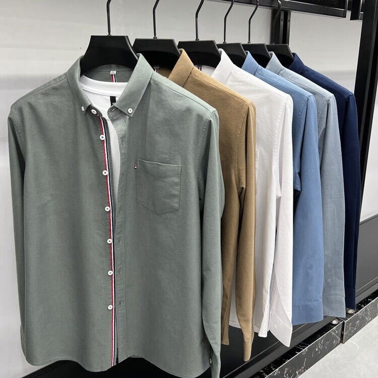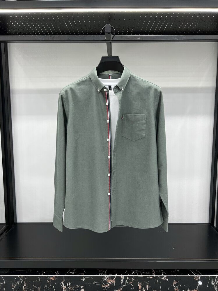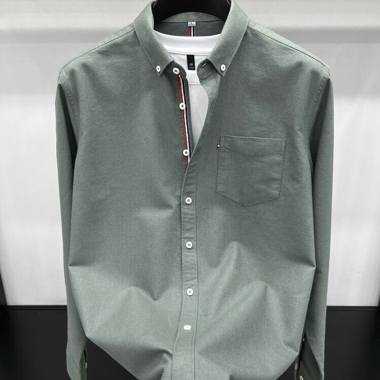 TOMMY JEANS汤米希凯利男士衬衫春秋季休闲全棉免烫口袋商务长袖衬衣男装上衣 绿色 4XL 58190 210斤