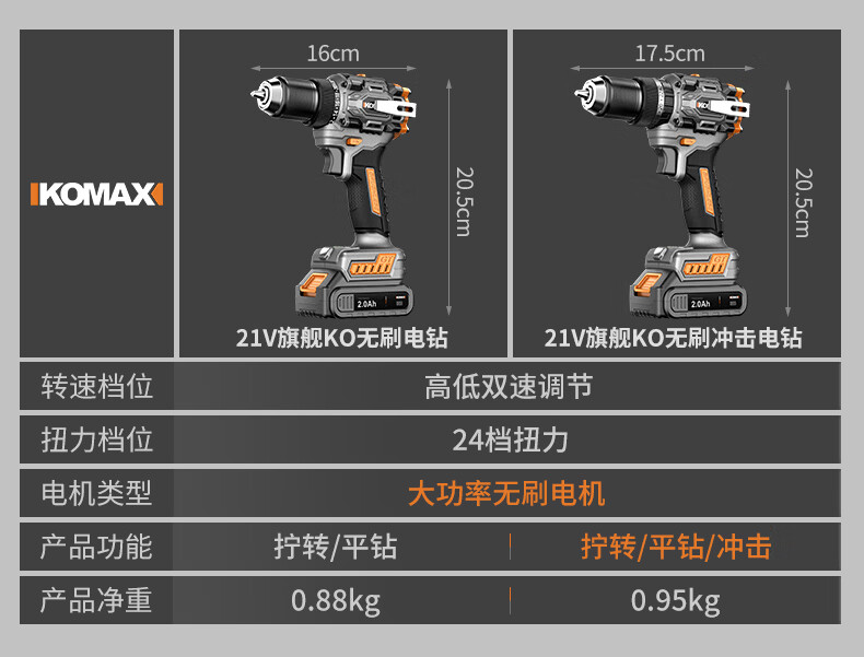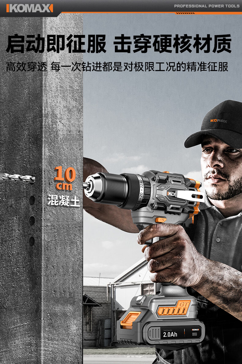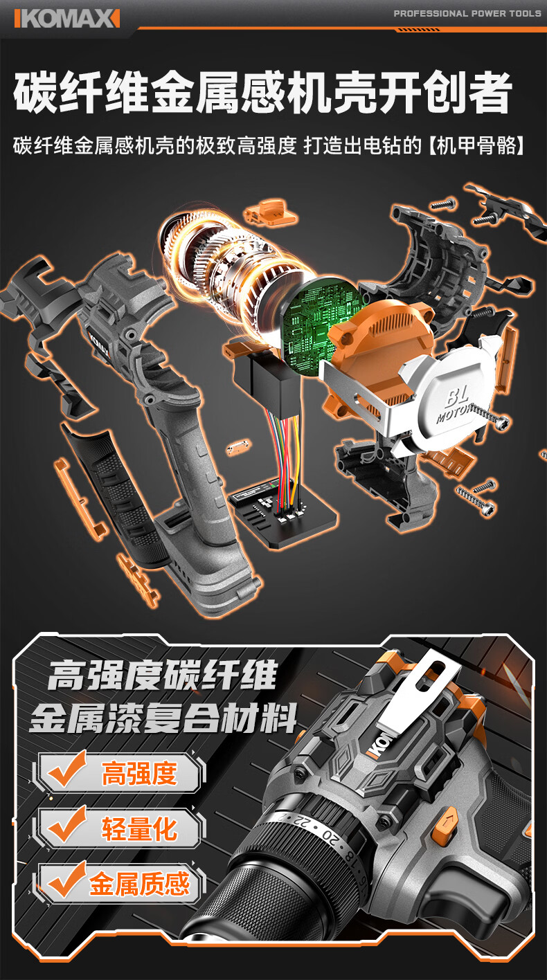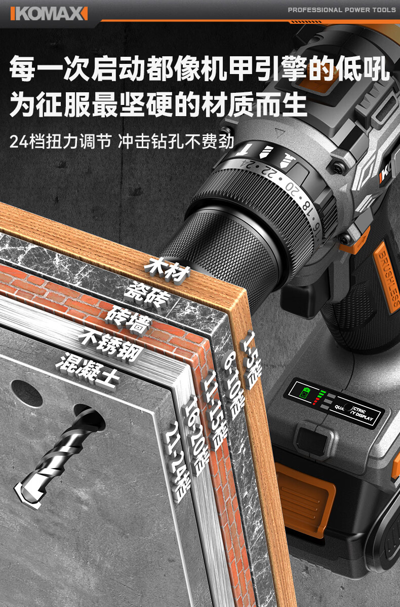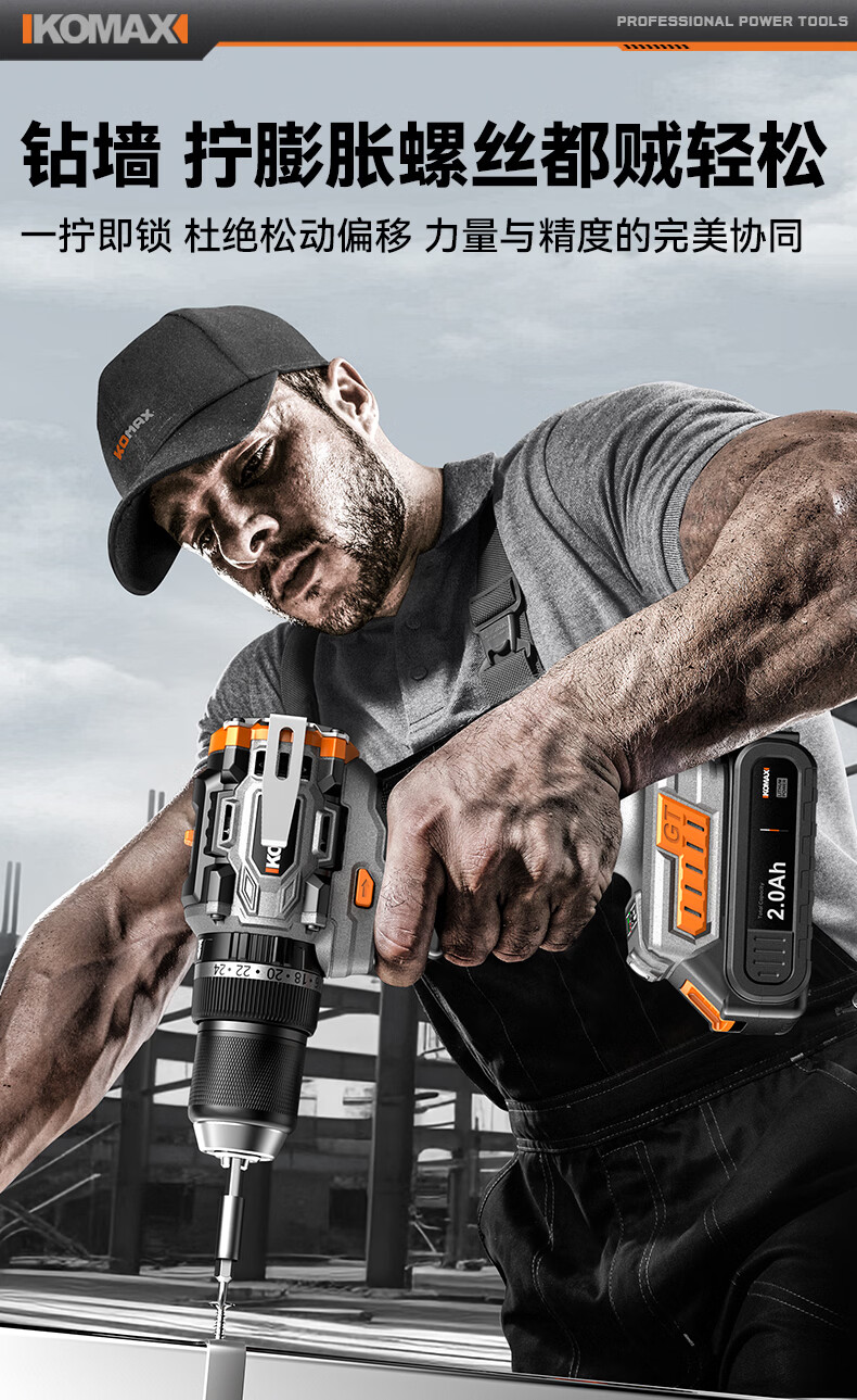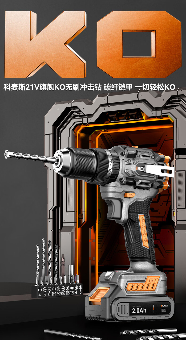 科麦斯(KOMAX)21V无刷锂电钻充电式手电钻家用多功能螺丝刀电钻工具套装 21V无刷升级版电钻1电1充+钻批礼包