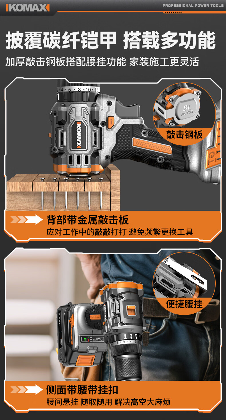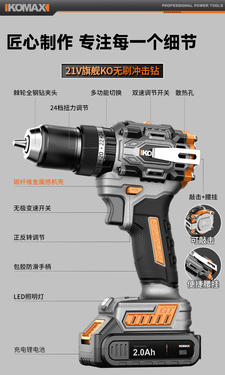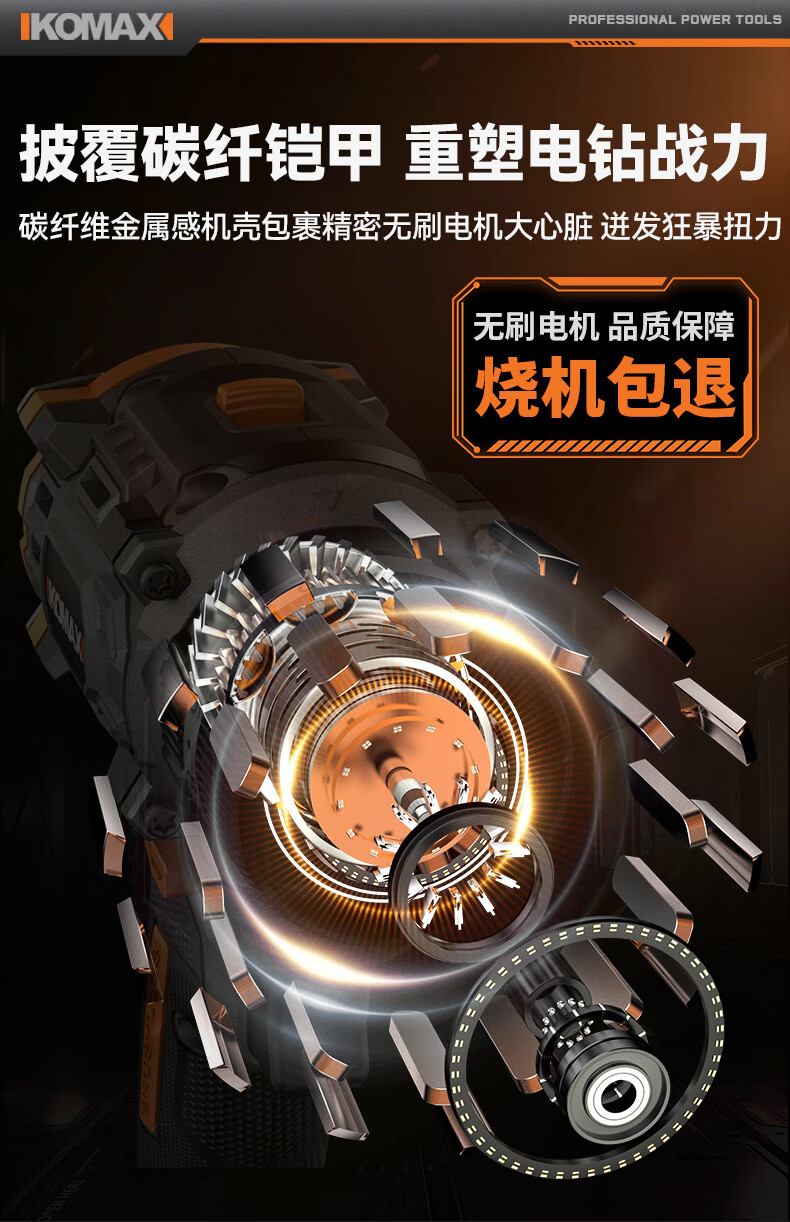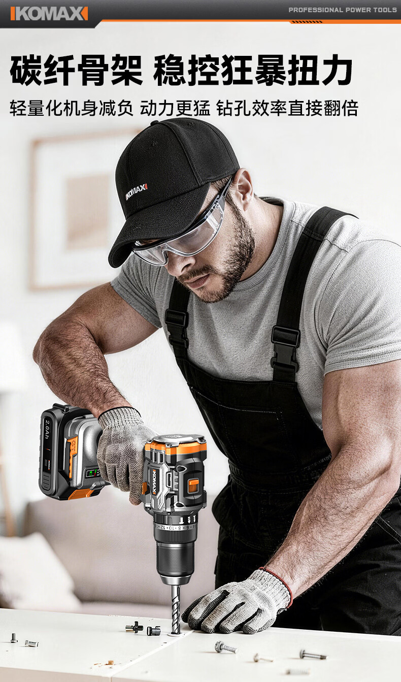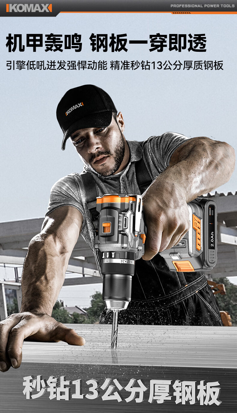 科麦斯(KOMAX)21V无刷锂电钻充电式手电钻家用多功能螺丝刀电钻工具套装 21V无刷升级版电钻1电1充+钻批礼包